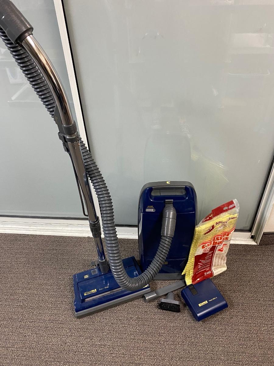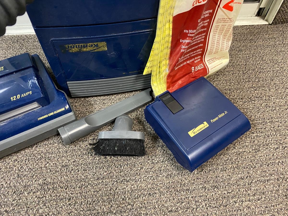 Kenmore Power-Mate 12amp Canister Vacuum with Attachments and Extra Bags. Tested and works well. Does have scuffs and signs of use.