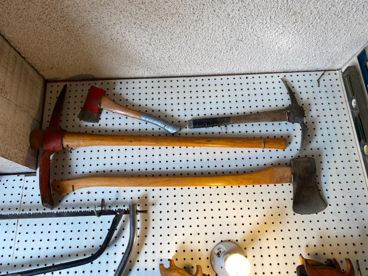 Lot of 4 Axe & Pickaxe Lot Long & Short Handle. All in used conditions. Tape on short handle tools seems to be for grip and hand protection, not handle damage. The short handle pick has the most signs of use.
