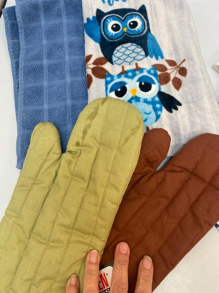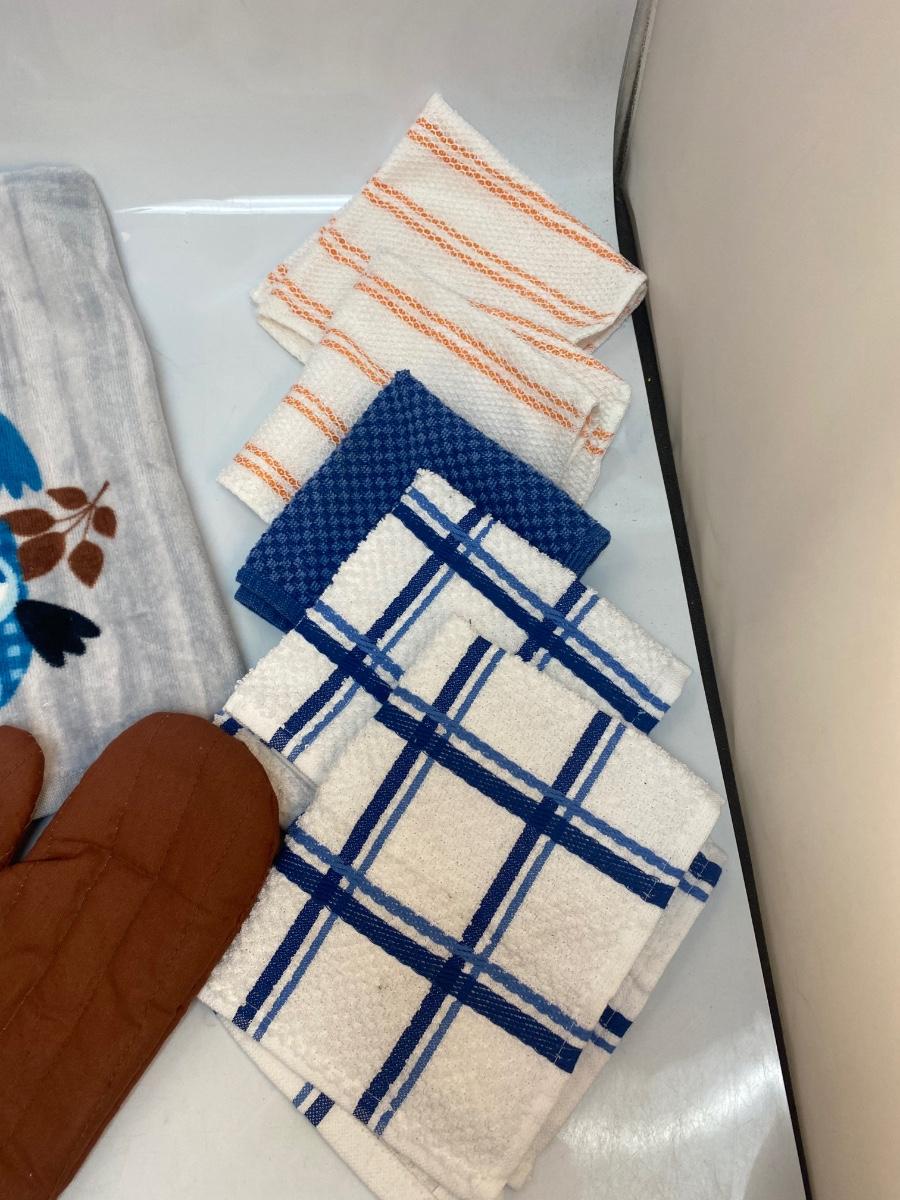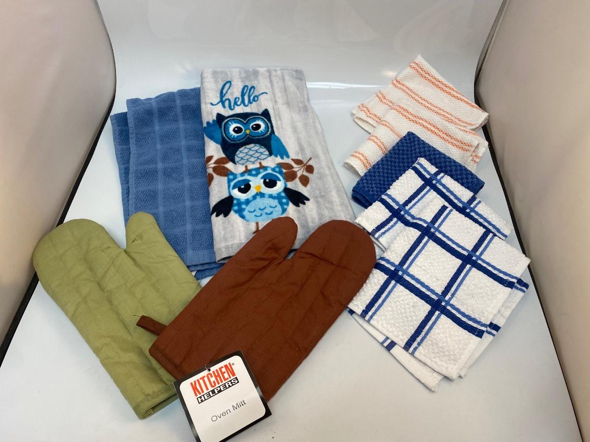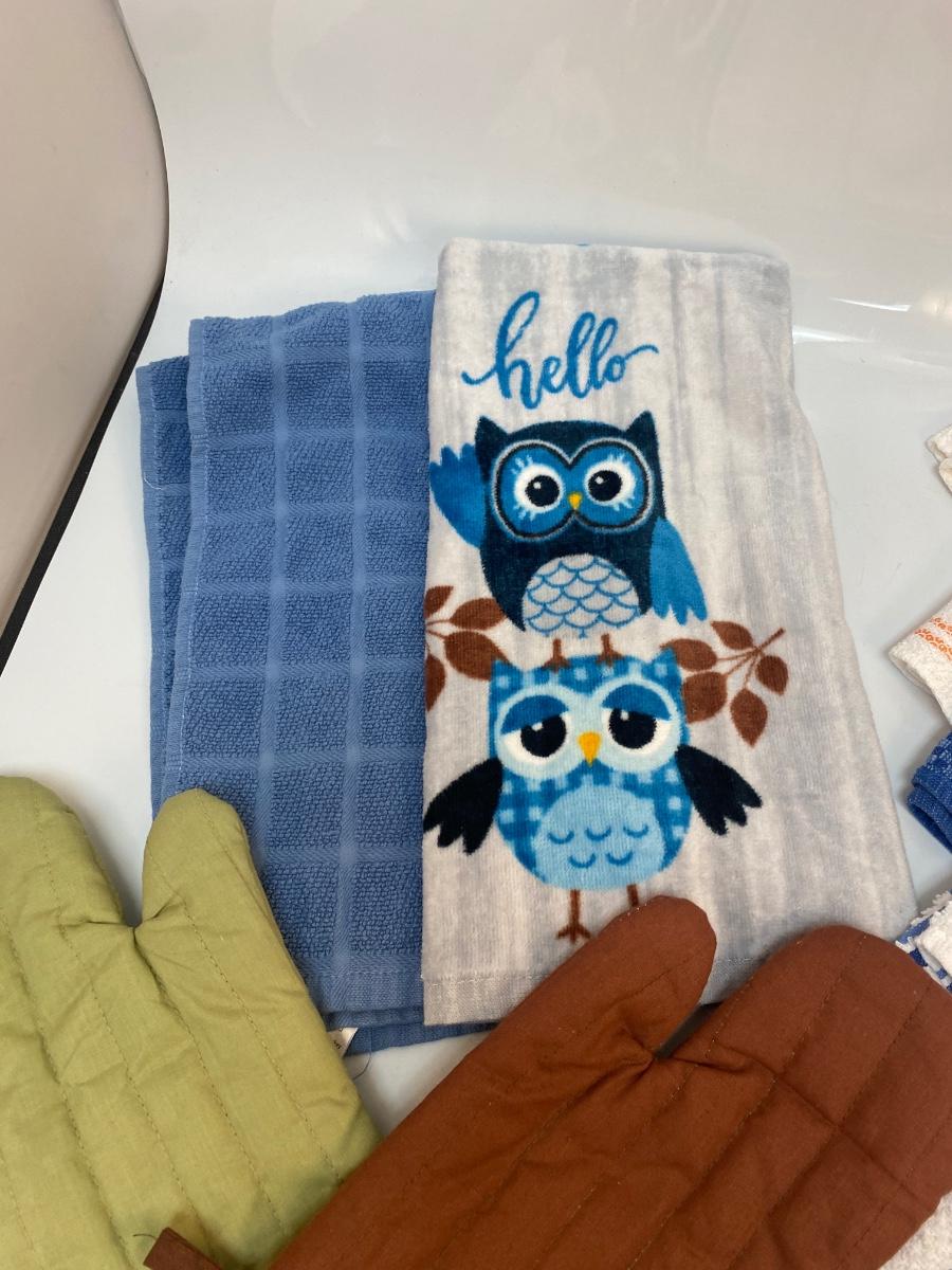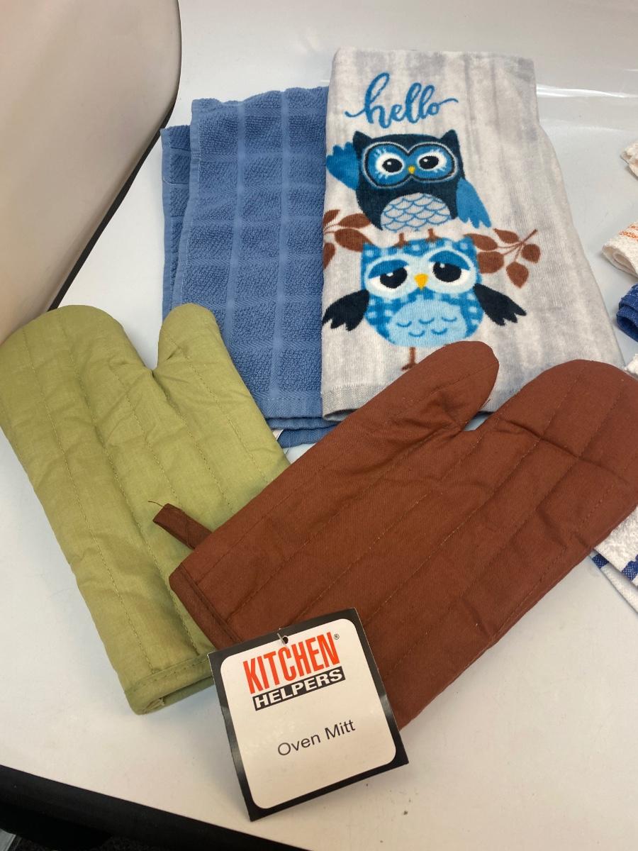 Lot of Dish Towels Oven Mitts and Washcloths. Newer, in good condition.