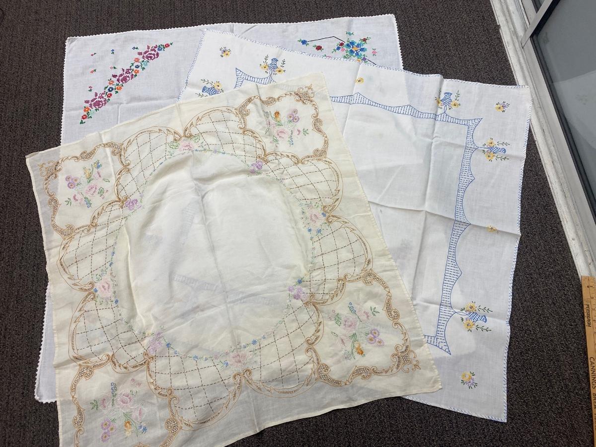 Lot of Three Vintage Embroidered Small Square Tablecloth Card Table Covering