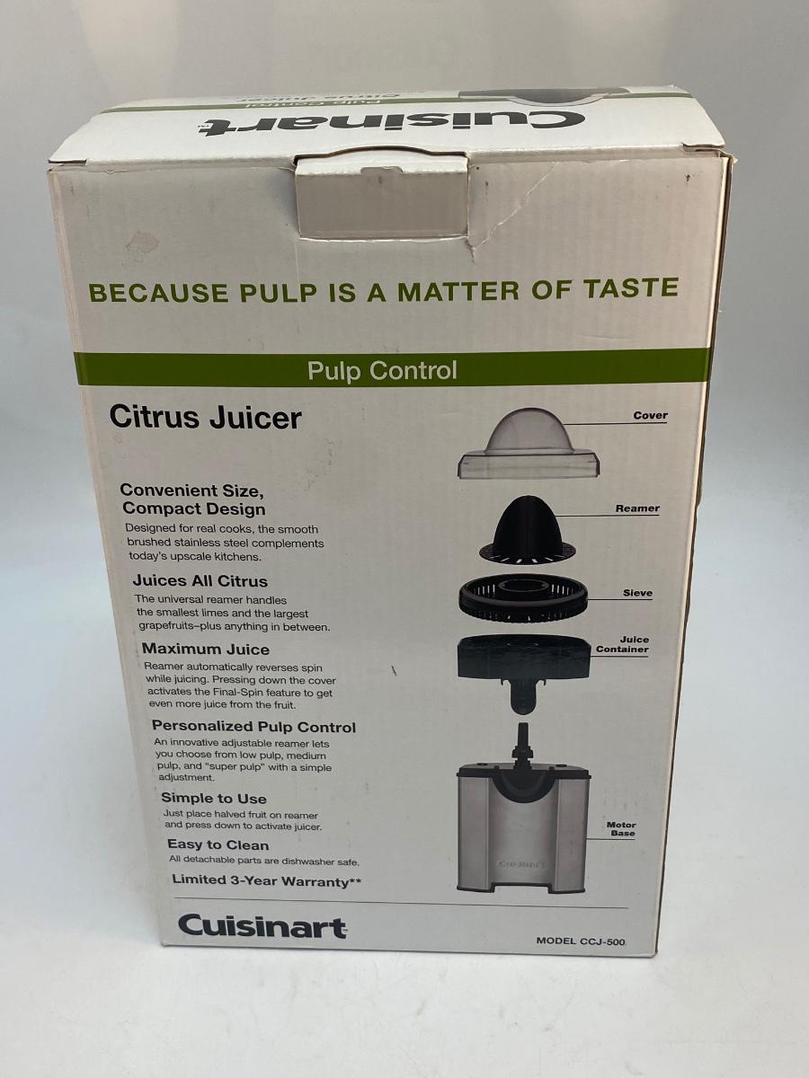 Cuisinart Pulp Control Citrus Juicer New in Box. Looks to have been opened but never used.