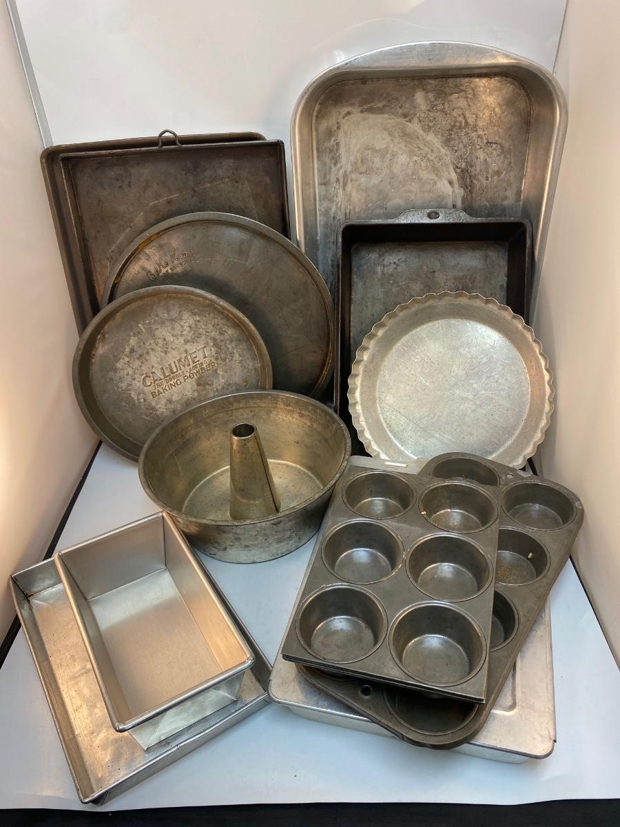 Mixed Lot of Various Metal Baking Pans Cookie Sheets Muffin Tins. In used condition. All pans photo'd included.