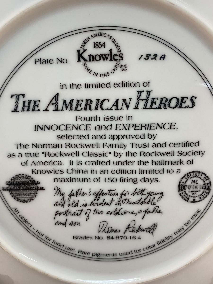 The American Heros Norman Rockwell Innocence & Experience Collection Collector Plate. In good condition. Comes in original shipper box.