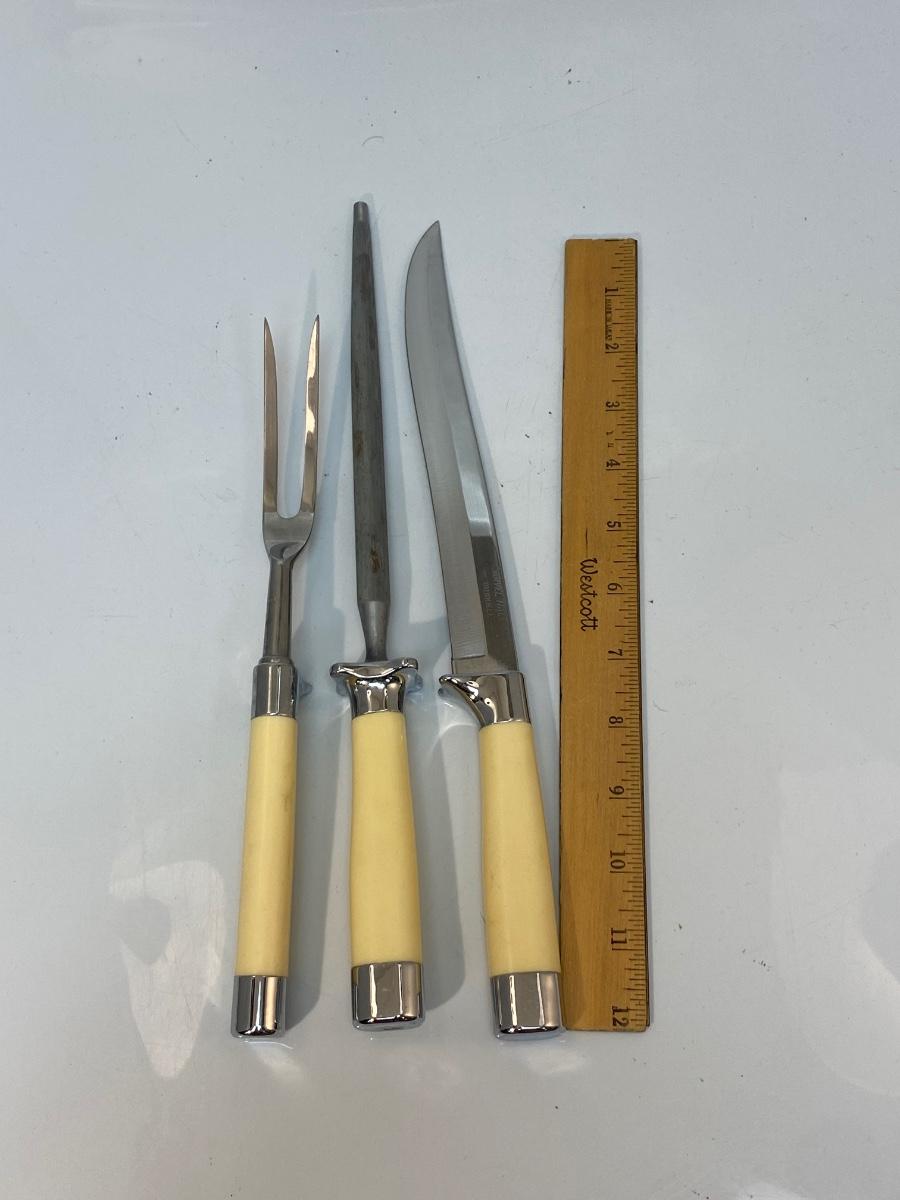 Vintage Three Piece Carvel Hall Cutlery Set Meat Fork Carving Knife Sharpening Stick
