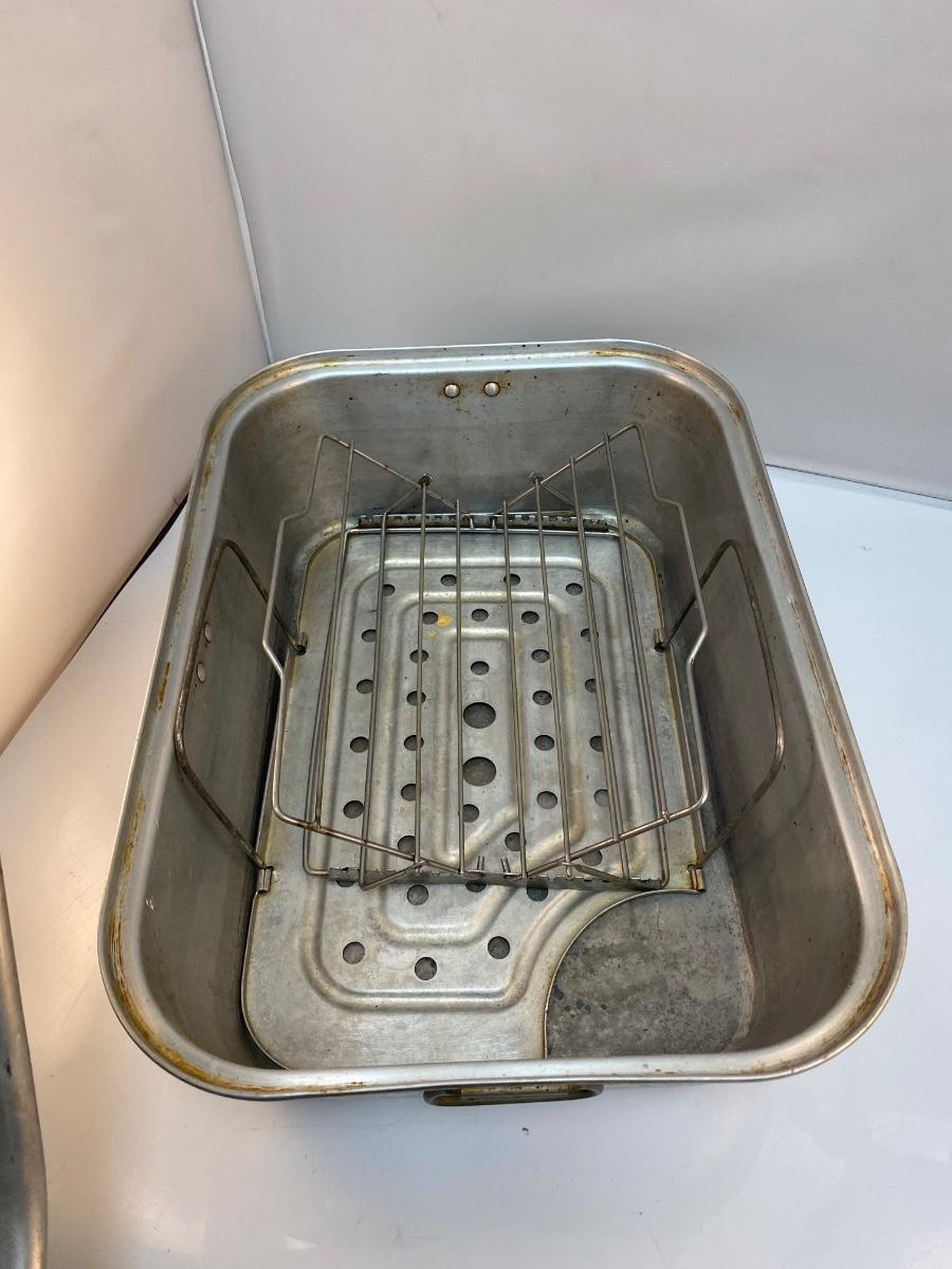 Large Vintage Aluminum Roasting Pan with Racks & Lid