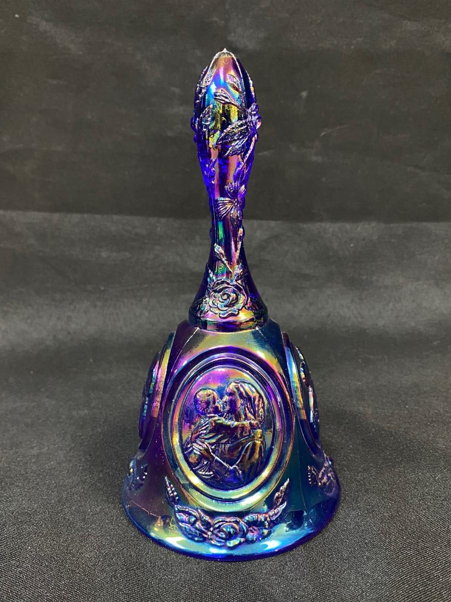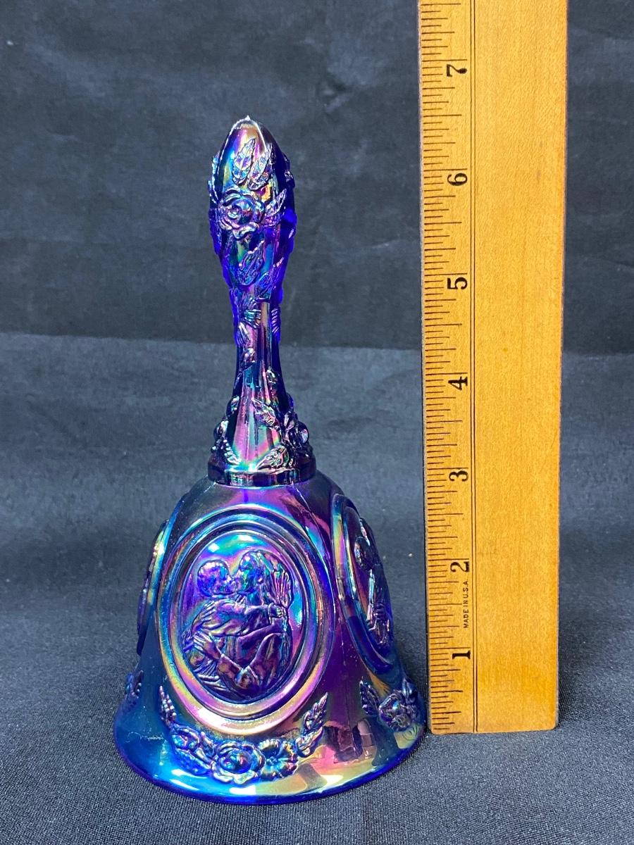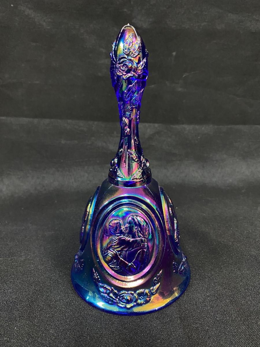 Vintage Blue Carnival Glass Fenton Glass Mother and Child Bell
