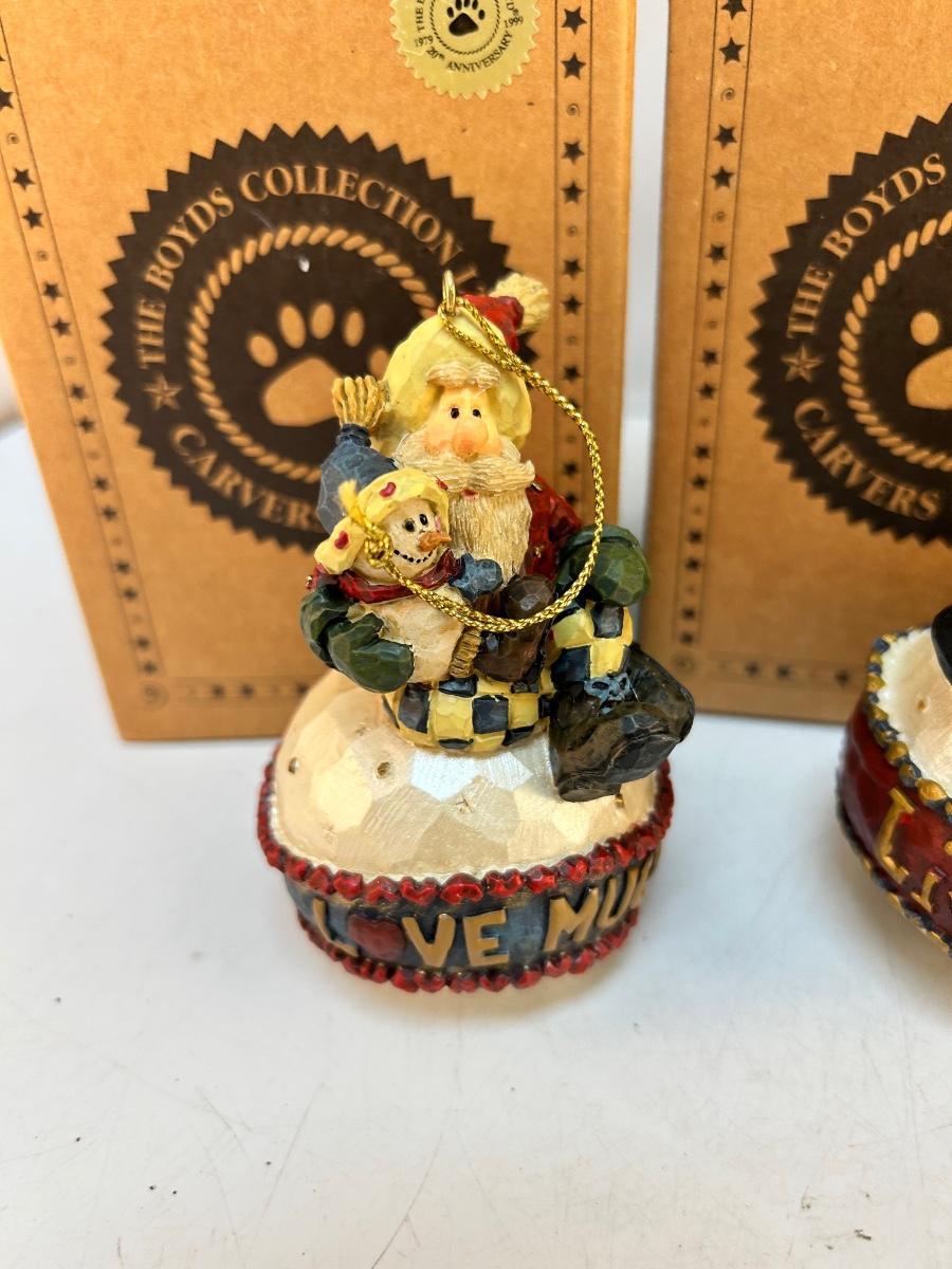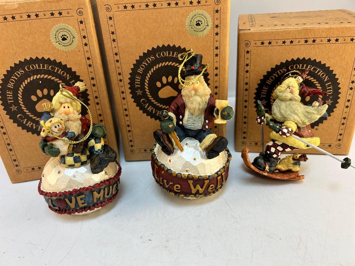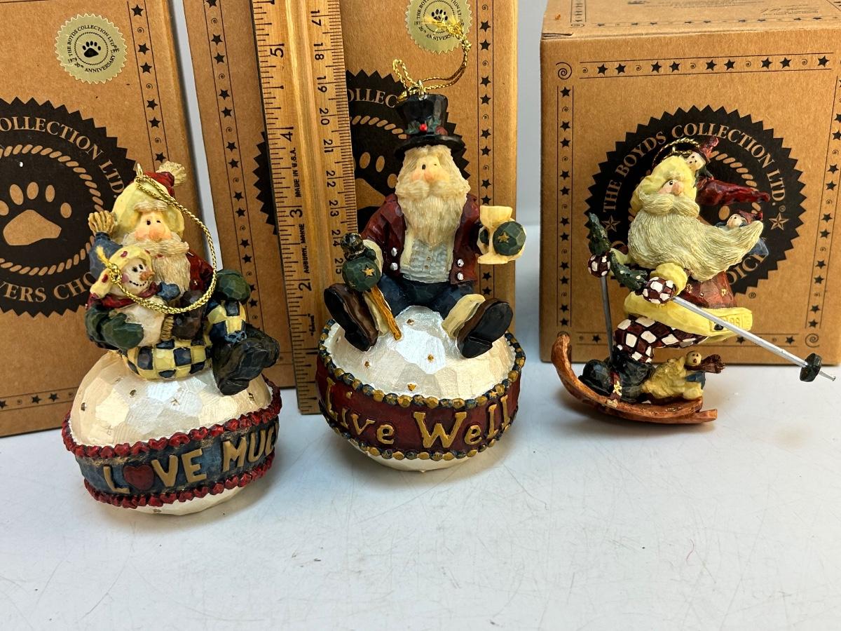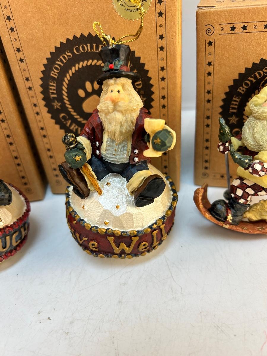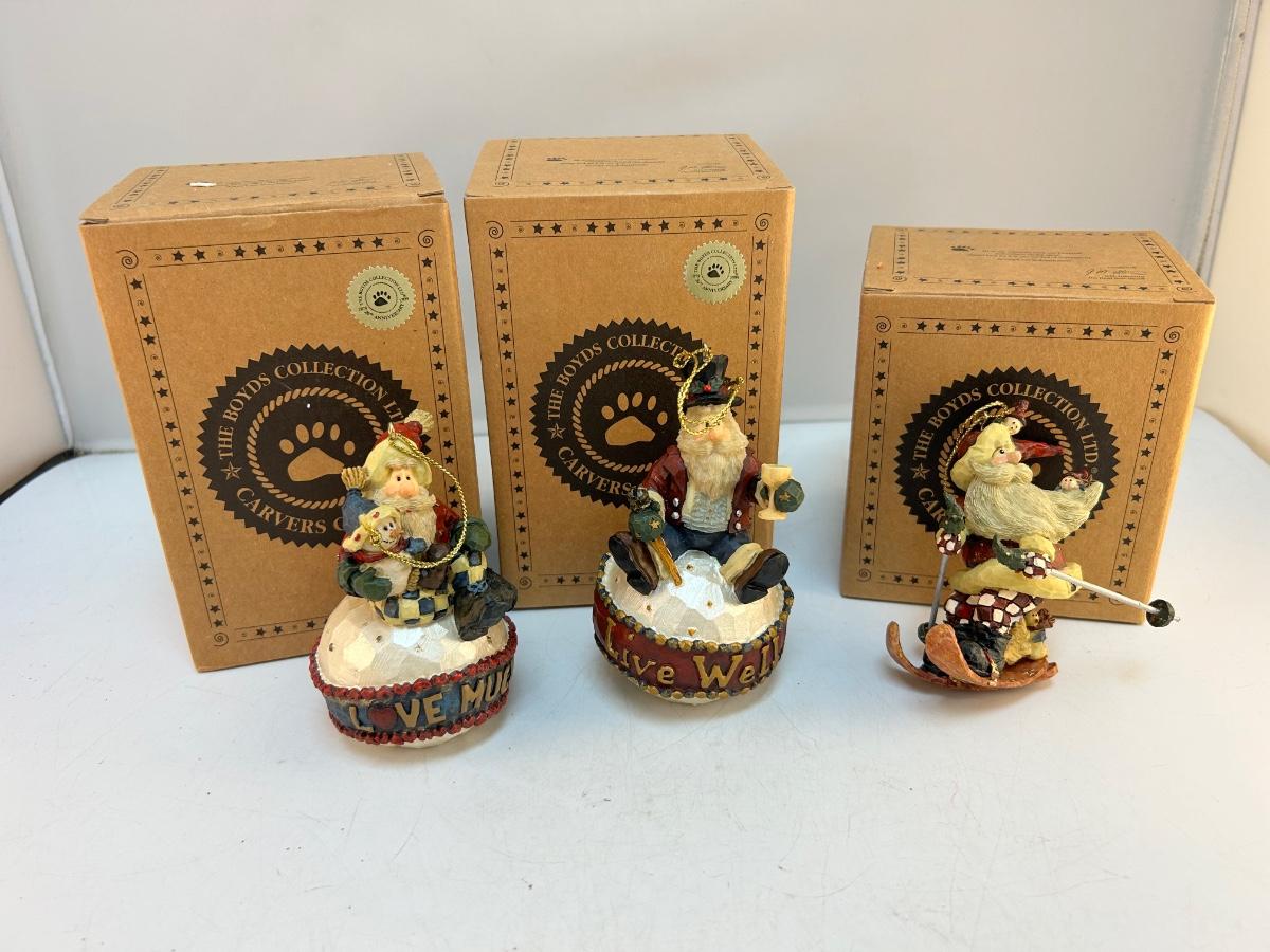 Set of Three The Boyds Collection LTD Carvers Choice Holiday Christmas Ornaments. In good condition. Come in their original boxes. Numbered on the bottom.
