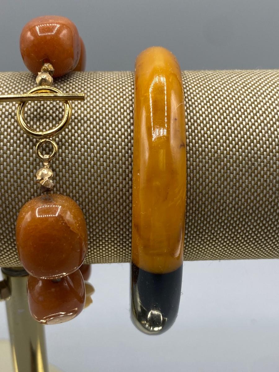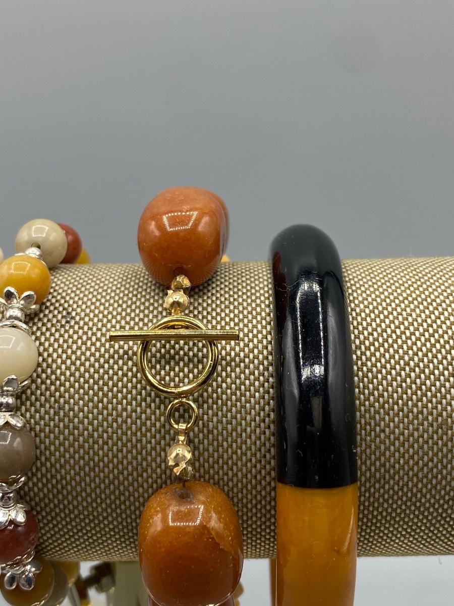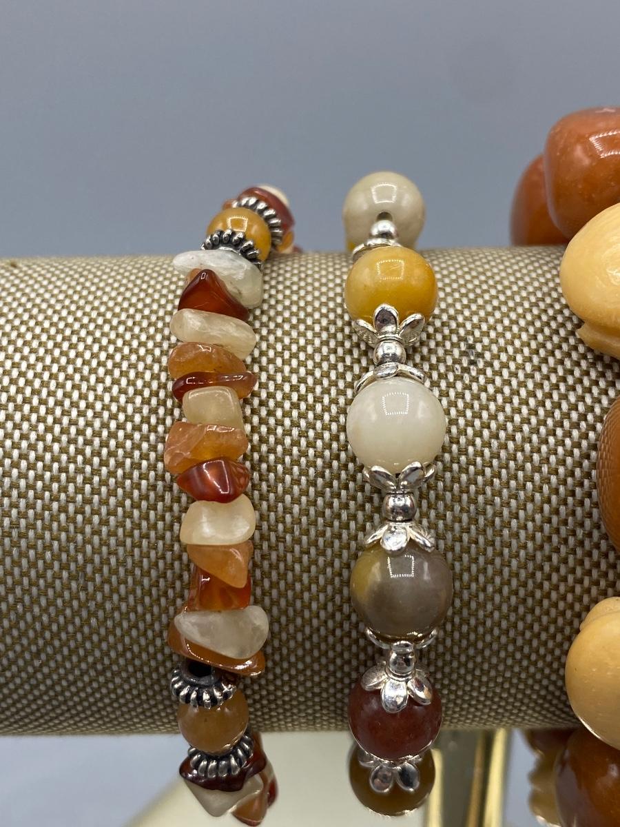 Lot of Warm Tone Stone Beaded Carved Elephant Bangle Bracelets. 4 bracelets. One is a standard bangle style bracelet. See photos.