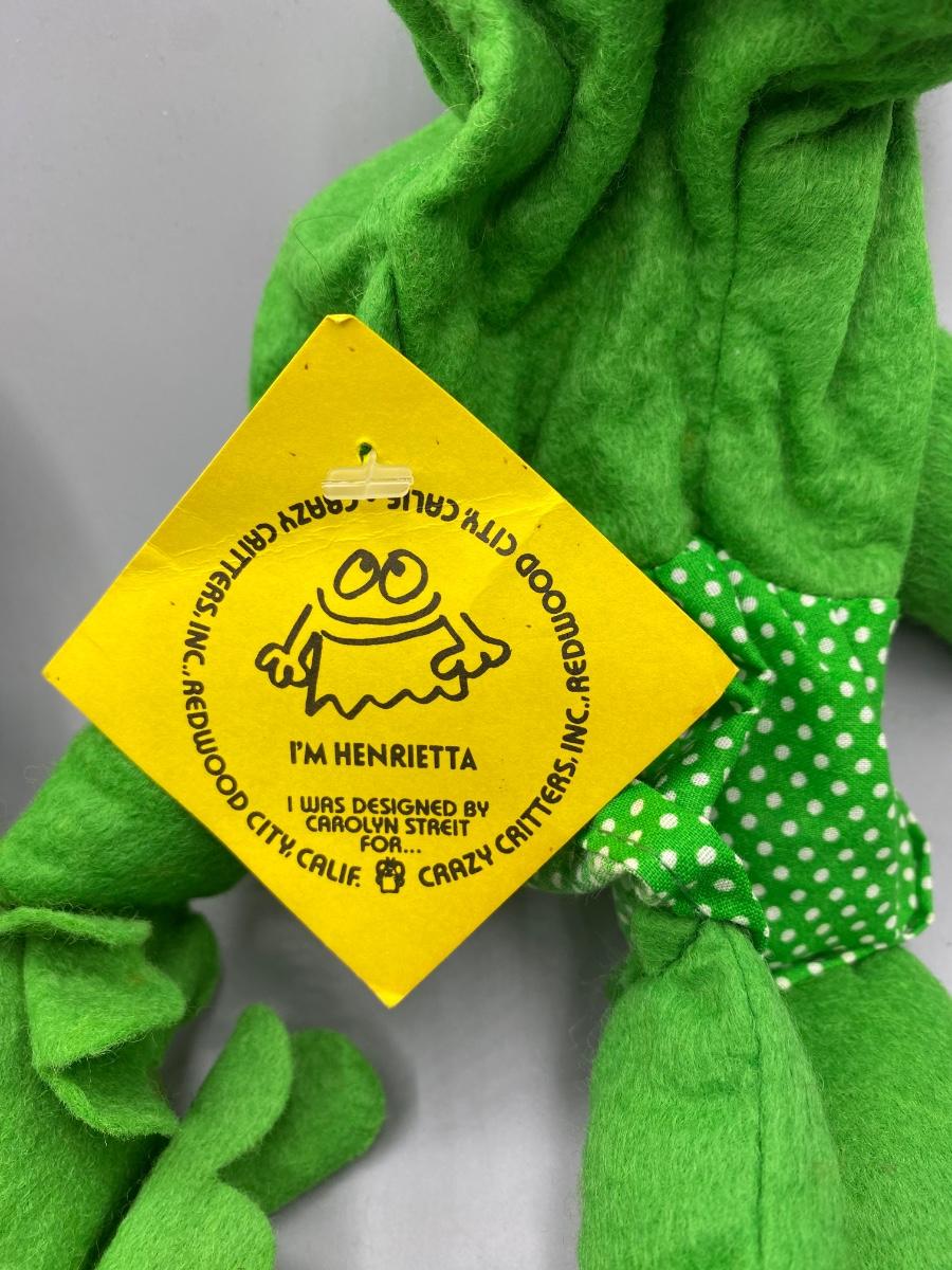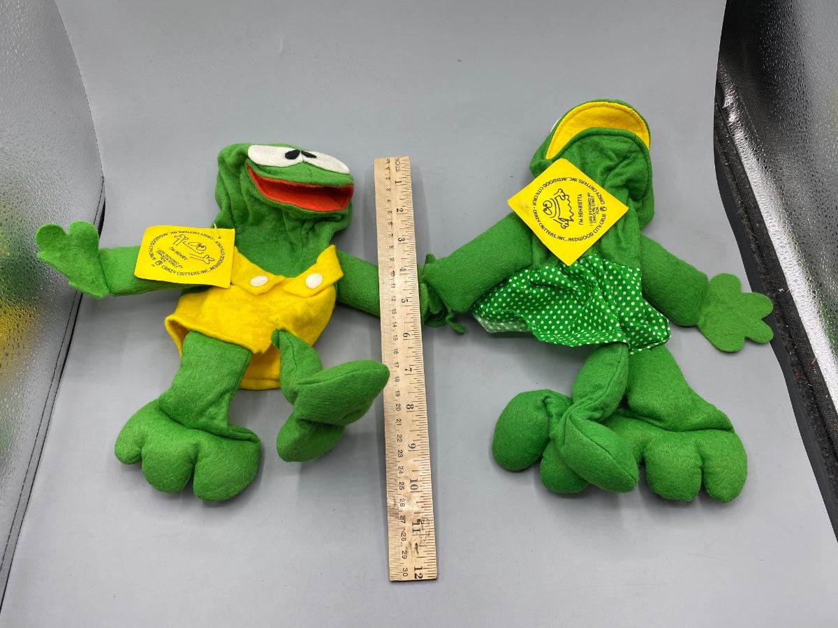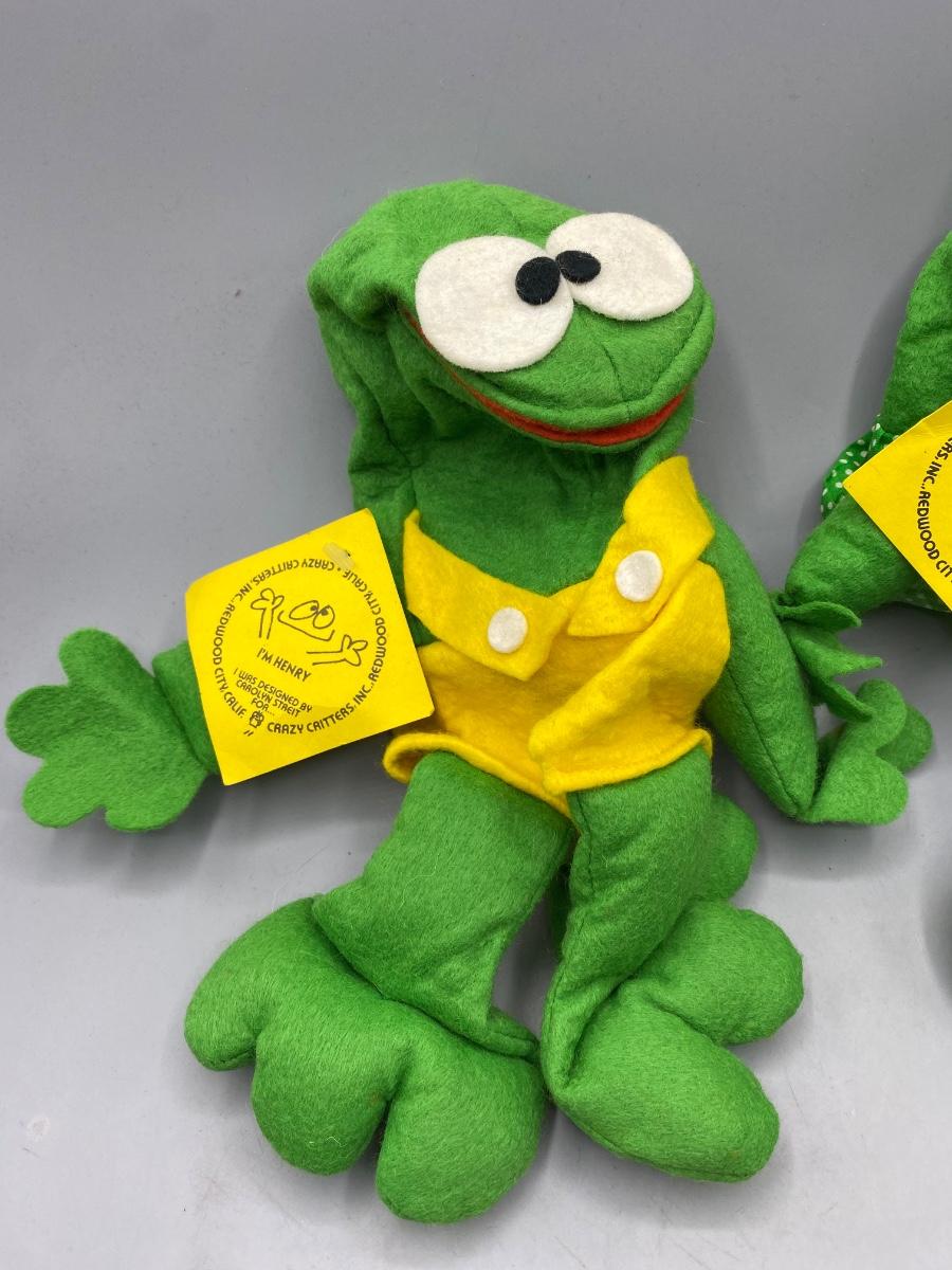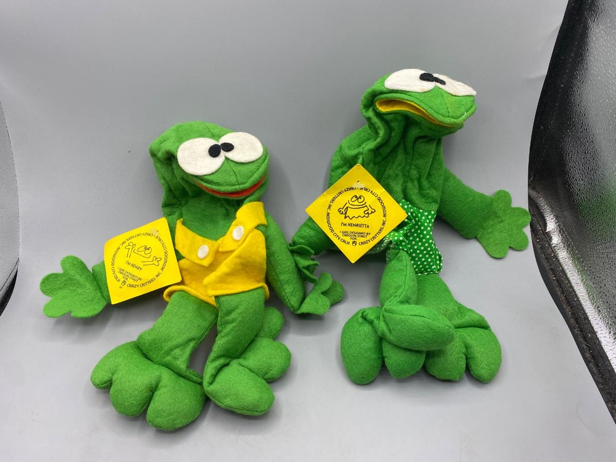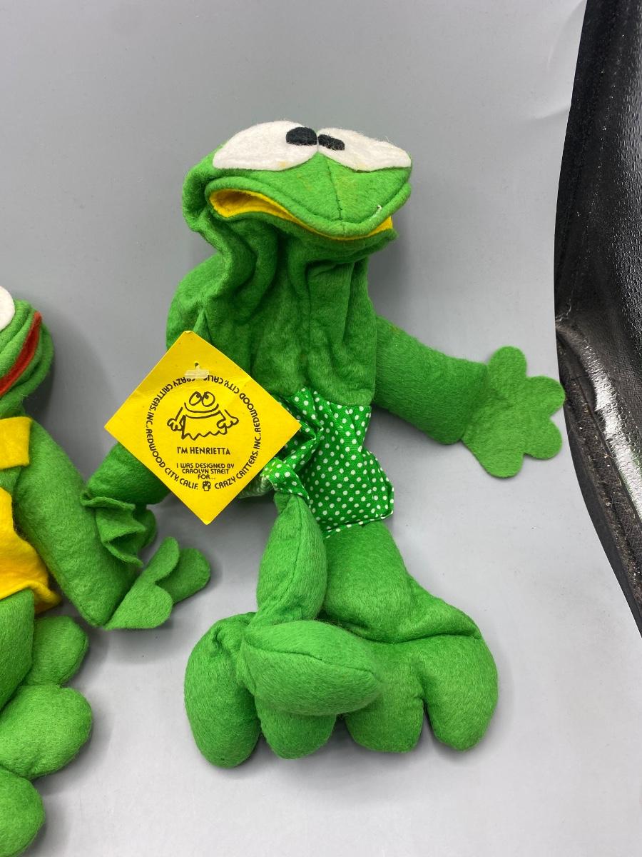 1980 Crazy Critters Frog Hand Puppets Henry & Henrietta. Good condition, original hang tags attached.