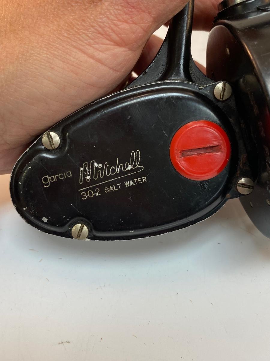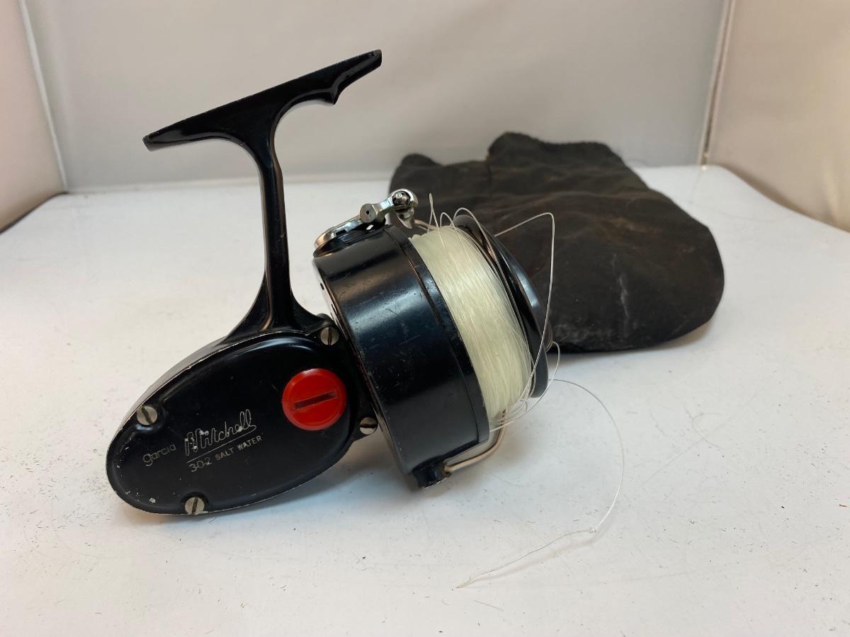 Vintage Garcia Mitchell 302 Salt Water Fishing Spinning Reel. In good vintage condition, works. Could probably use a light cleaning and new line.