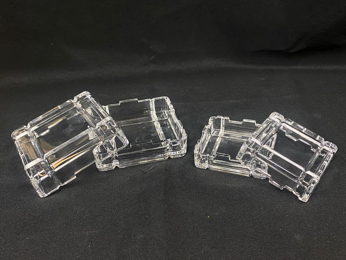 Pair of Retro Cut Glass Crystal Square Jewelry Trinket Boxes