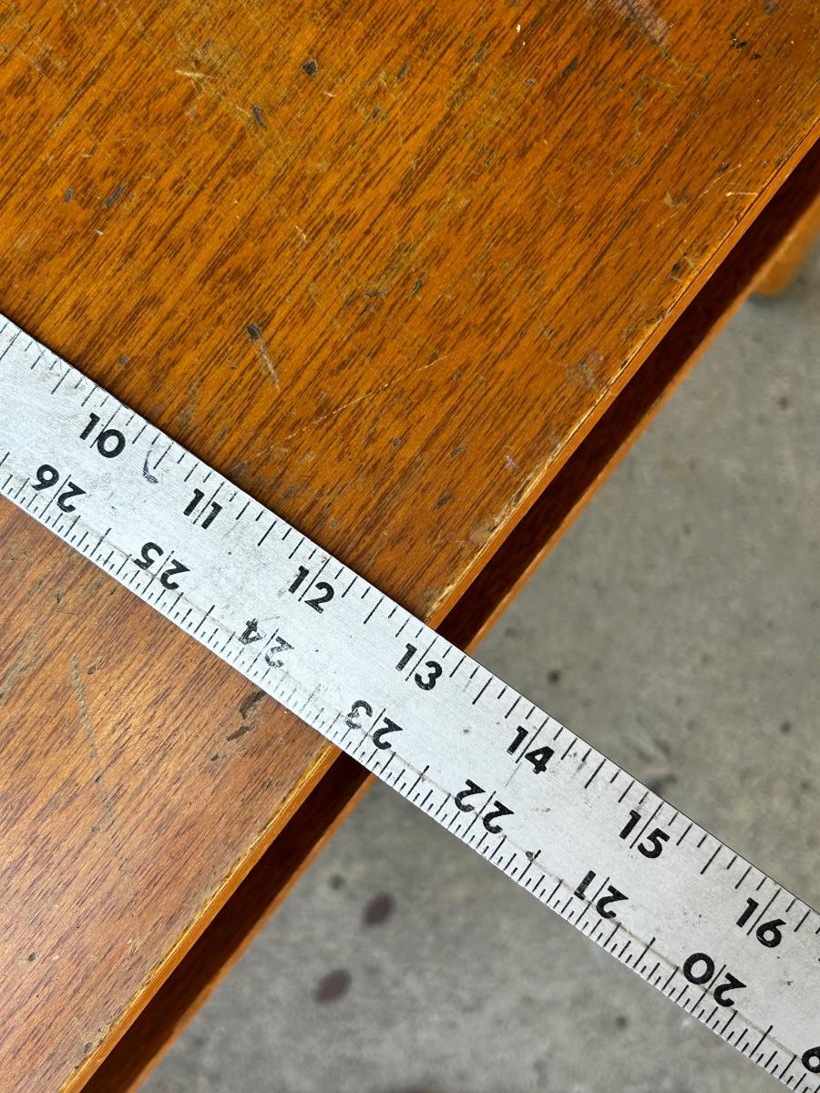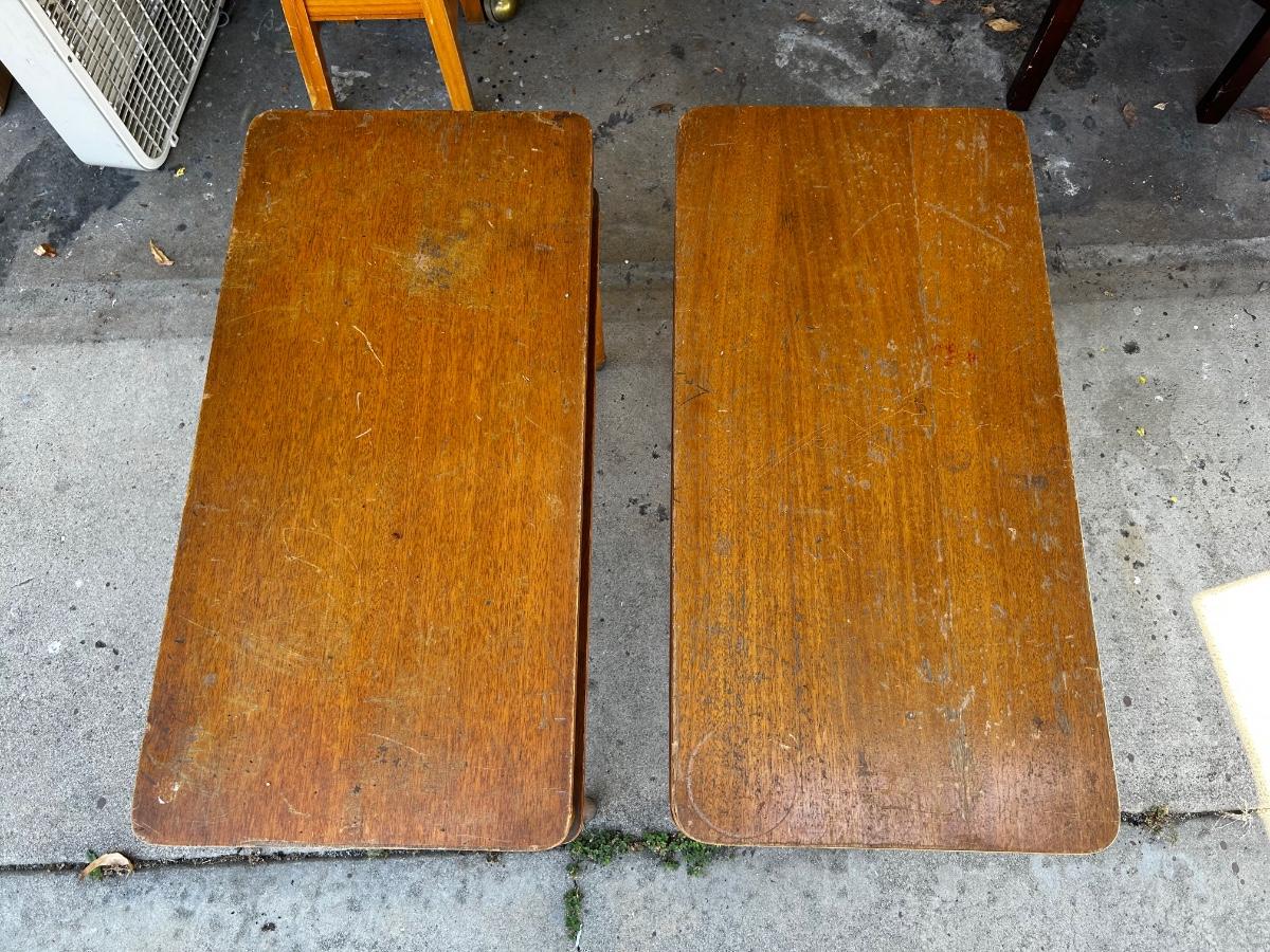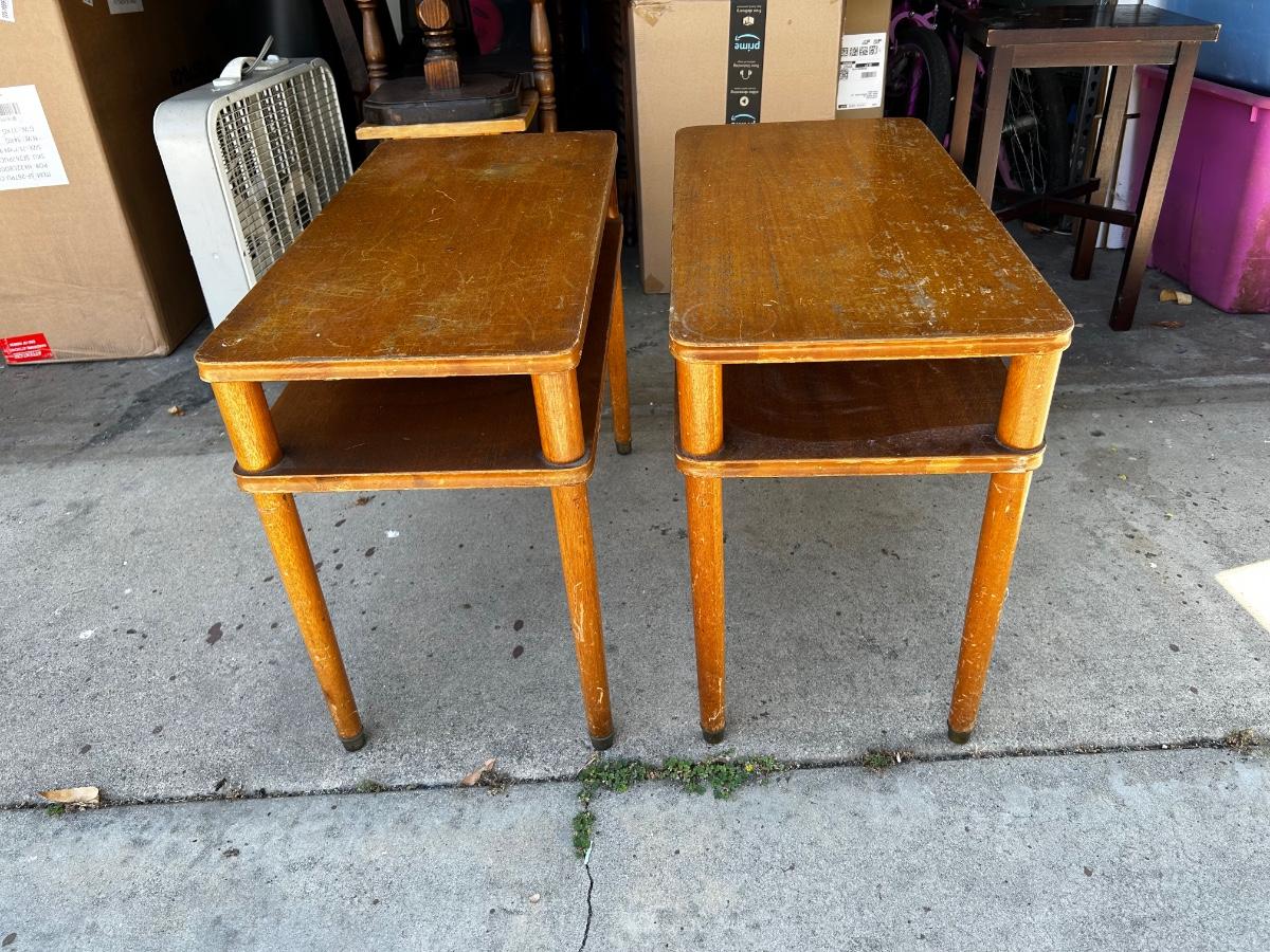 Pair of Vintage MCM Wood Midcentury Tiered Side End Tables. Have signs of age and use, great for refinish. No name but stamped with date, from 1940.