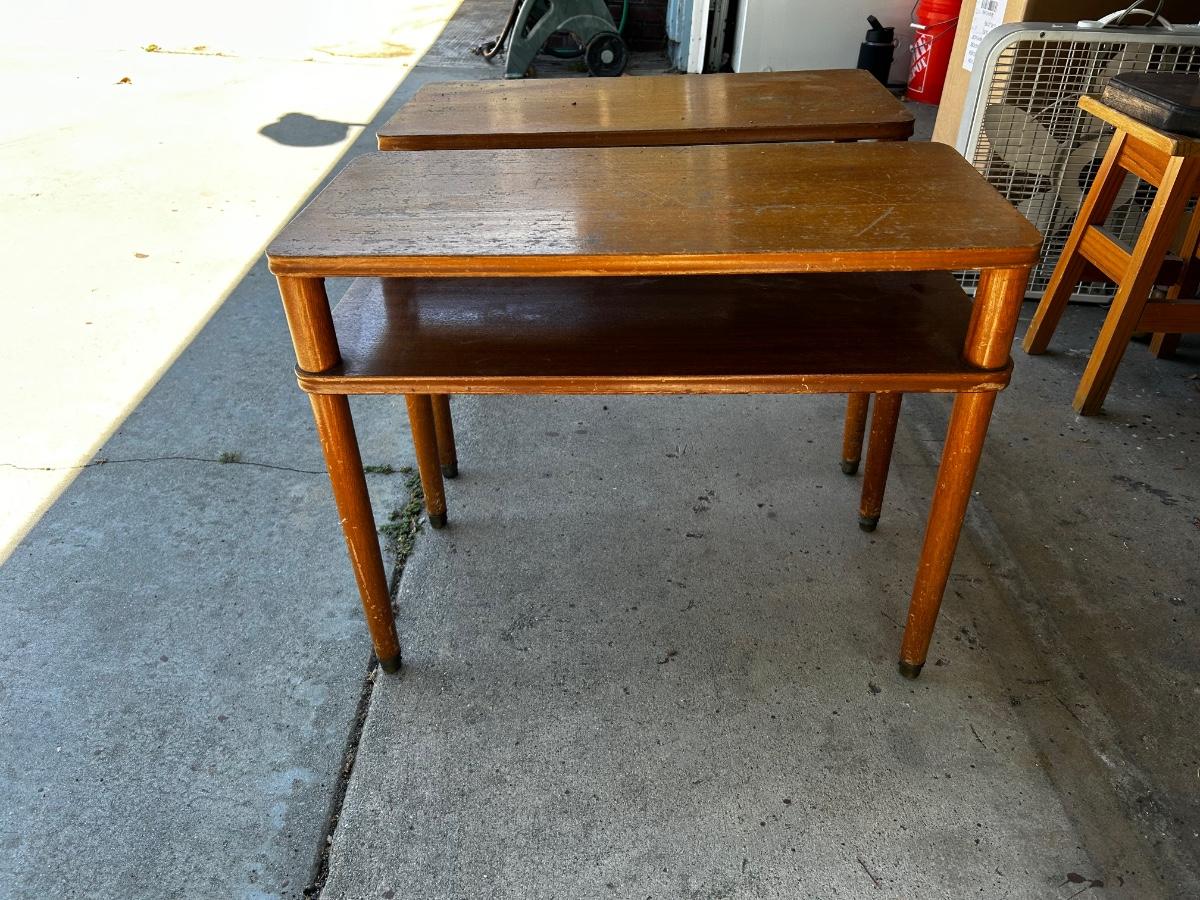 Pair of Vintage MCM Wood Midcentury Tiered Side End Tables