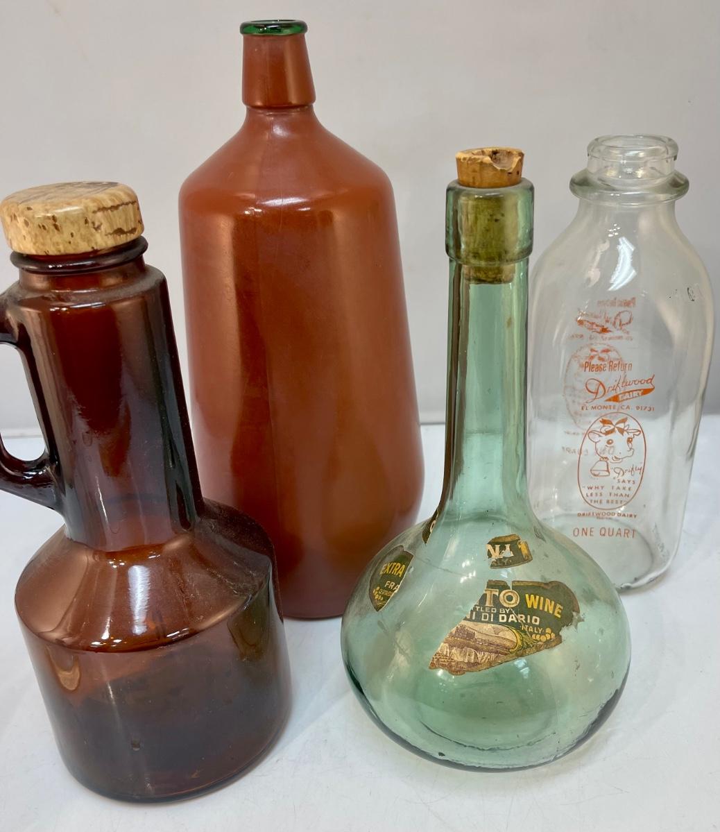 Mixed Lot of Various Size and Colored Glass Bottle Jars Decanters