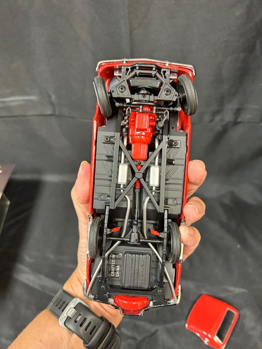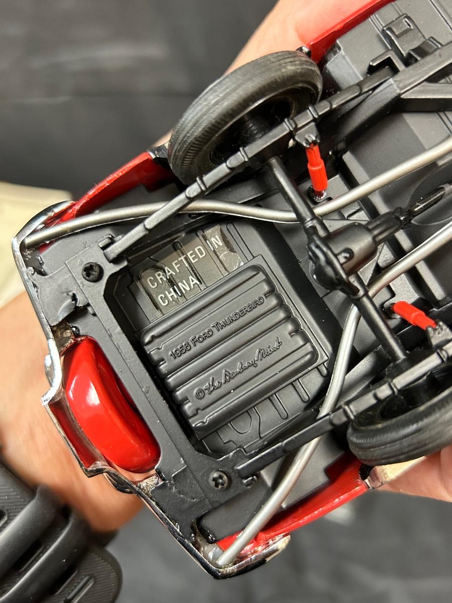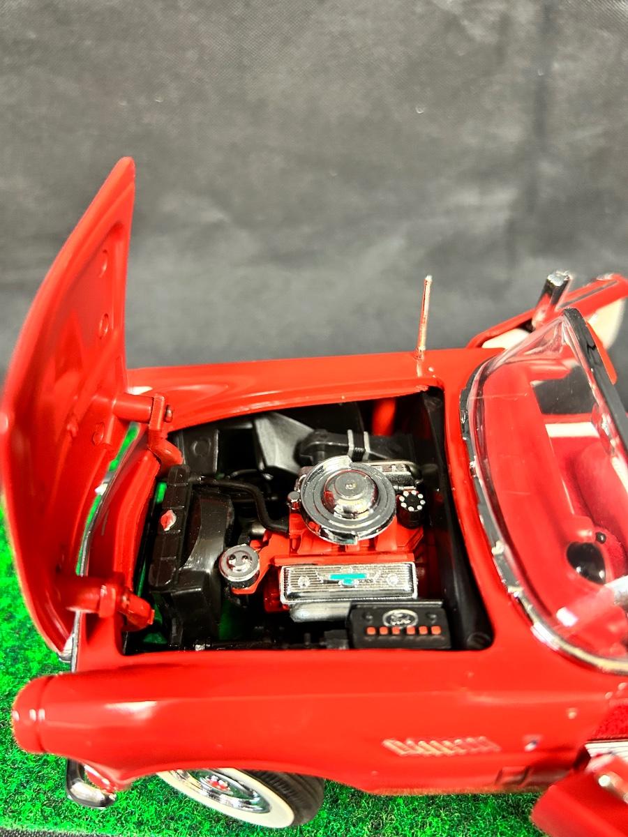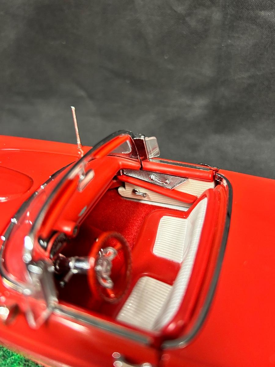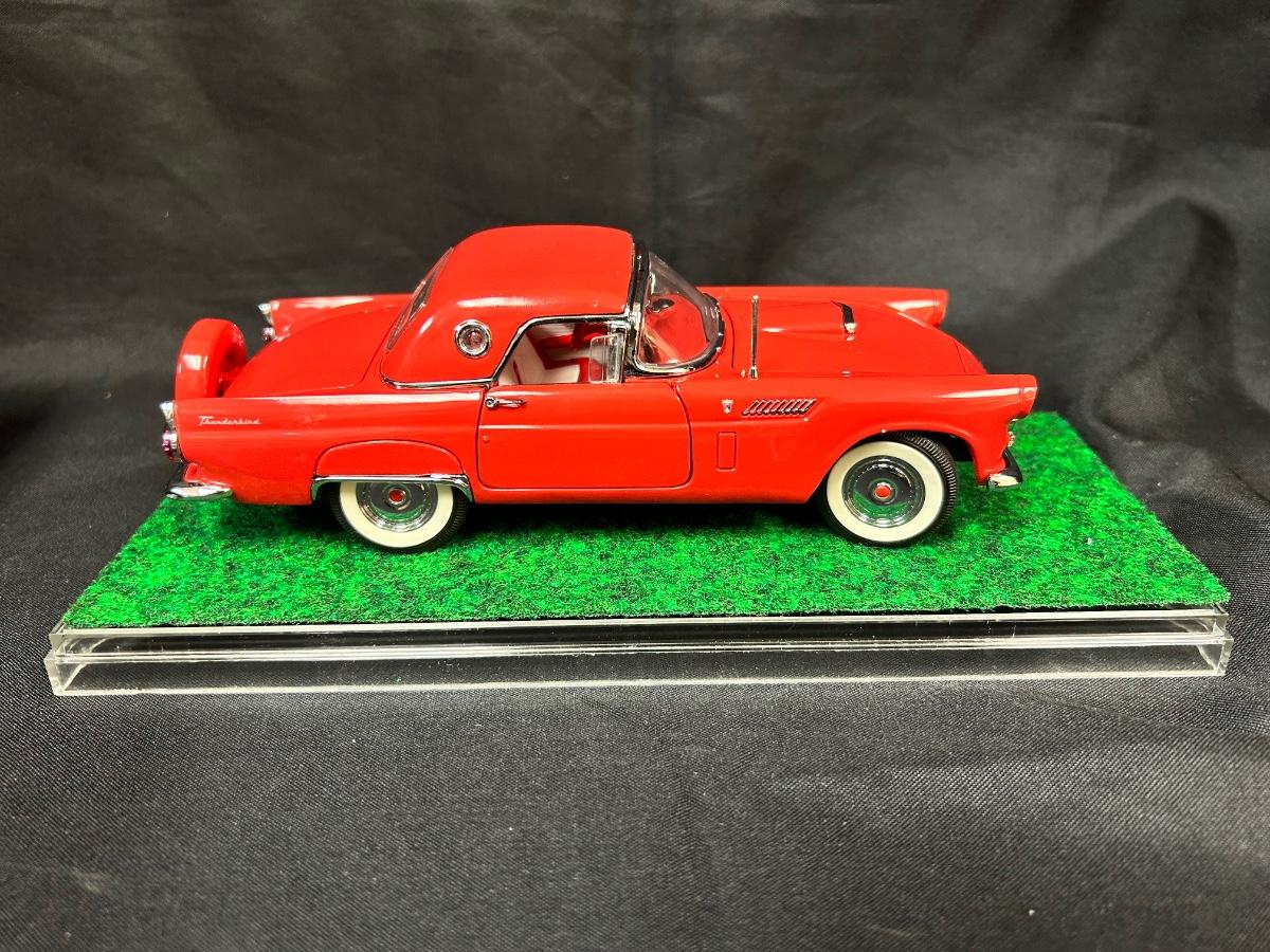 1956 Ford Thunderbird Convertible Fiesta Red Premium Scale Model Car Auto Automobile with COA Danbury Mint. In good collector condition. Hard top convertible Ford Thunderbird comes with COA. Hood and doors open, steering wheel control front end. Comes with plastic display box but the box shows signs of age from years of storage. About 8" size.