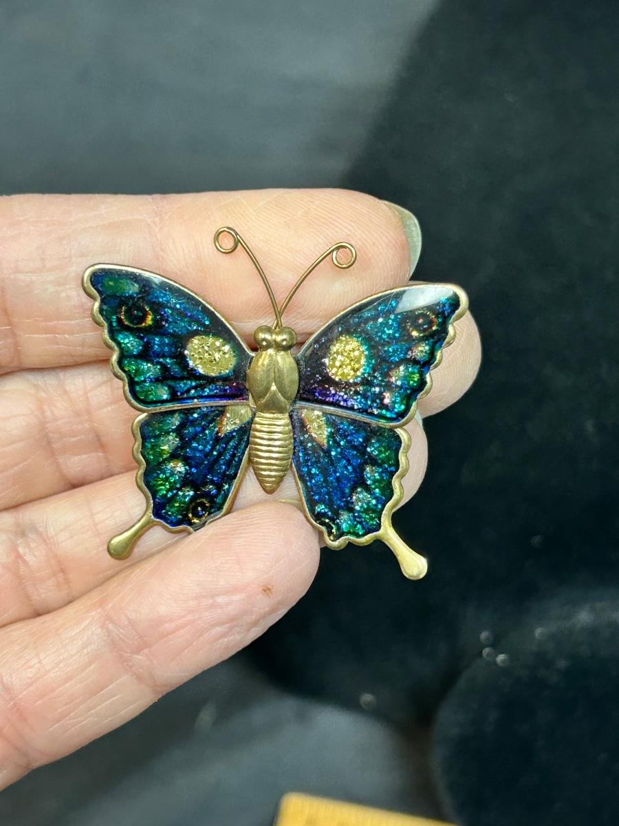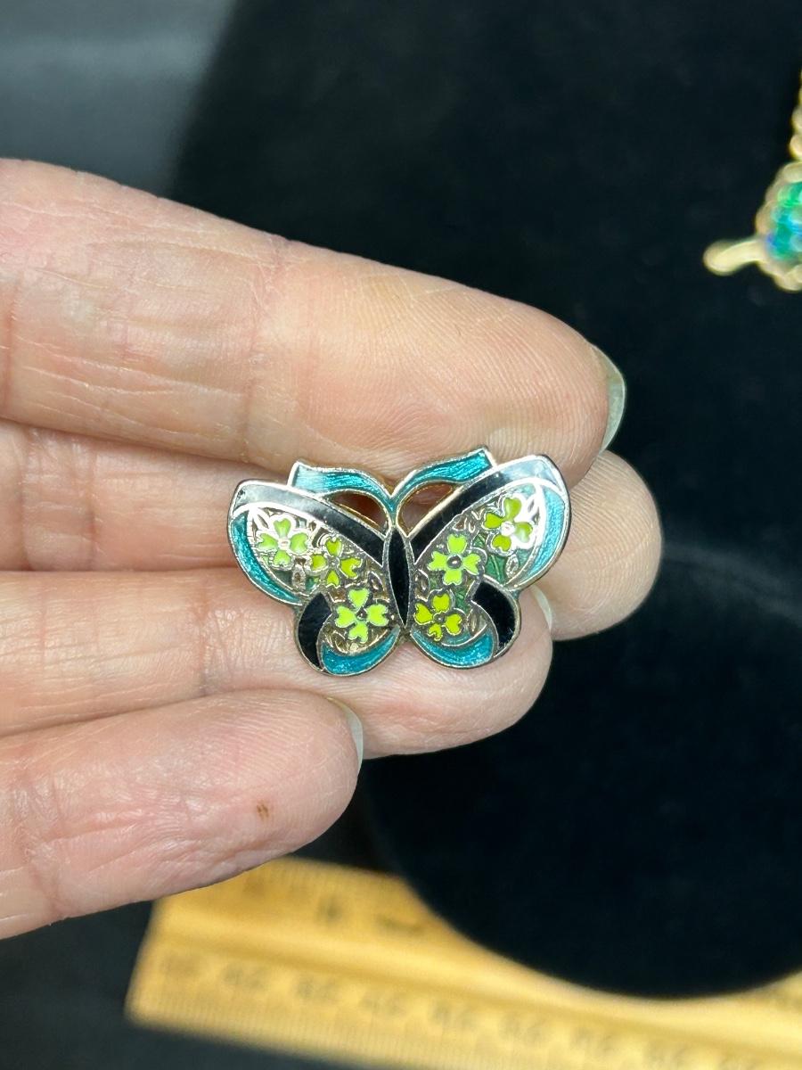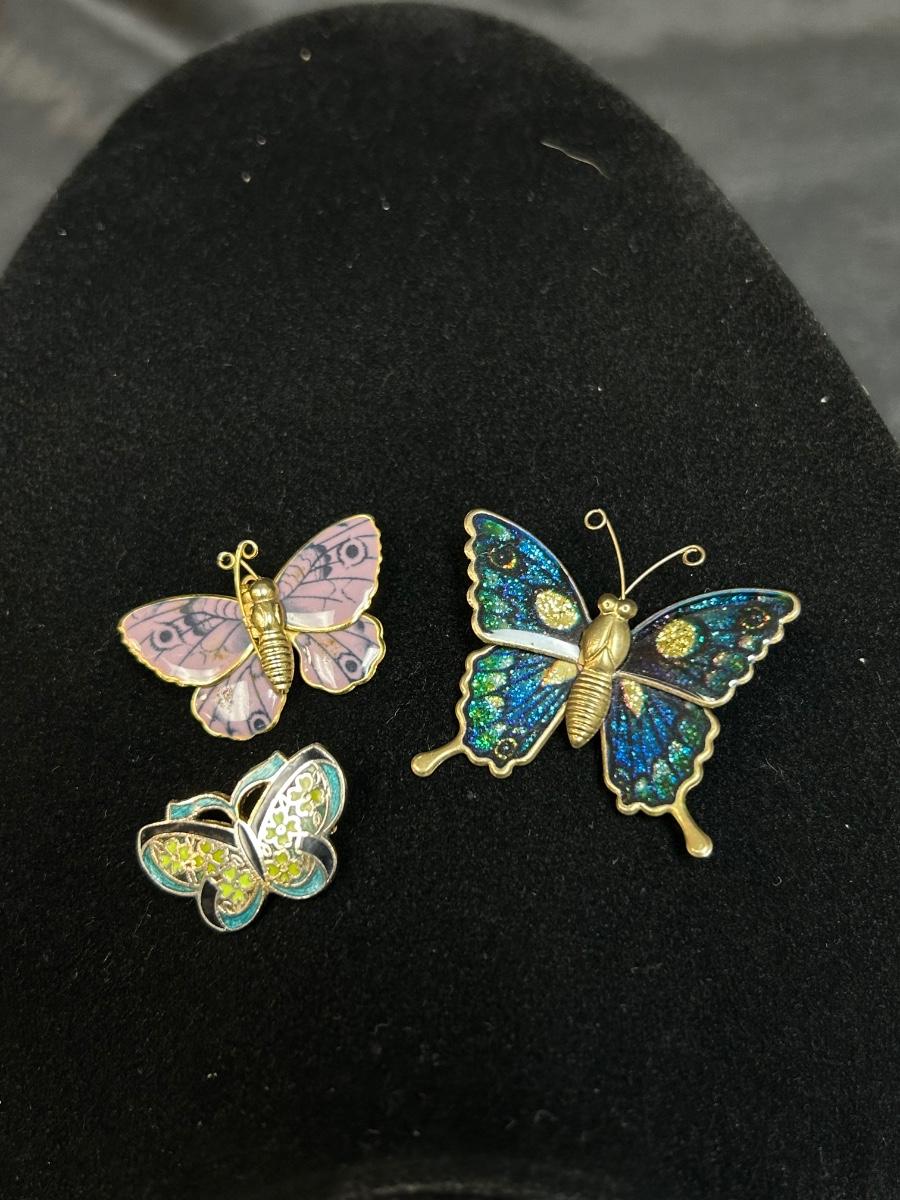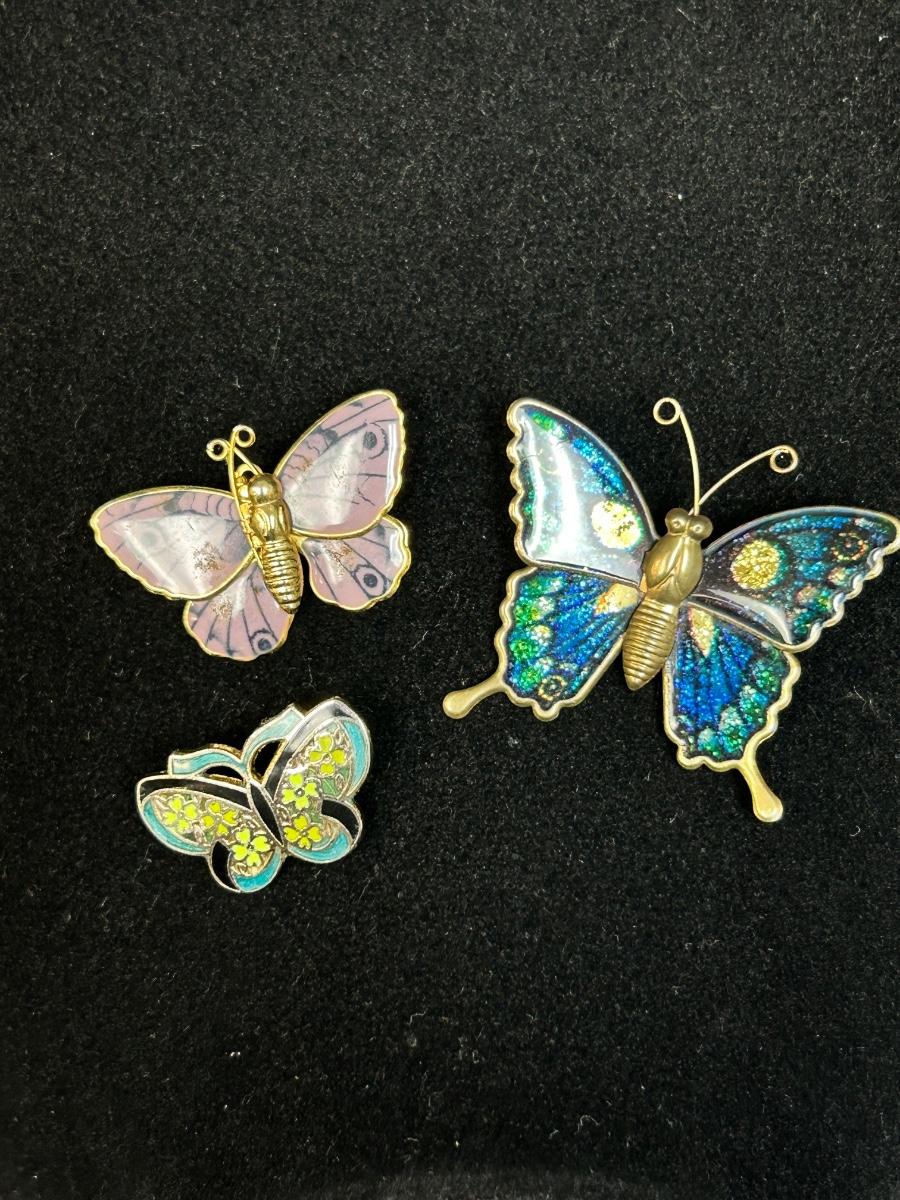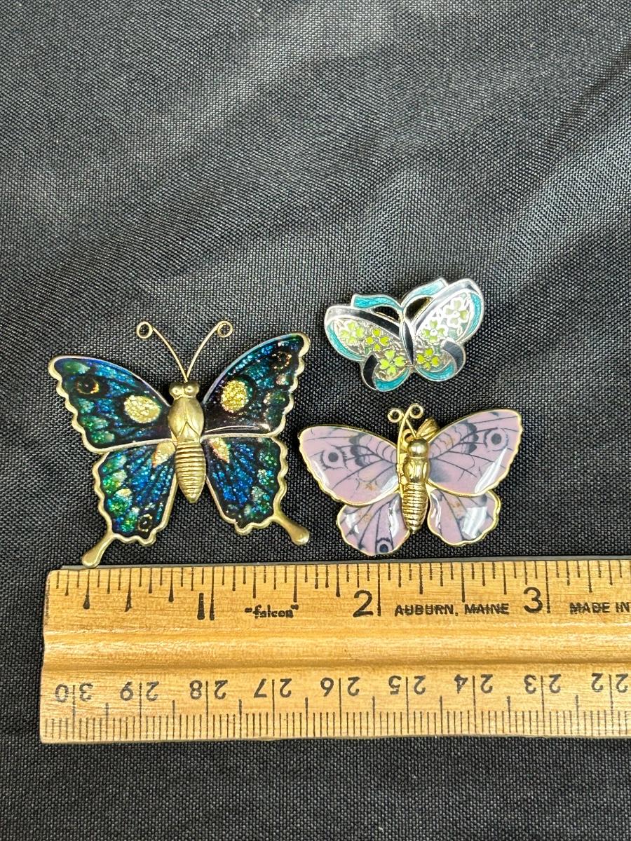 Lot of Three Enamel Style Butterfly Pins Brooches