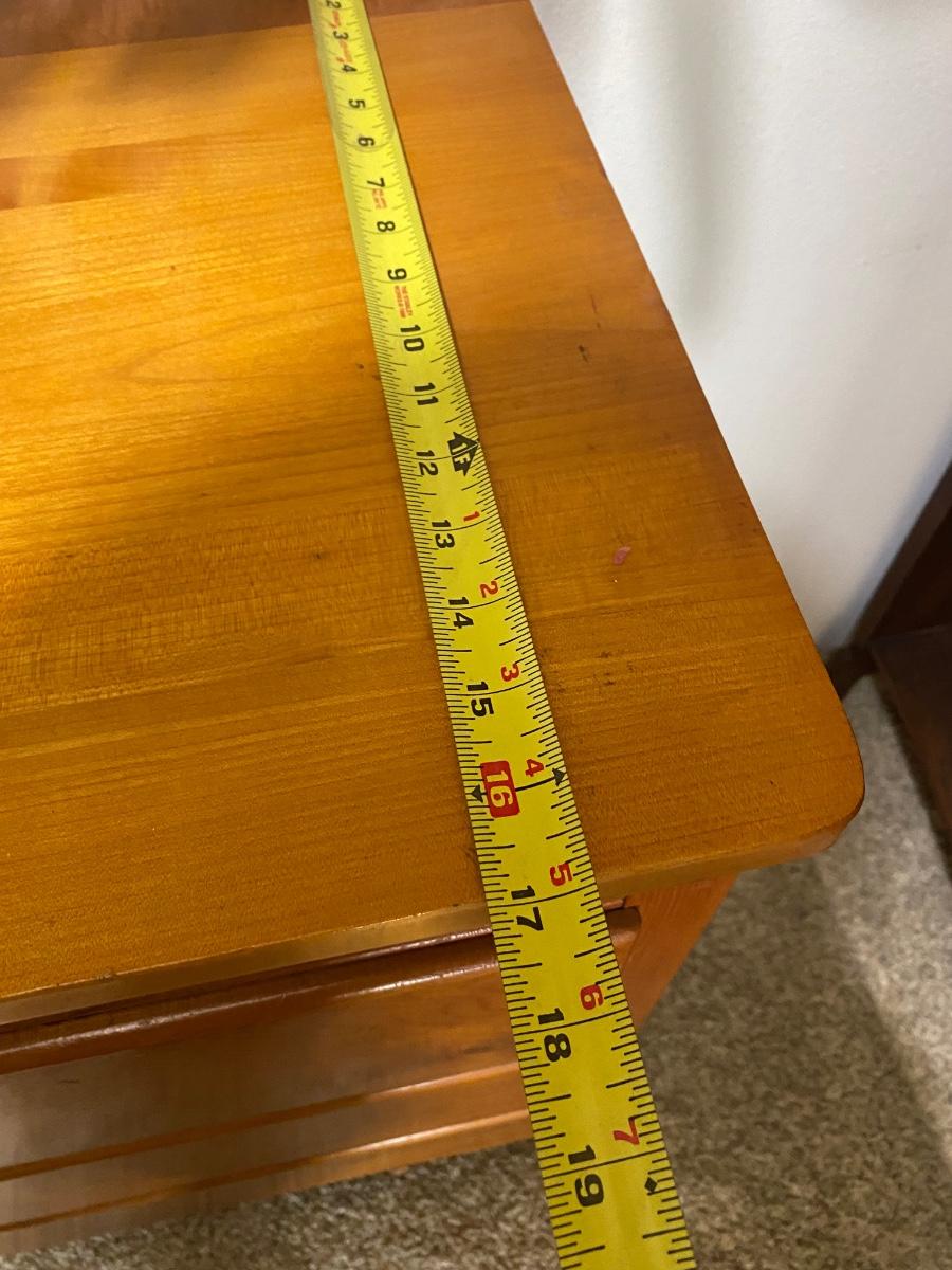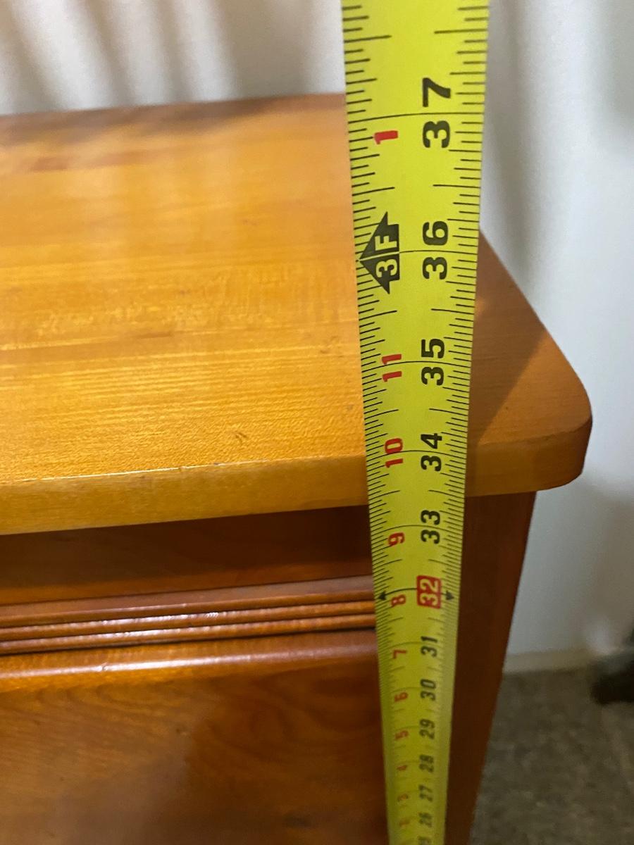 Vintage Blond Wood Three Drawer Small Dresser Iverson & Son Furniture Co. In good condition. There is a matching one available in a separate listing of this auction. Three nice sized drawers. Minimal signs of use. About 30"x17" and 34" tall.