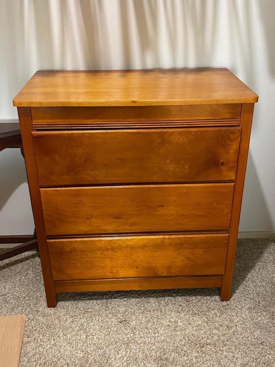 Vintage Blond Wood Three Drawer Small Dresser Iverson & Son Furniture Co.