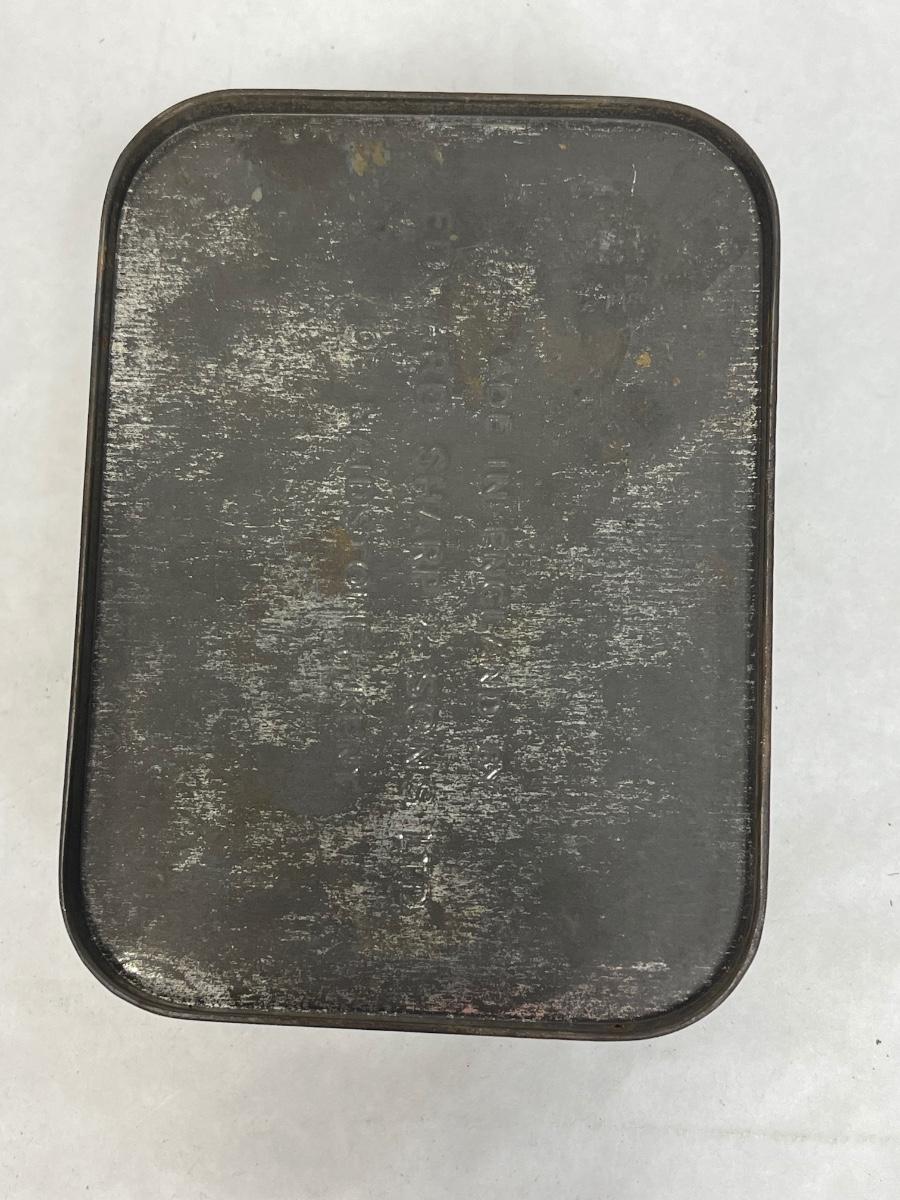 Rust and Corrosion kept us from getting lid off. In good vintage condition. measures approx 5" x 7".