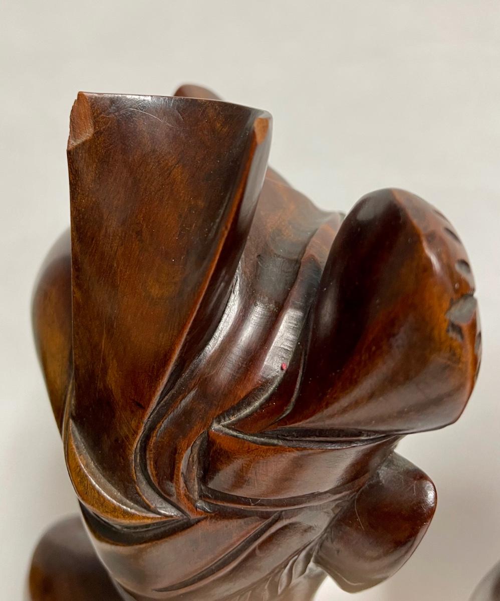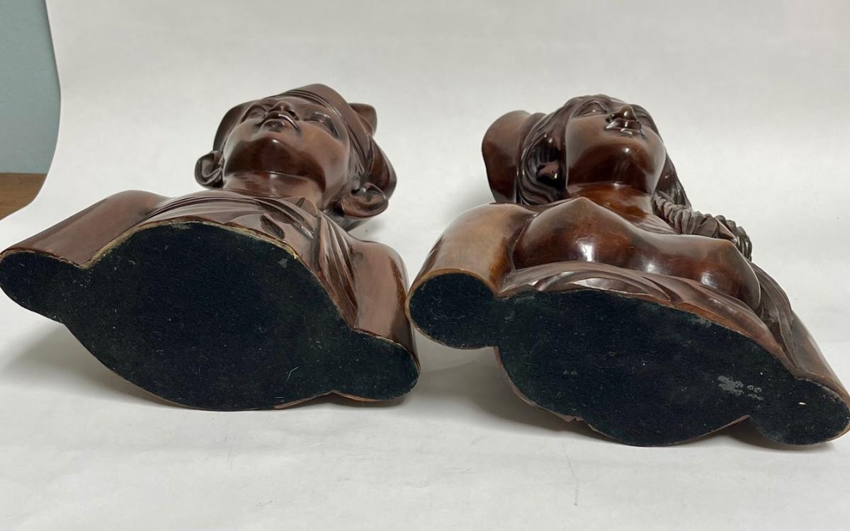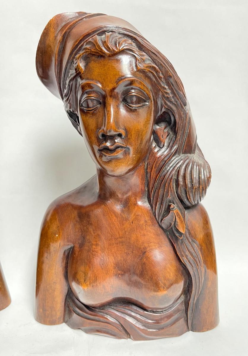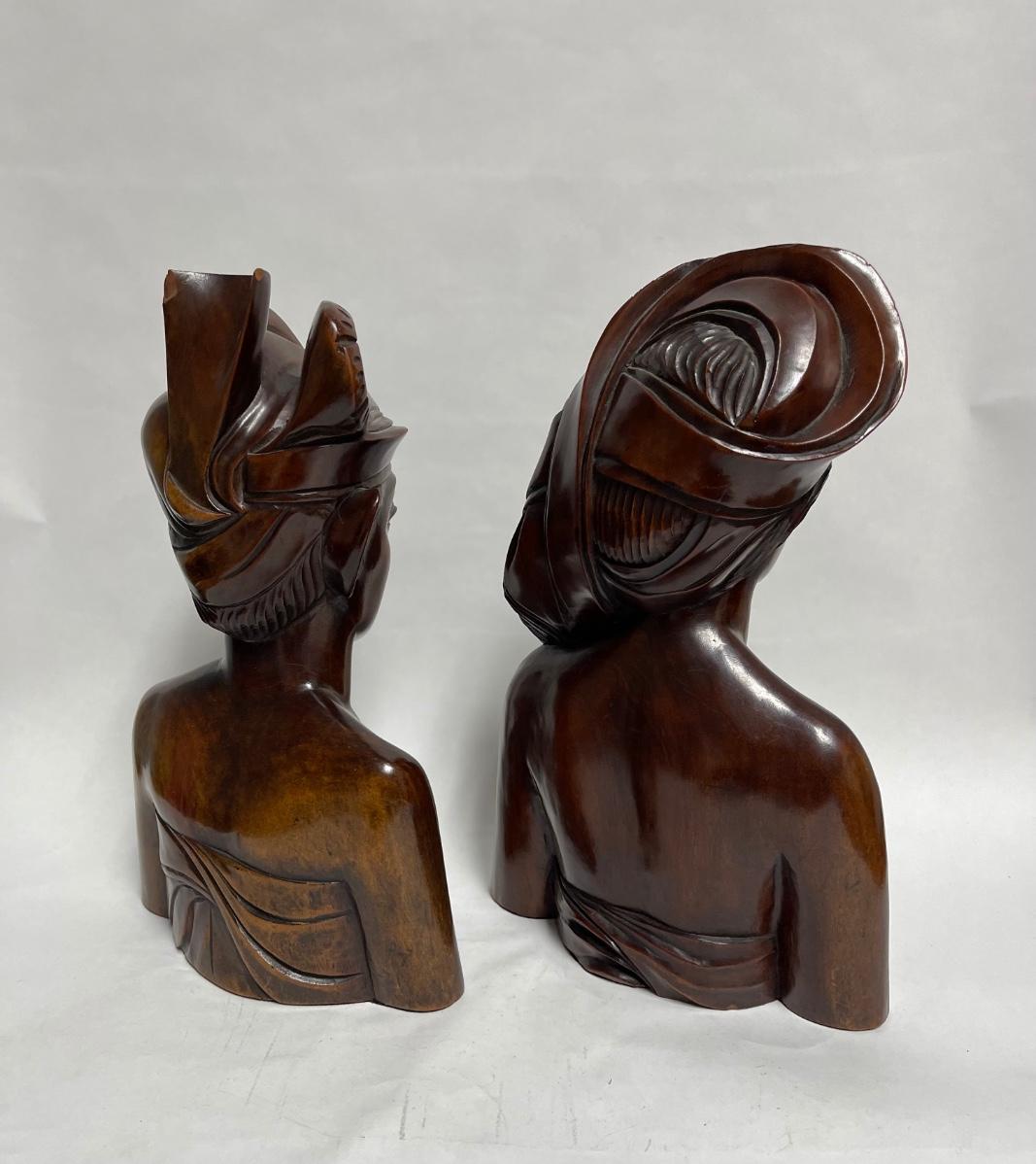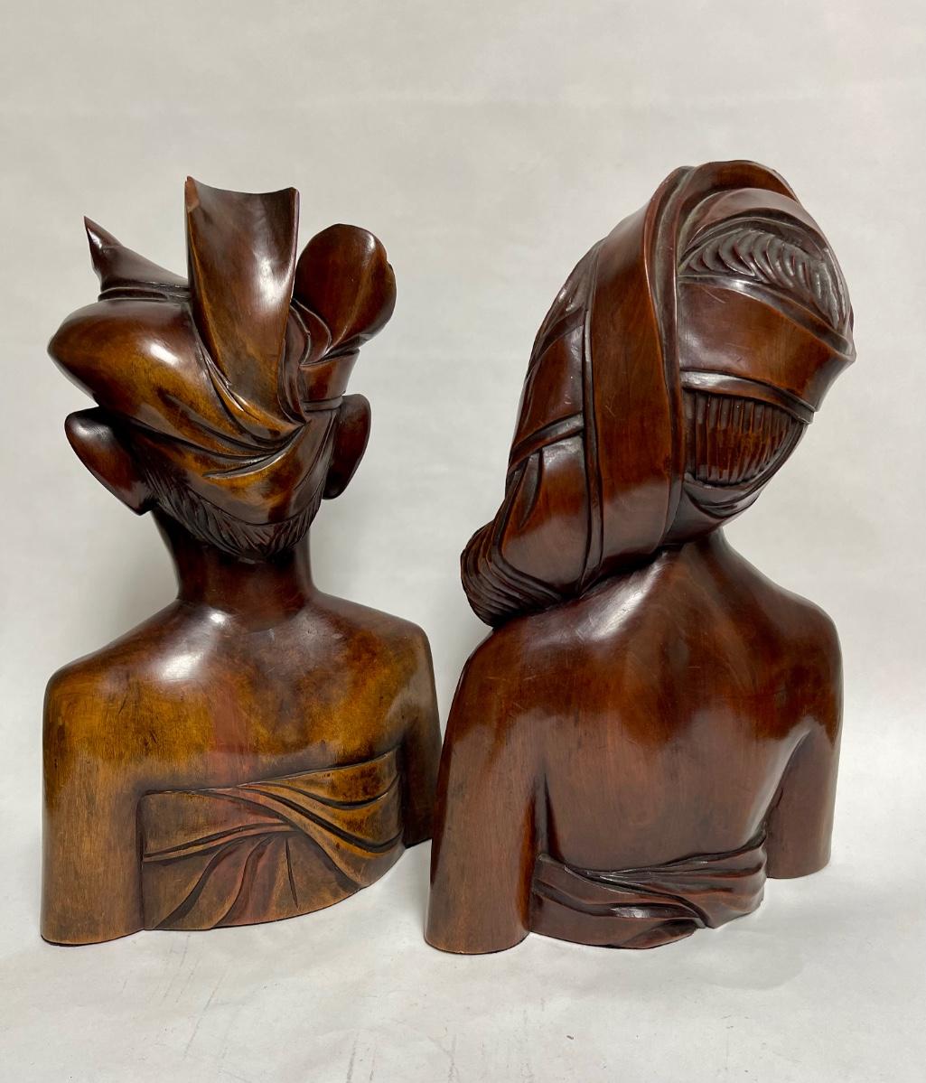 antique Carved Ballinese Indonesian Bali Couple Man and Lady nude bust wood carving sculpture