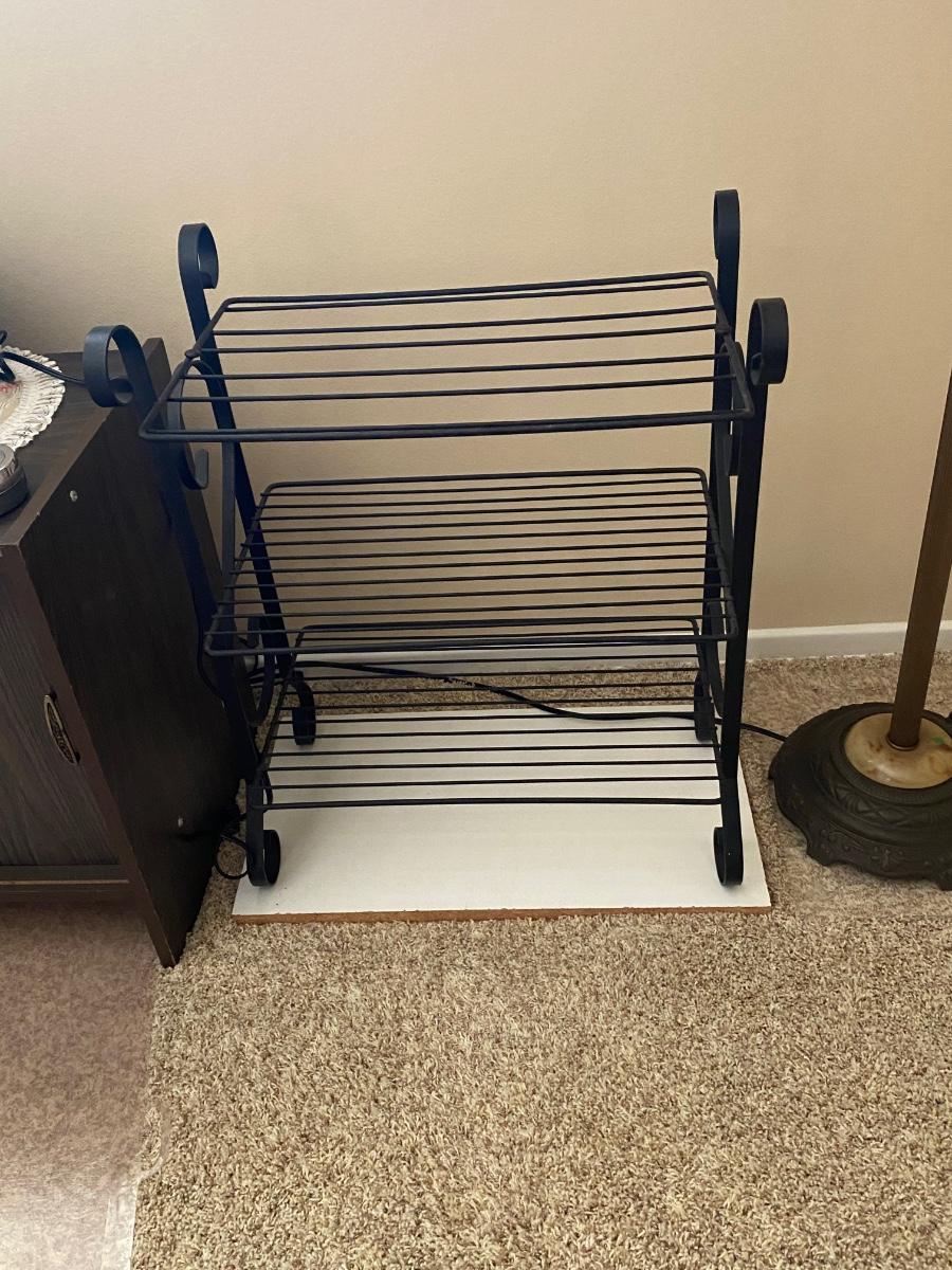 Small Three Tier Black Metal Wrought Iron Side Table Plant Stand with Removeable Top