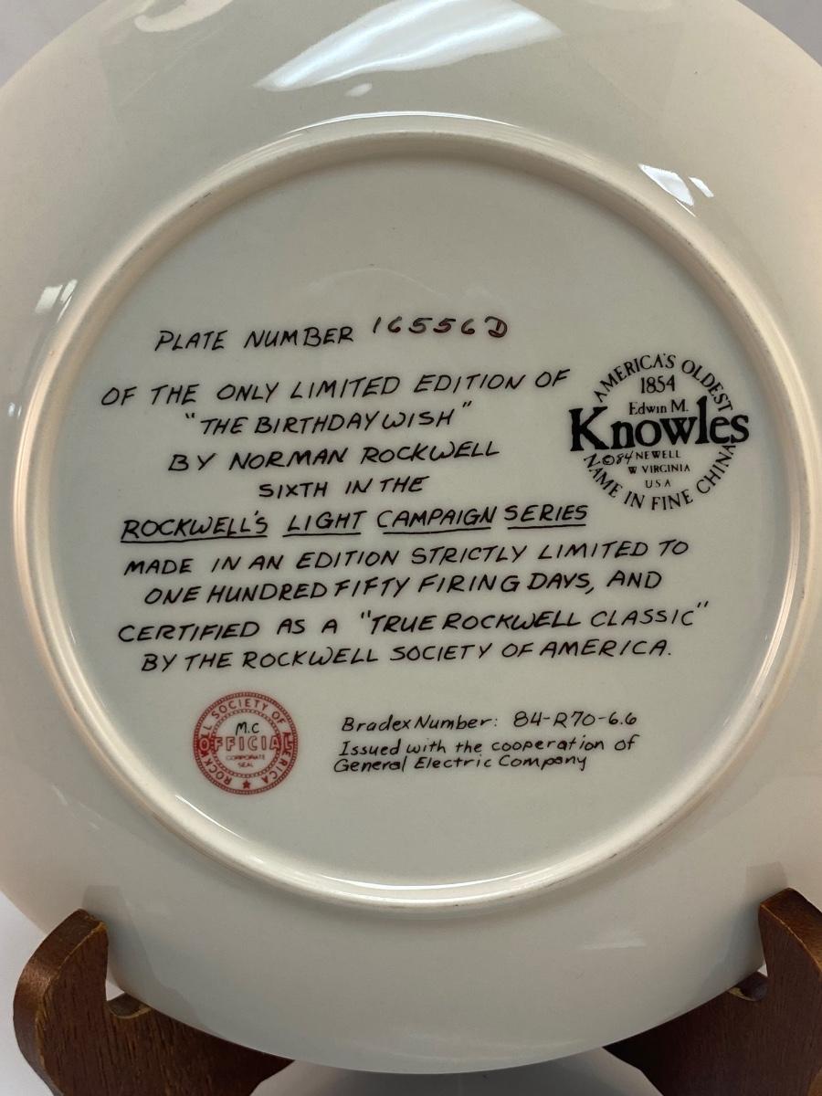 Norman Rockwell Limited Edition The Birthday Wish Light Campaign Series Collector Plate. Good condition, comes in original shipper box.