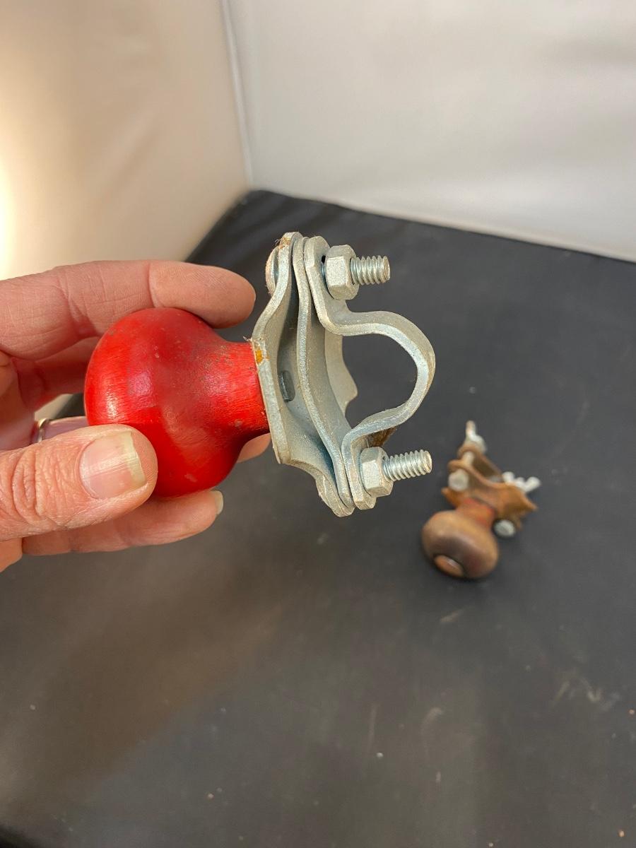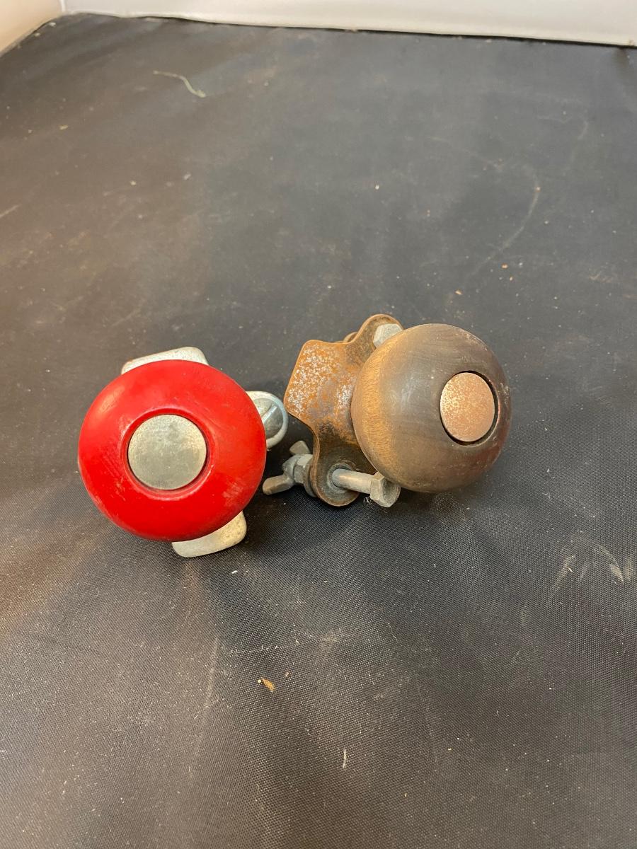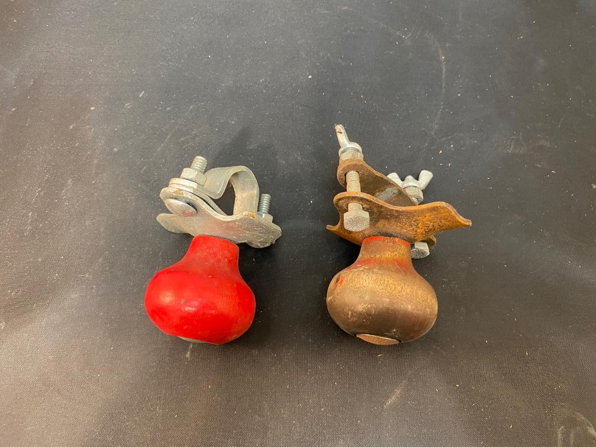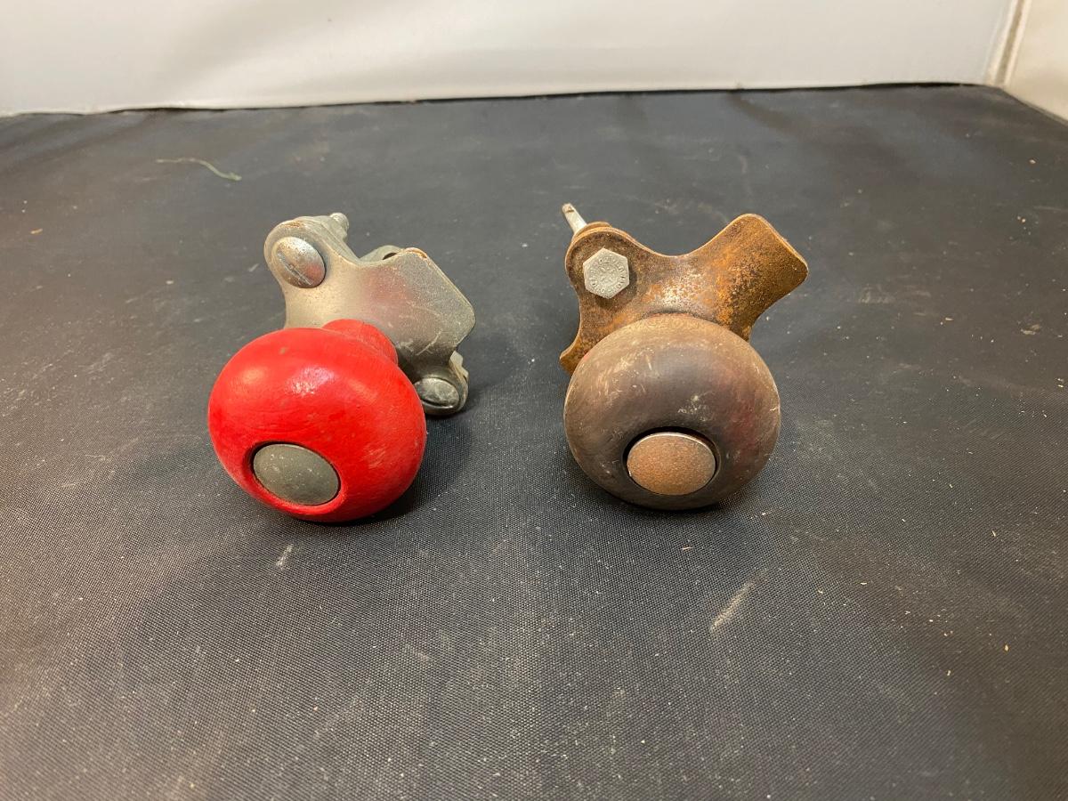 Pair of Vintage Wood Steering Wheel Knobs. In vintage condition, one shows more signs of use than the other.