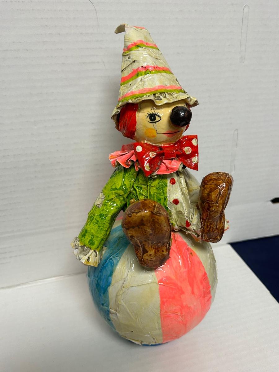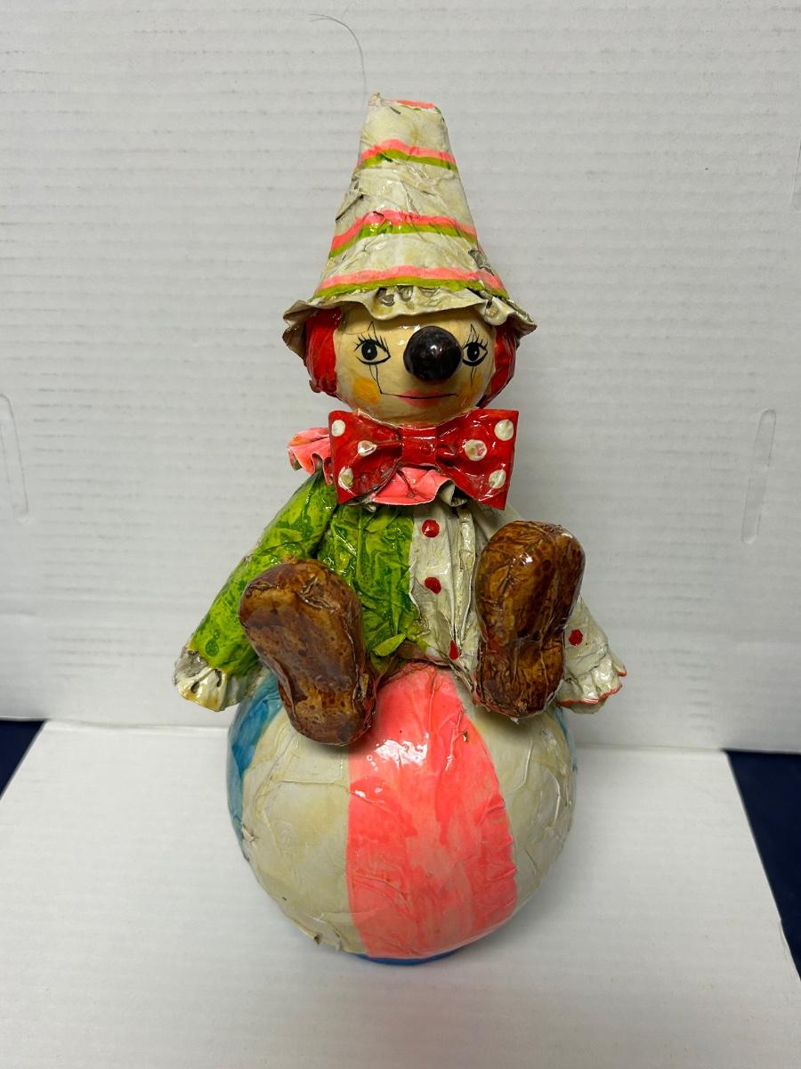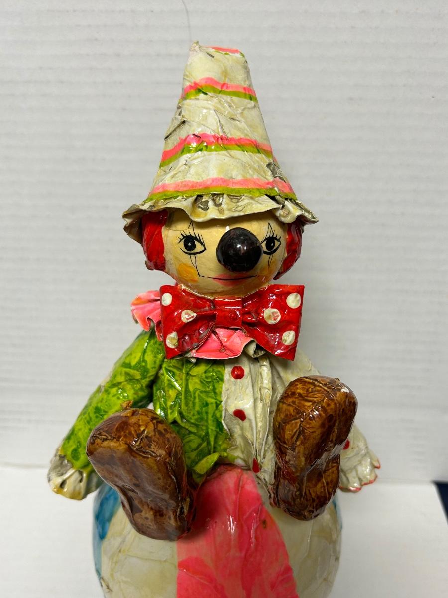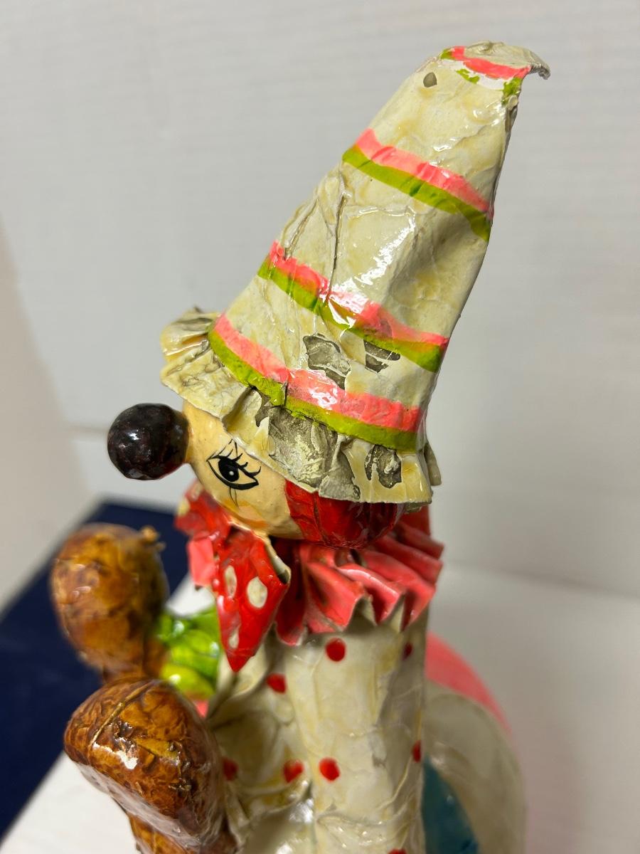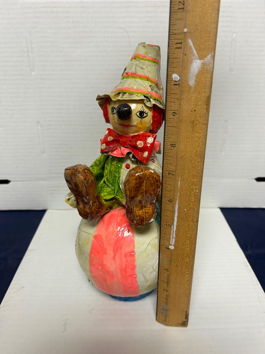 Paper Mache Wind Up Clown Music Player. In aged condition. Works.