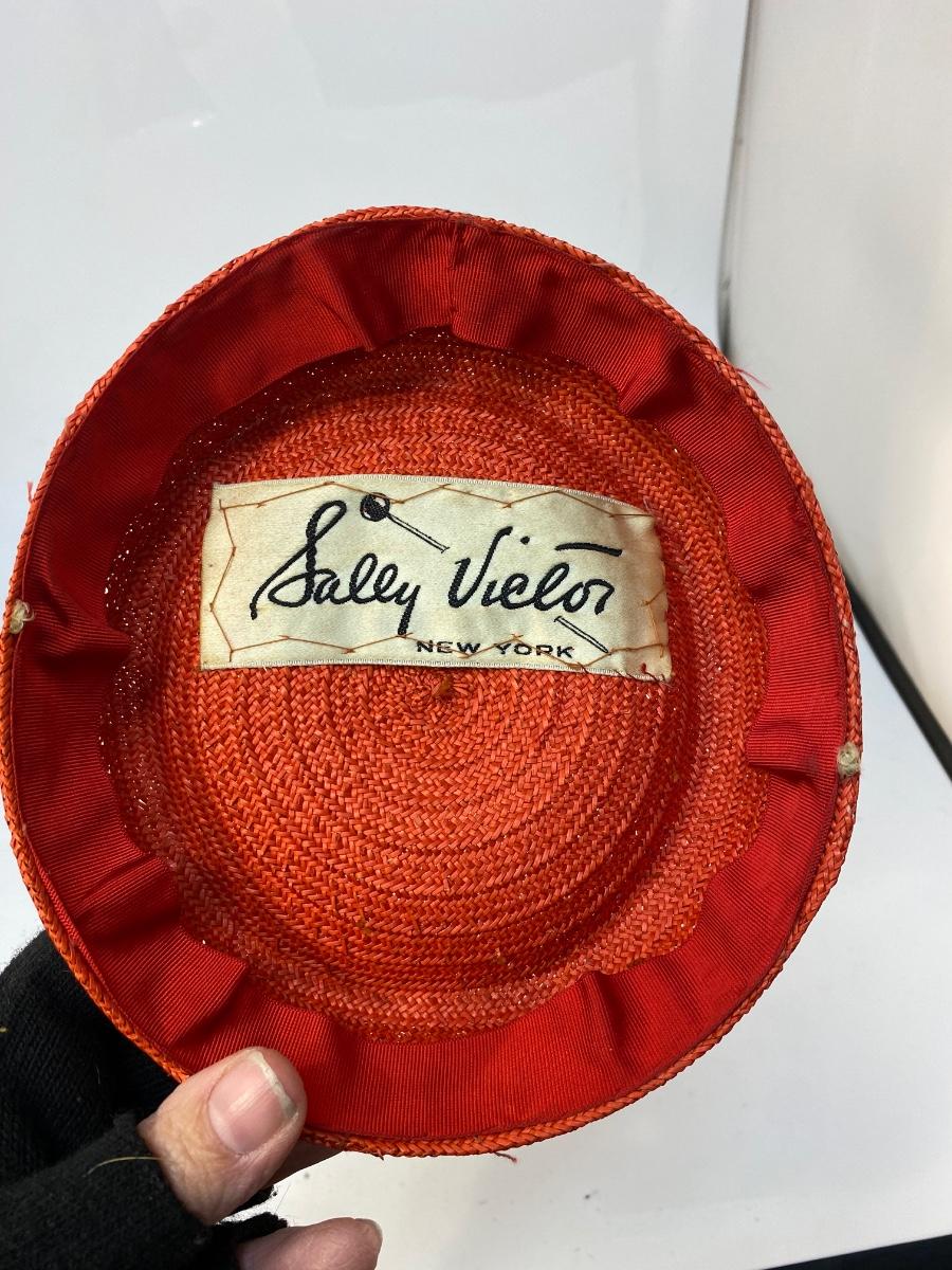 Vintage Orange Red Sally Victor Straw Cap Fascinator Hat