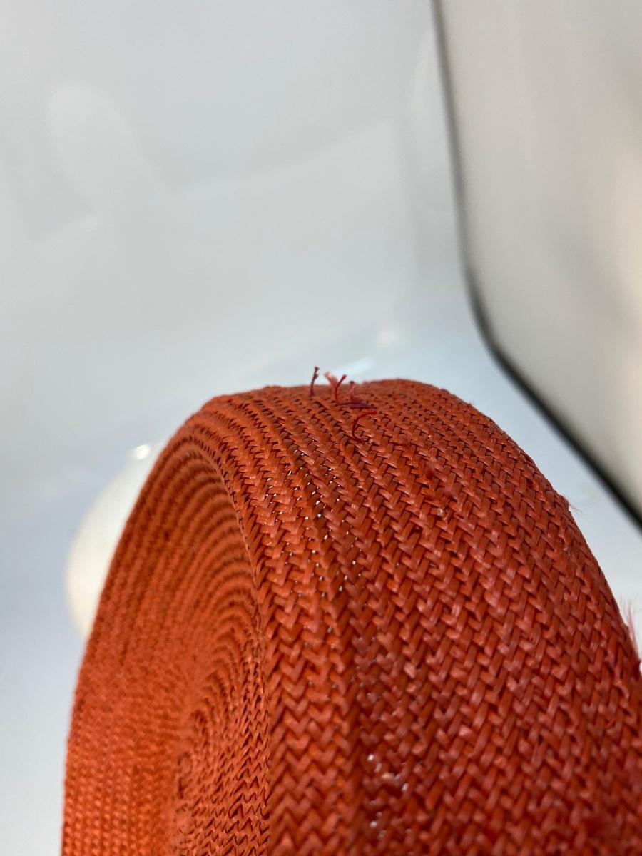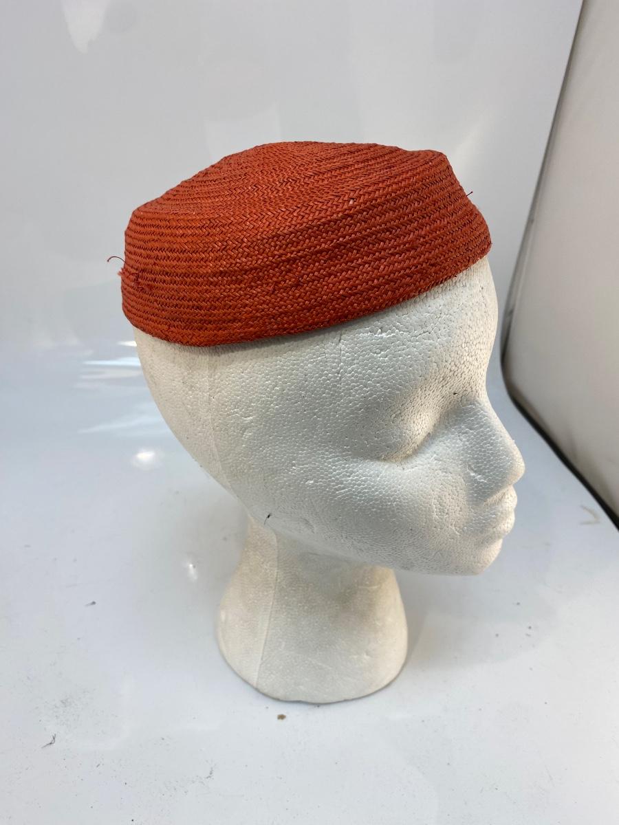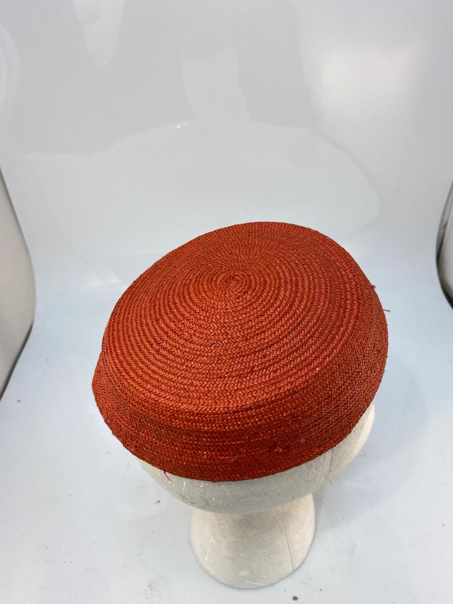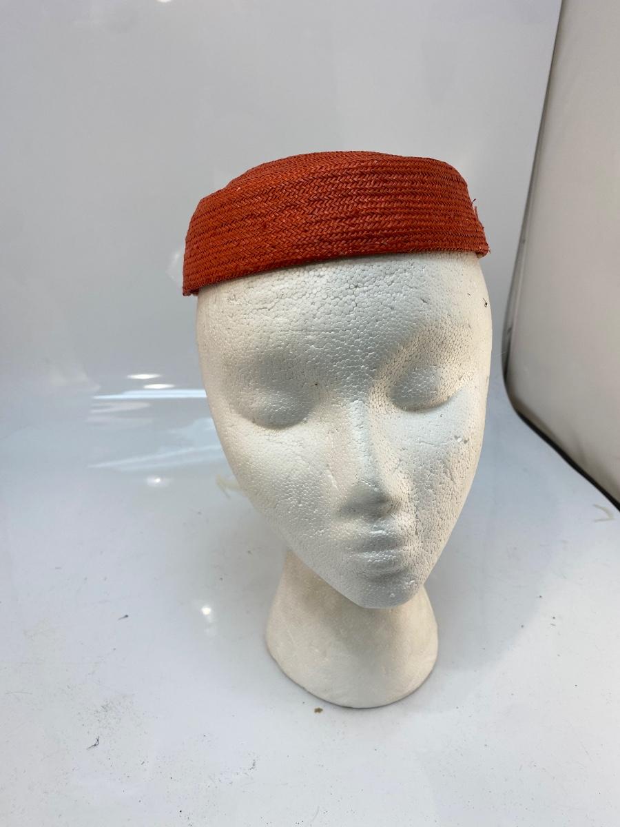Vintage Orange Red Sally Victor Straw Cap Fascinator Hat. There are some loose threads around the cap, possibly had a brim that was removed for repurpose. In good condition.