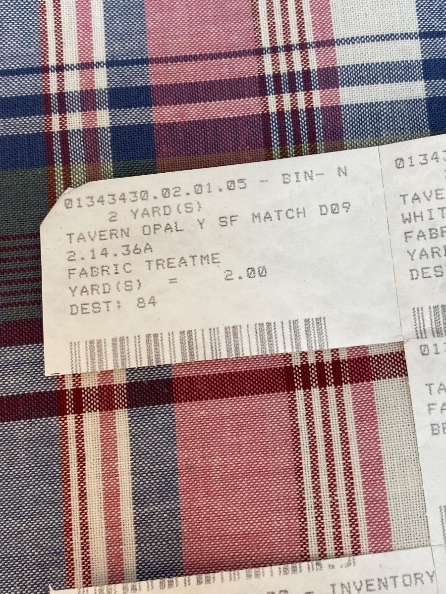 Blue Plaid Fabric 2 Yards Uncut Tavern Opal. Original sales tag attached with info.