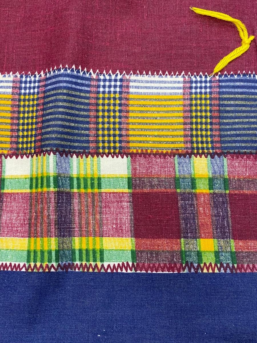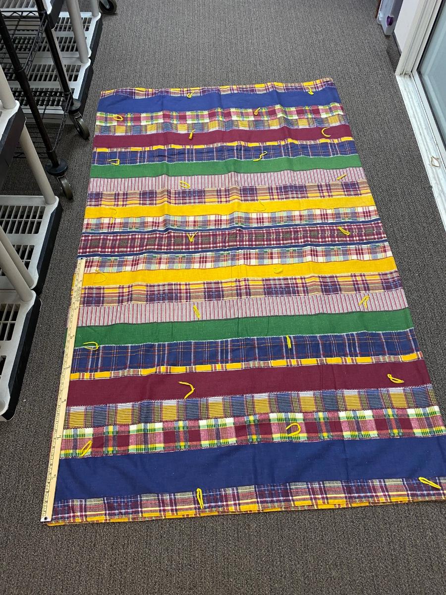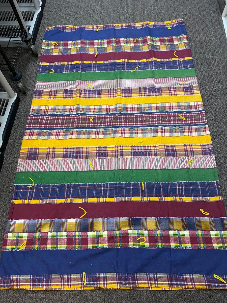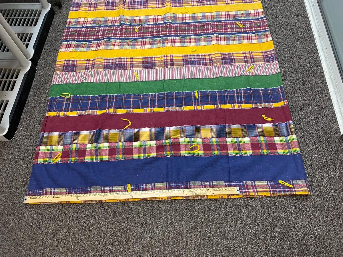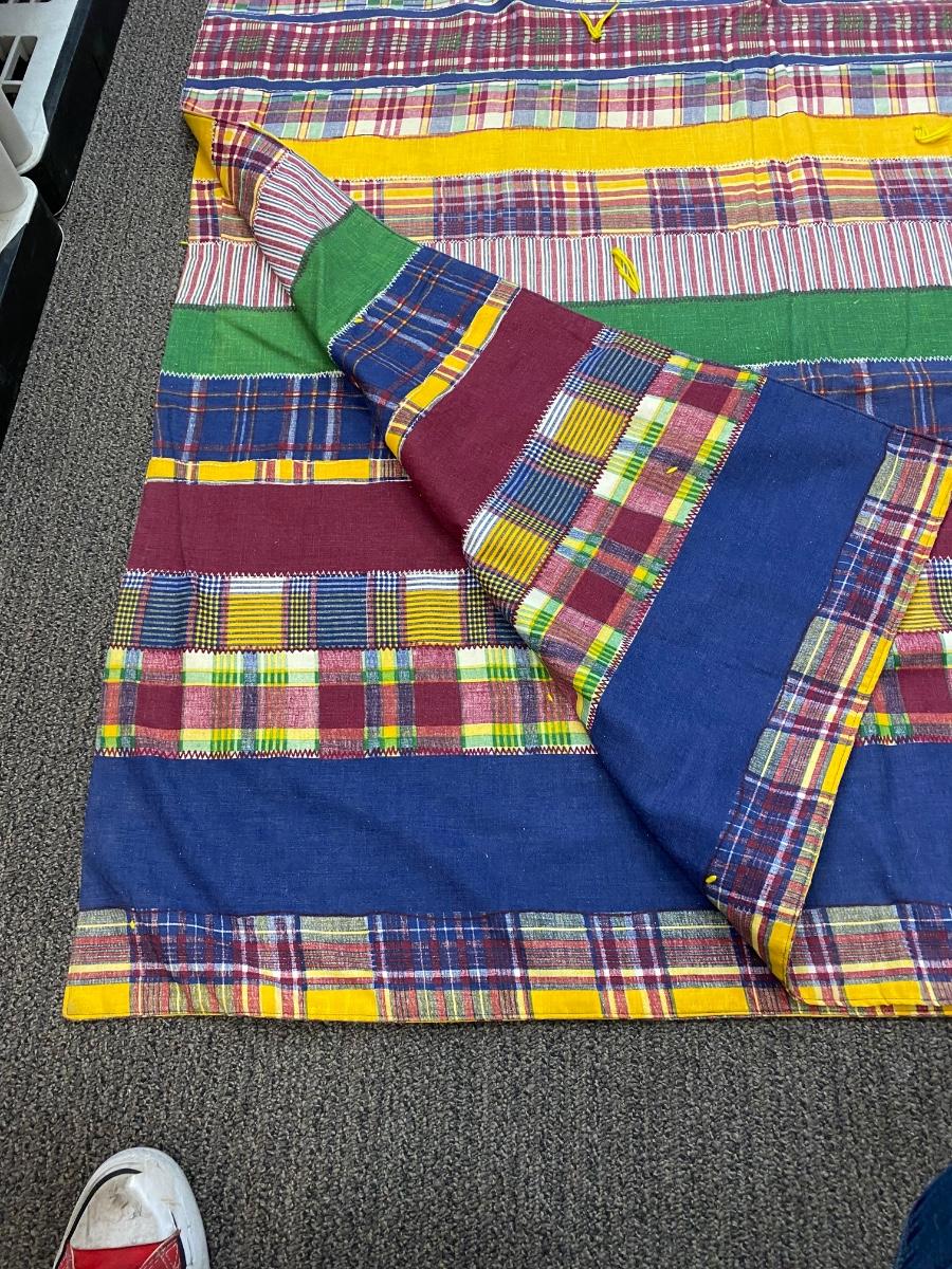 Vintage Faux Patchwork Print Blanket Quilt. One solid piece of material that has a patchwork stitched together print. In good condition. About 8'x8' size.