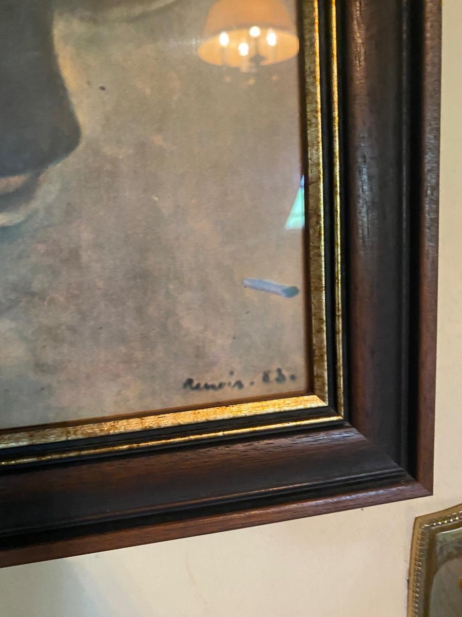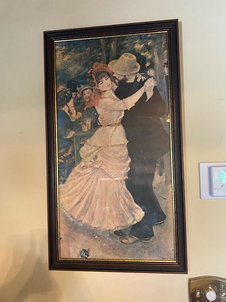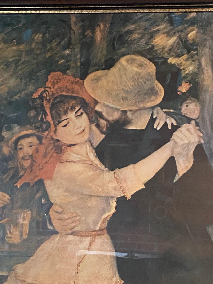 Vintage Renoir Reproduction Print Dance at Bougival Framed Art. In good condition. May have fade from original print from being hung on wall. 38" length.