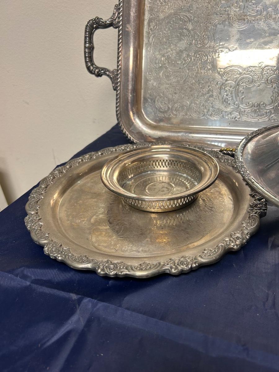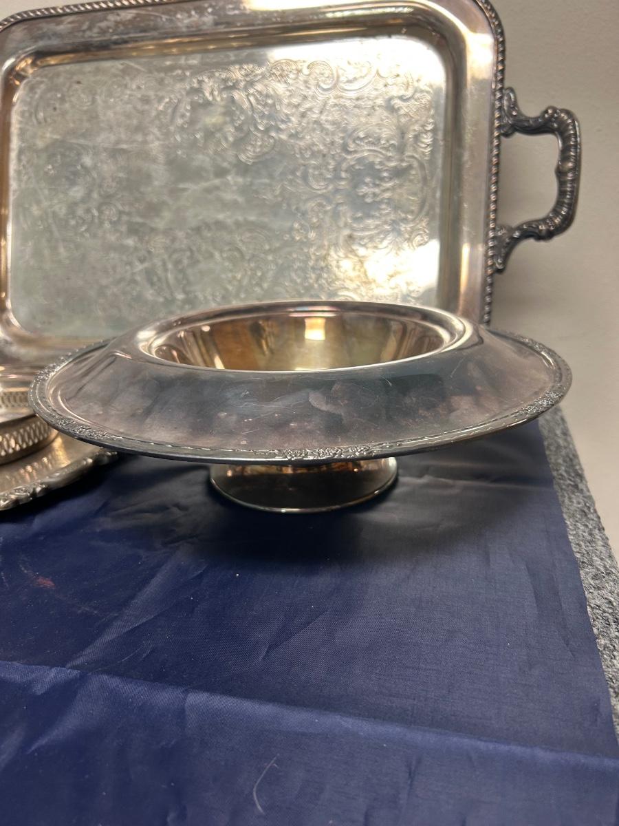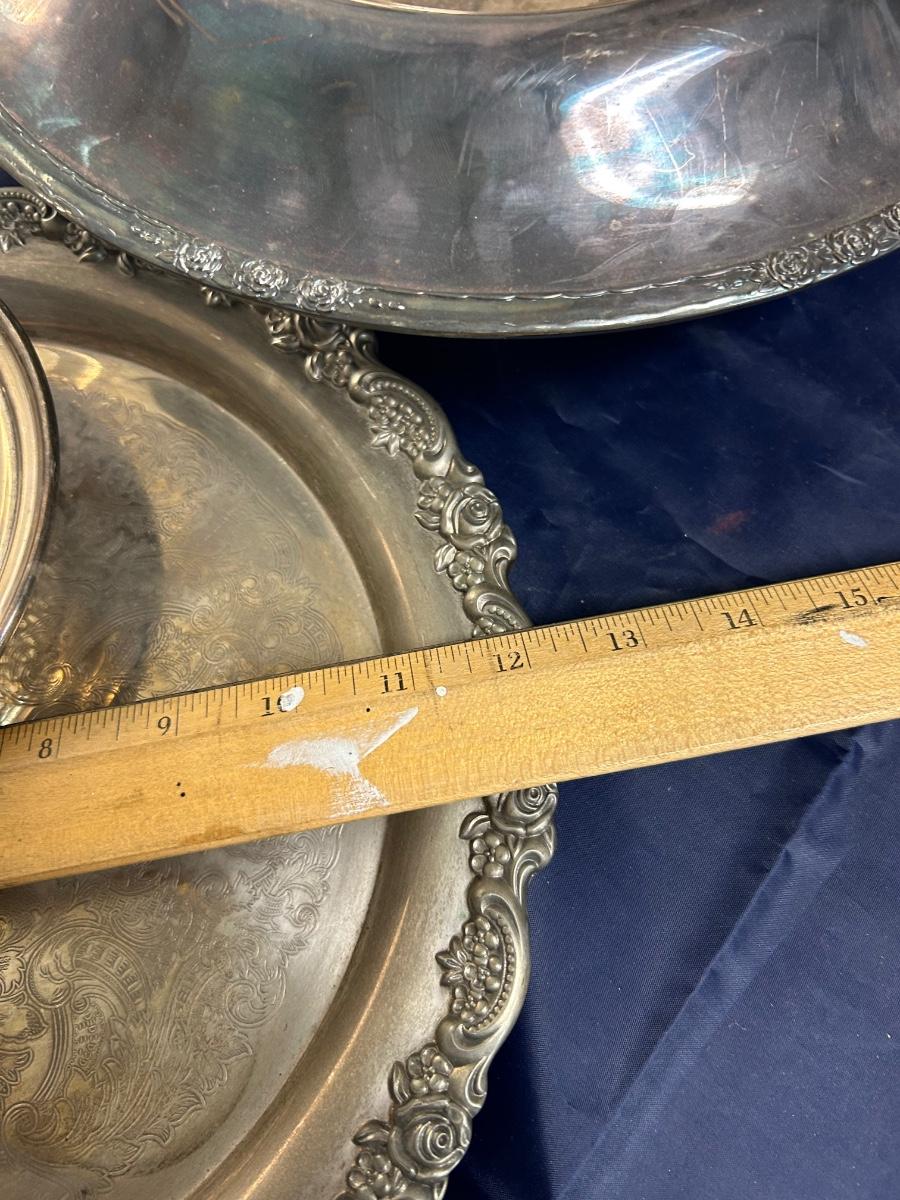 Vintage Mixed Pattern Lot of Silver Plate Serving Pieces Tray Platter Rose Console Bowl Dish