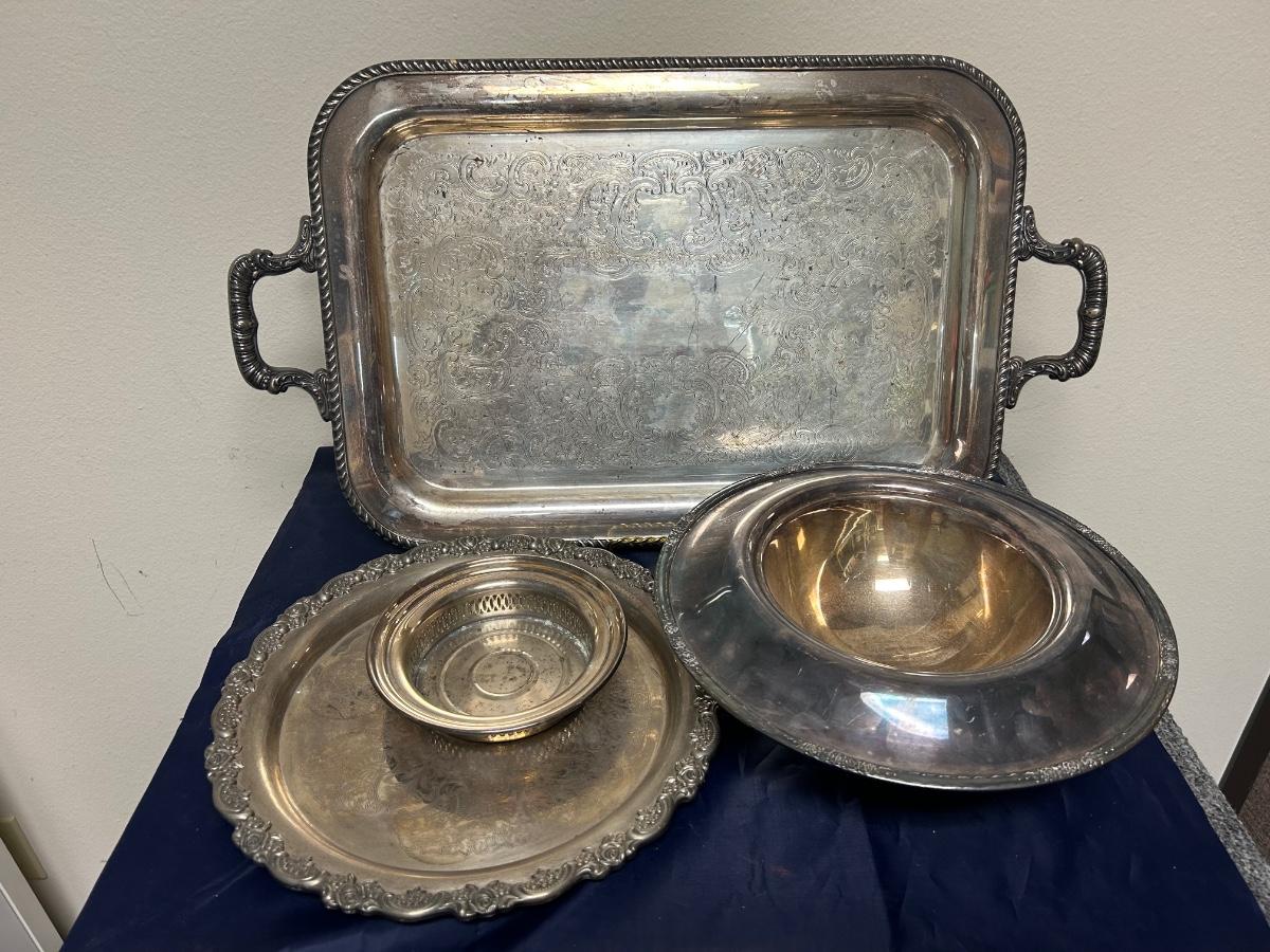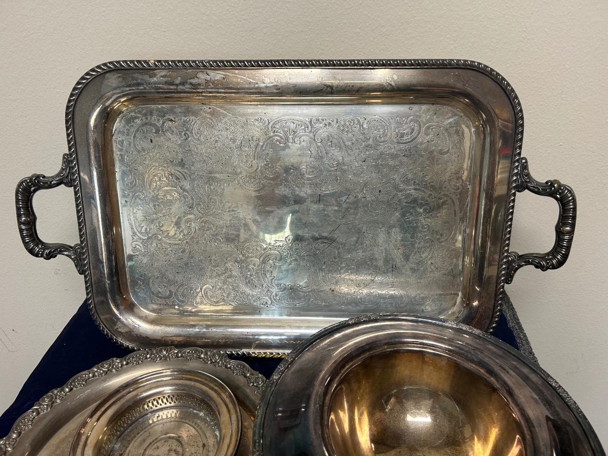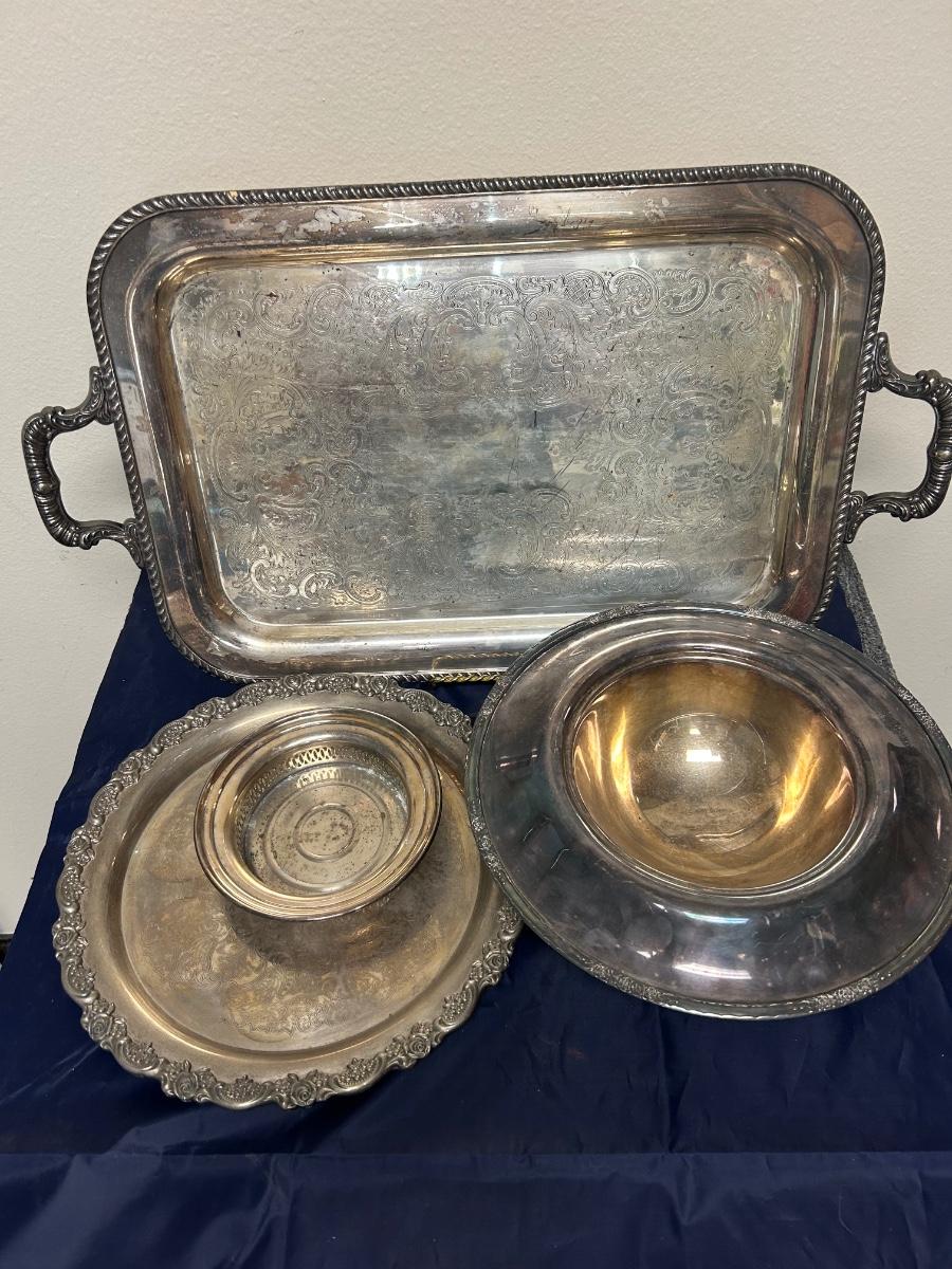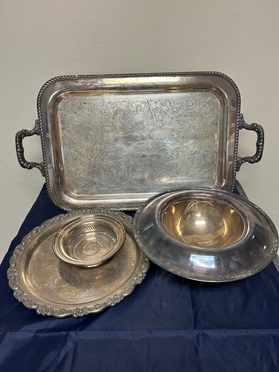 Vintage Mixed Pattern Lot of Silver Plate Serving Pieces Tray Platter Rose Console Bowl Dish