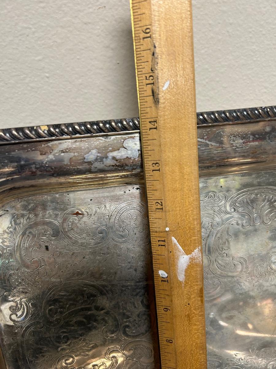 Vintage Mixed Pattern Lot of Silver Plate Serving Pieces Tray Platter Rose Console Bowl Dish. Various patterns. In good vintage condition. Handles tray is large and heavy.