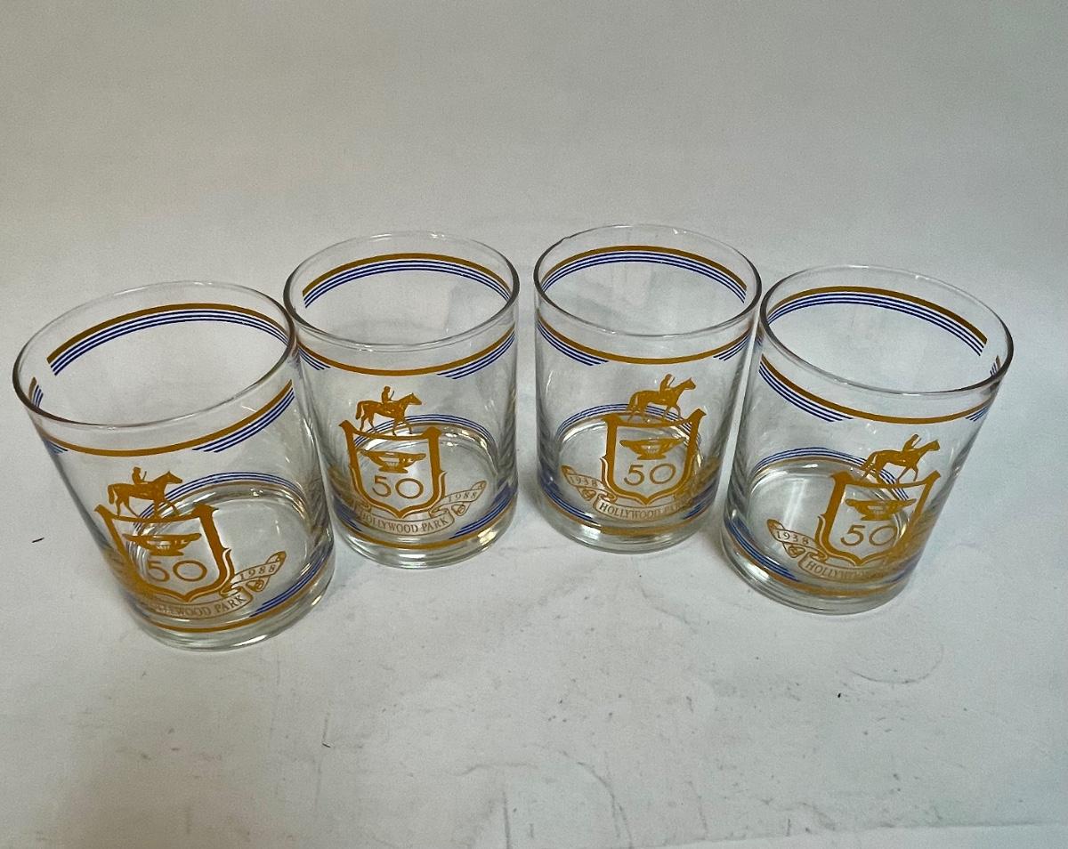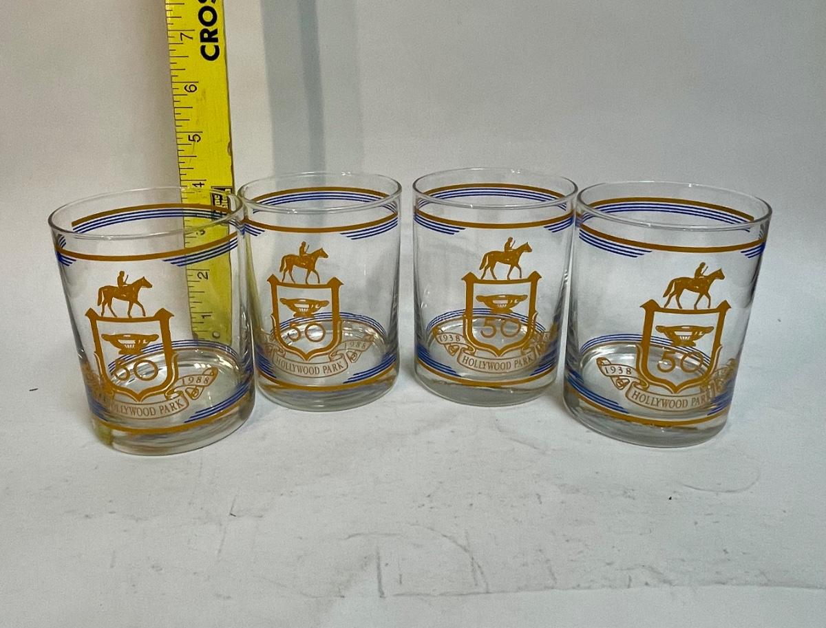 Hollywood Park 50th Glass Cup Tumbler Cocktail Lowball Glass Barware Set of 4