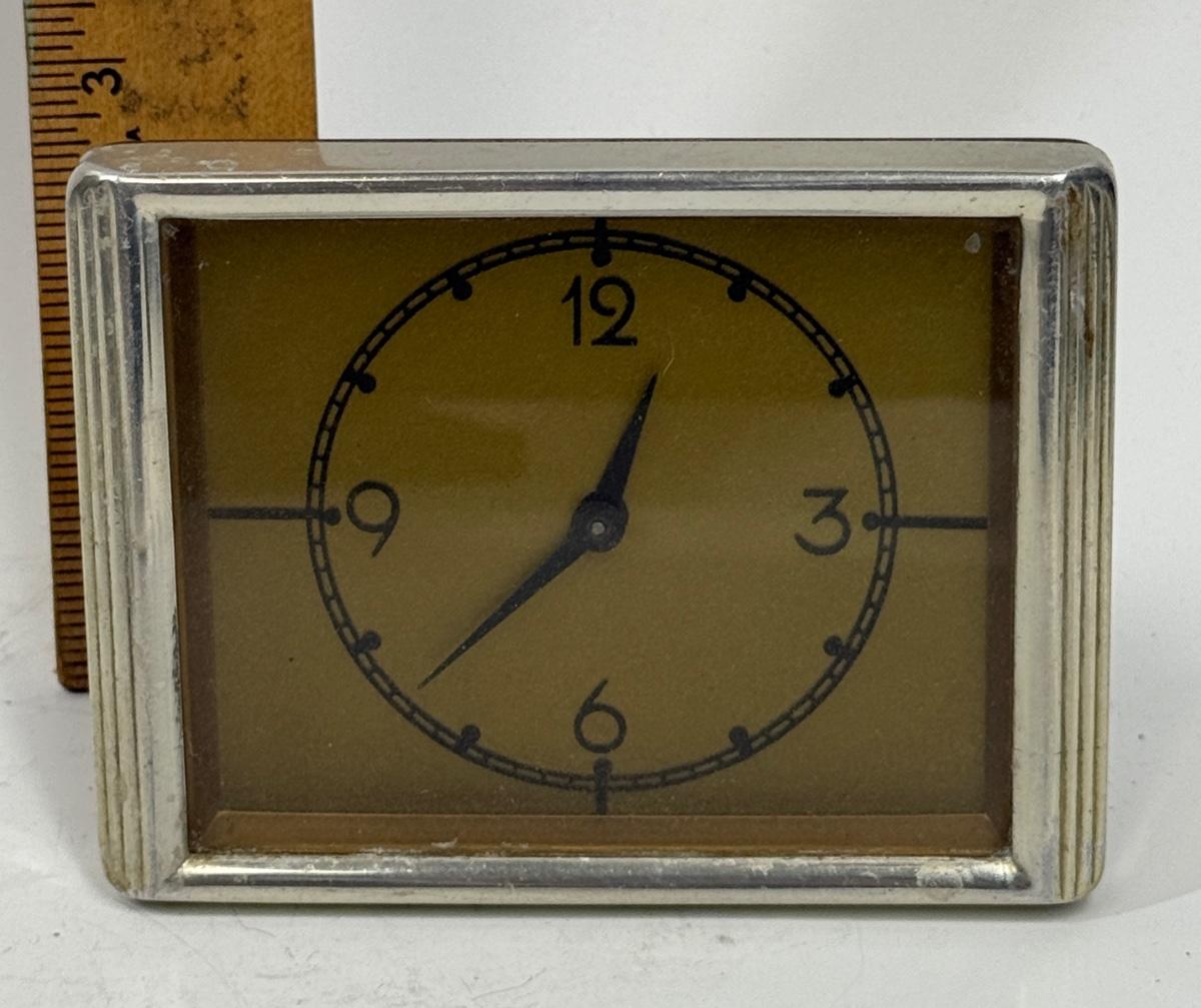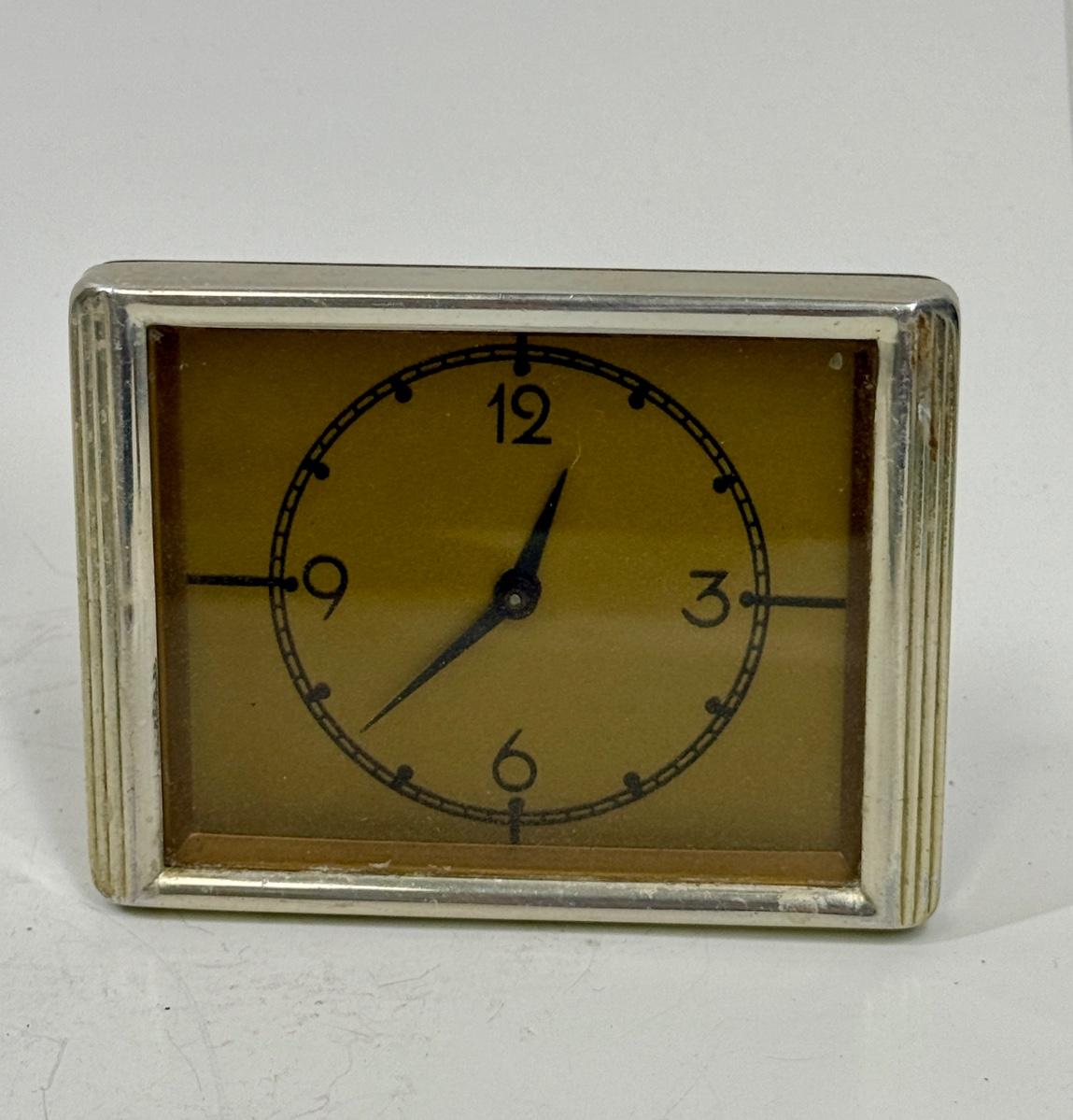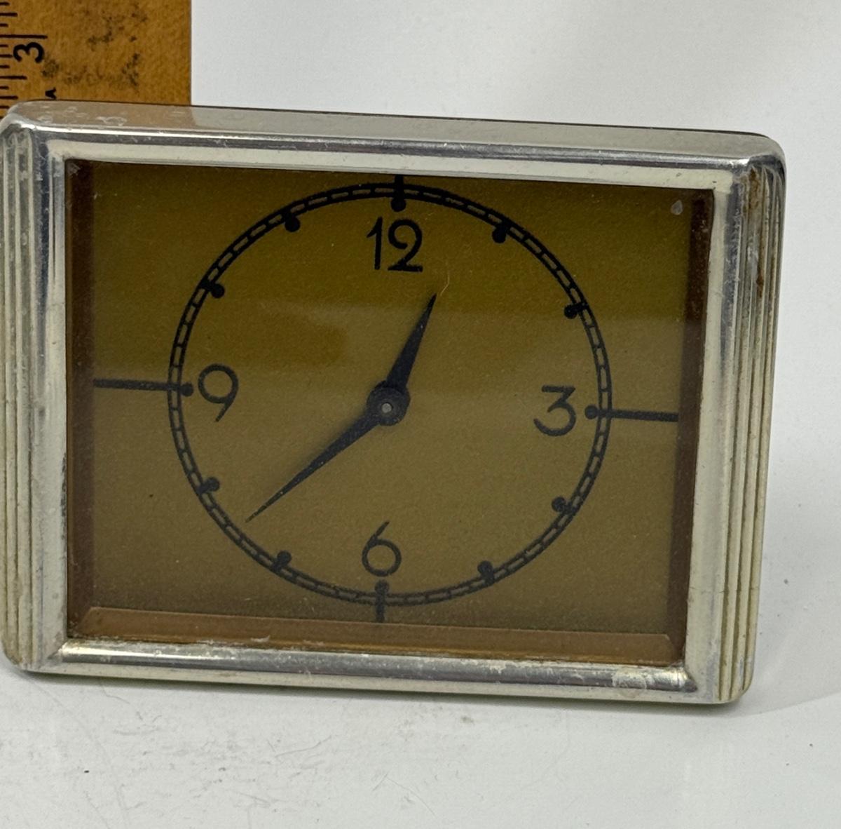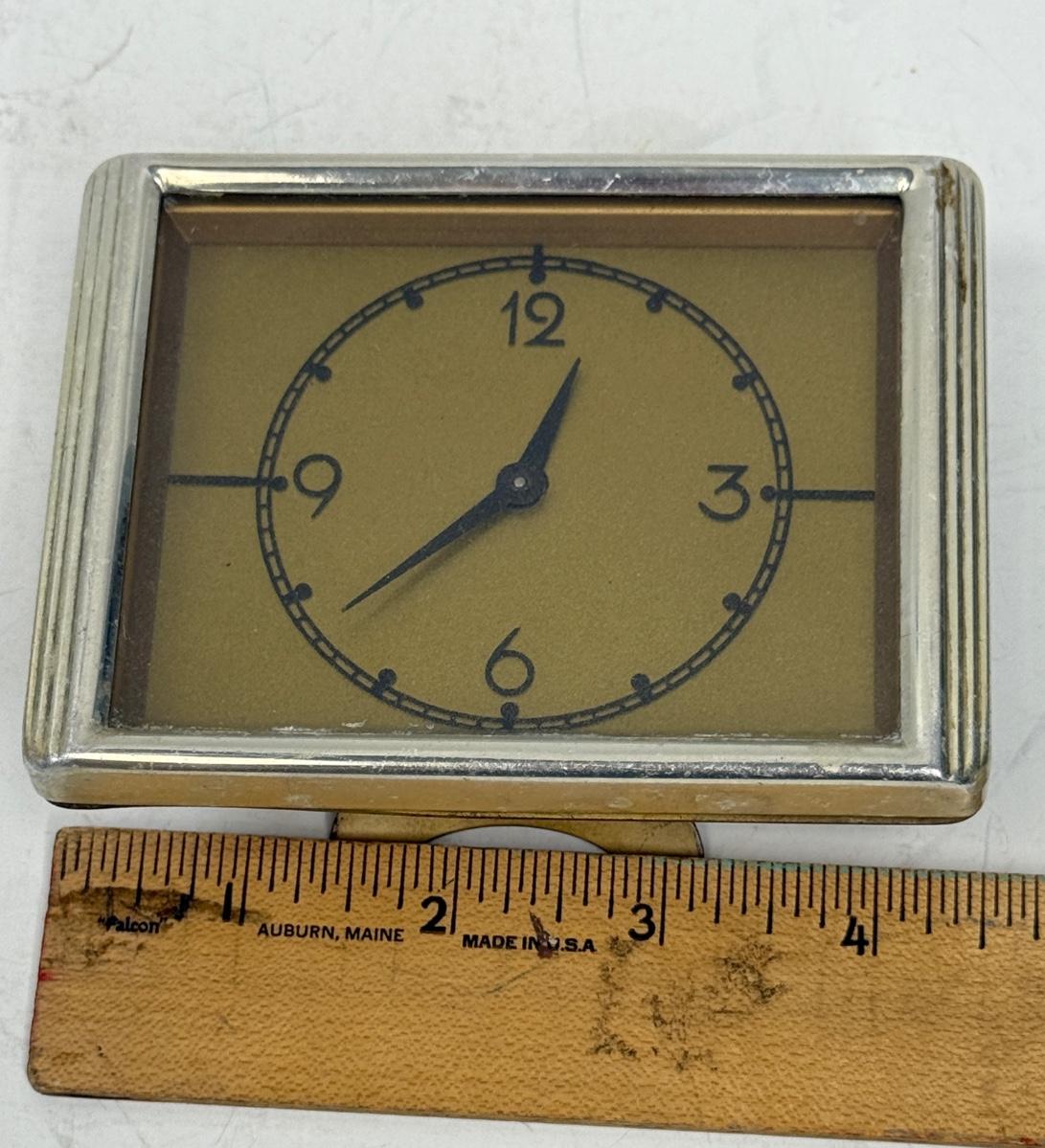 Vintage Art Deco 1960's Mid-Century Style MCM Brass and Glass Modern Tabletop Desktop Mechanical Clock