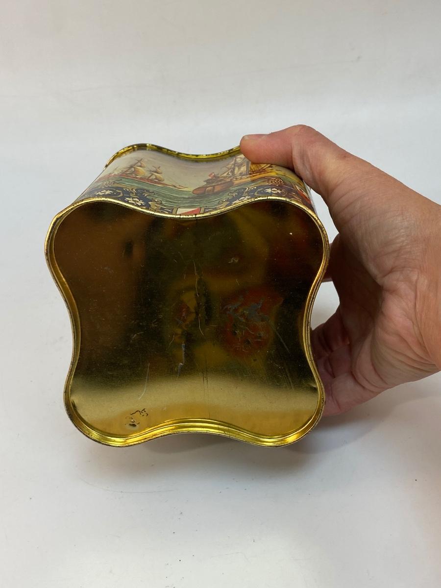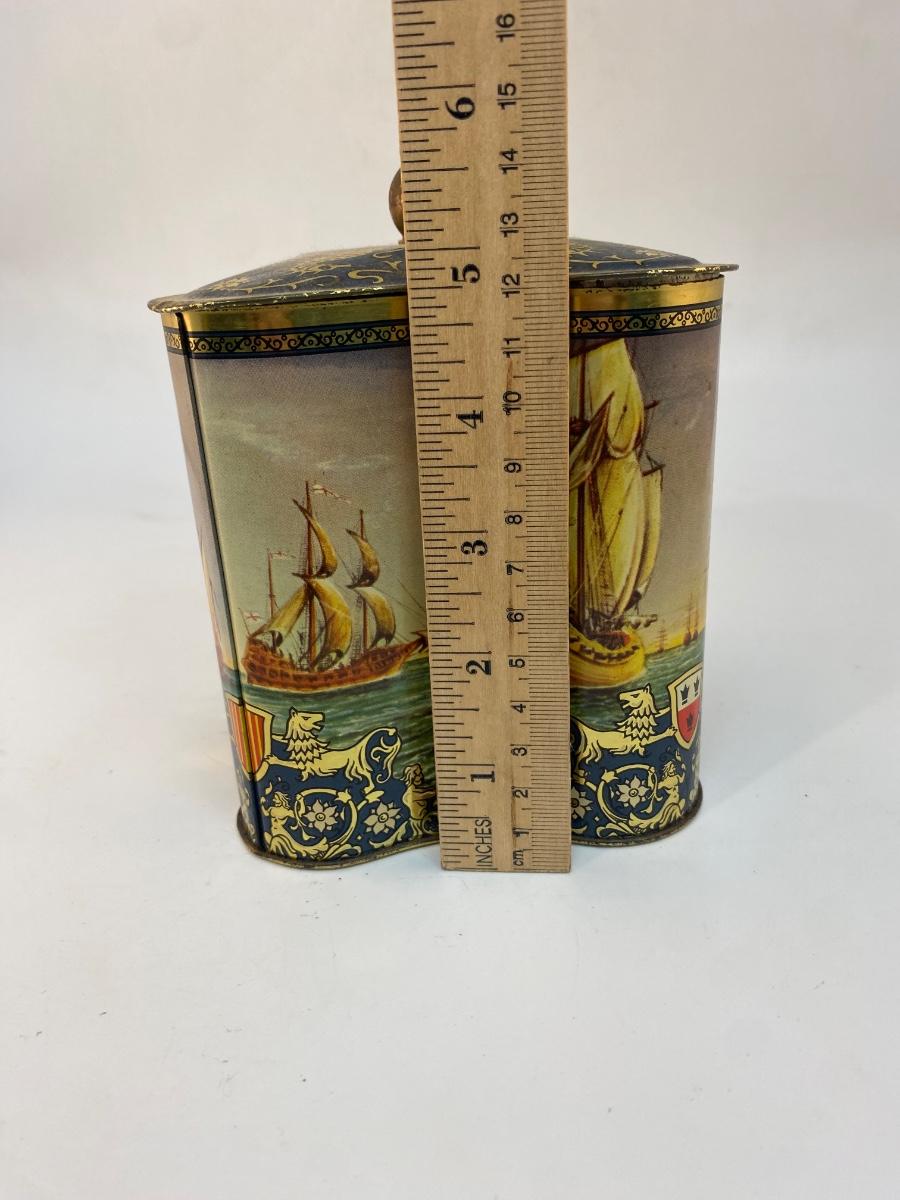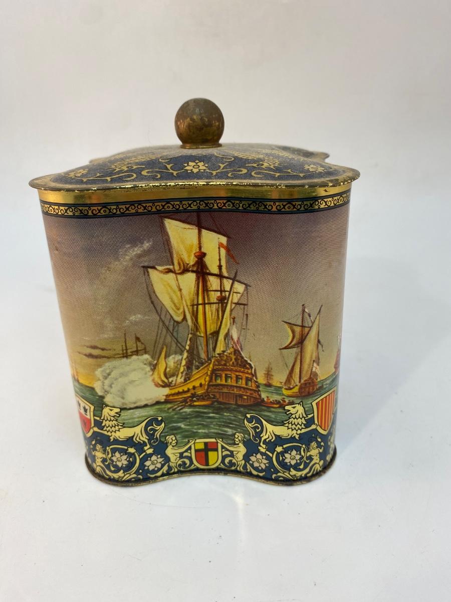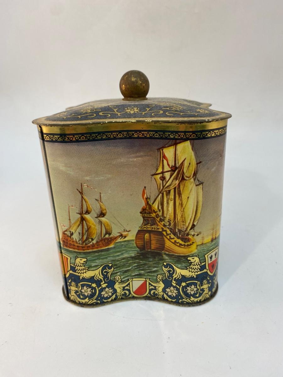 Vintage Nautical Maritime Sailing Ships Cookie Biscuit Tin Seahorses and Flowers Lid
