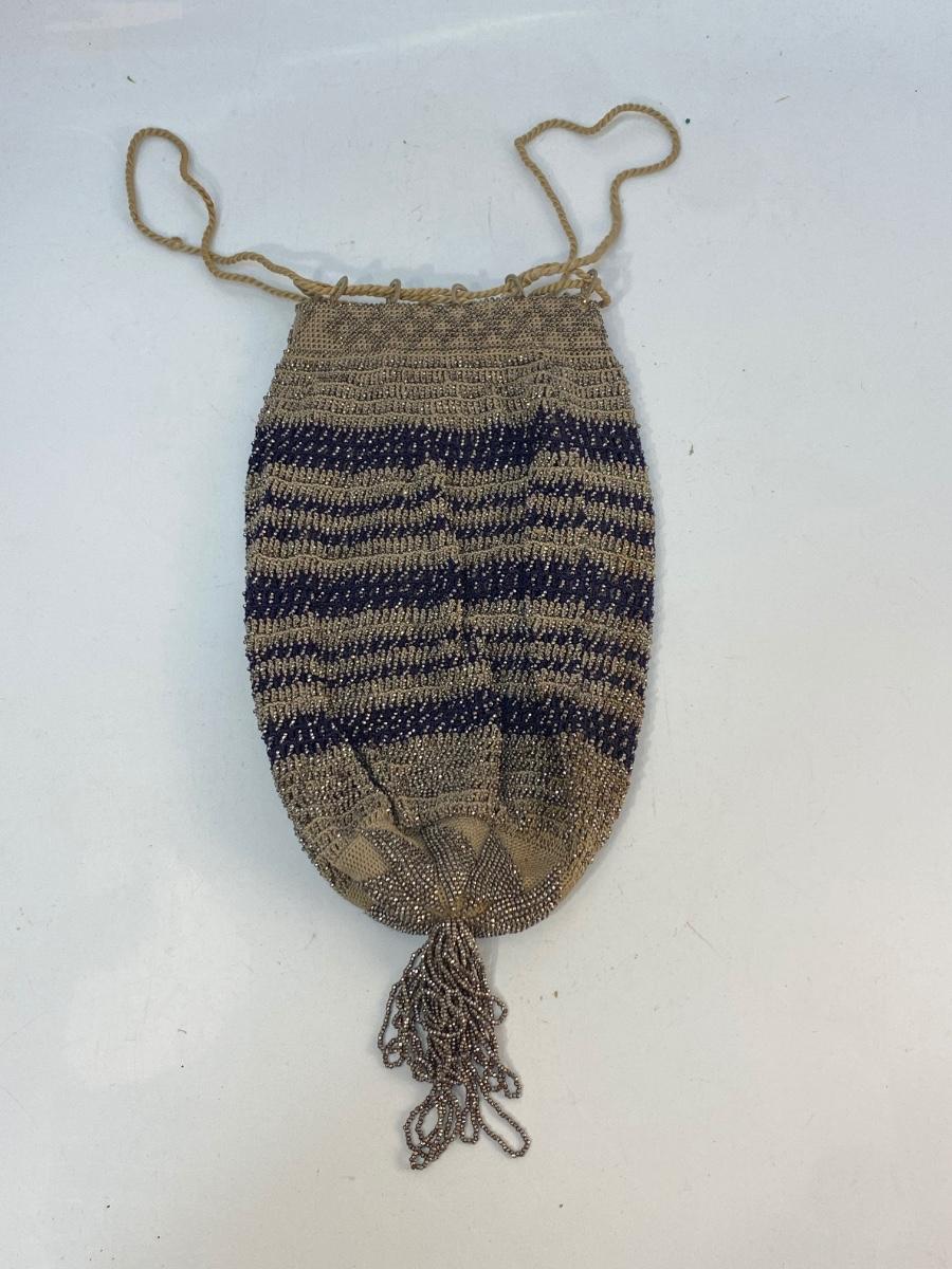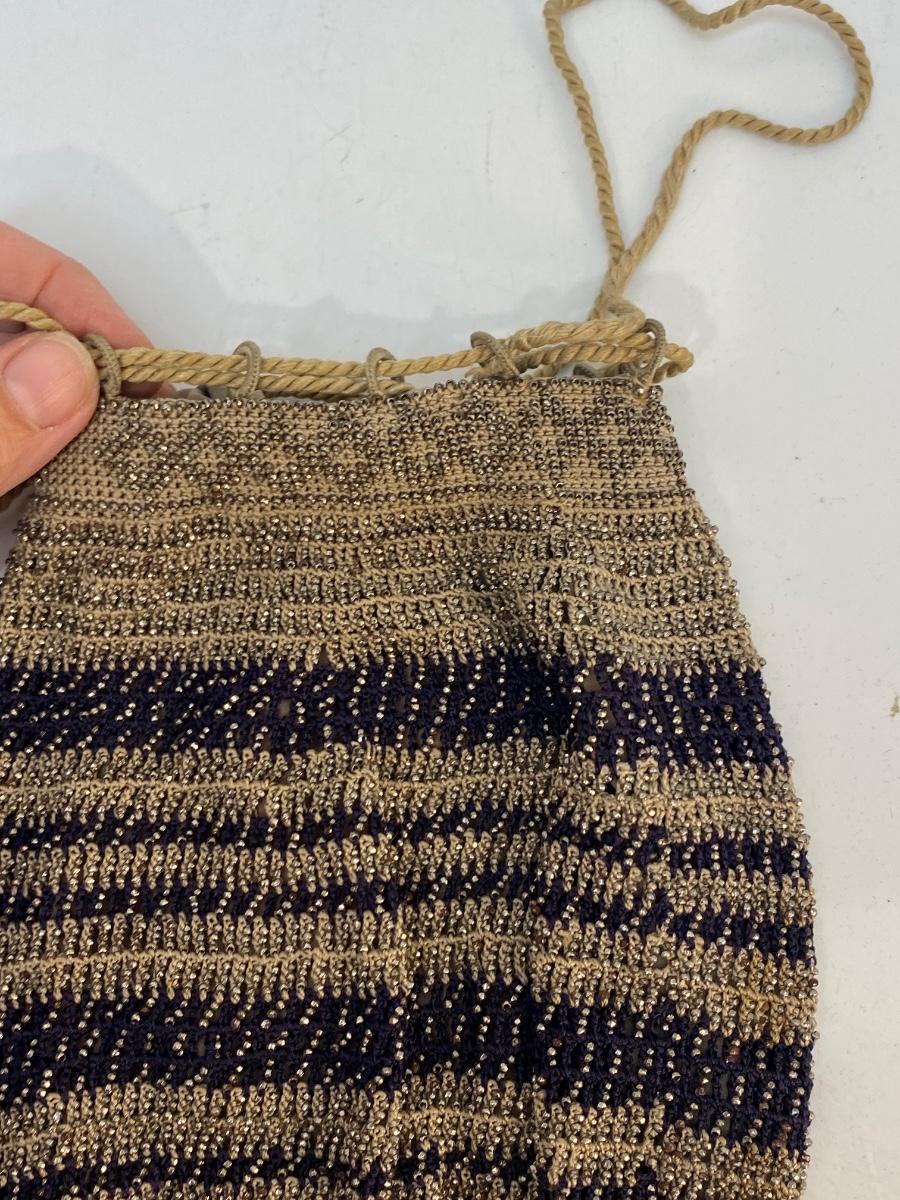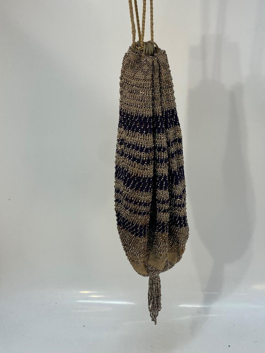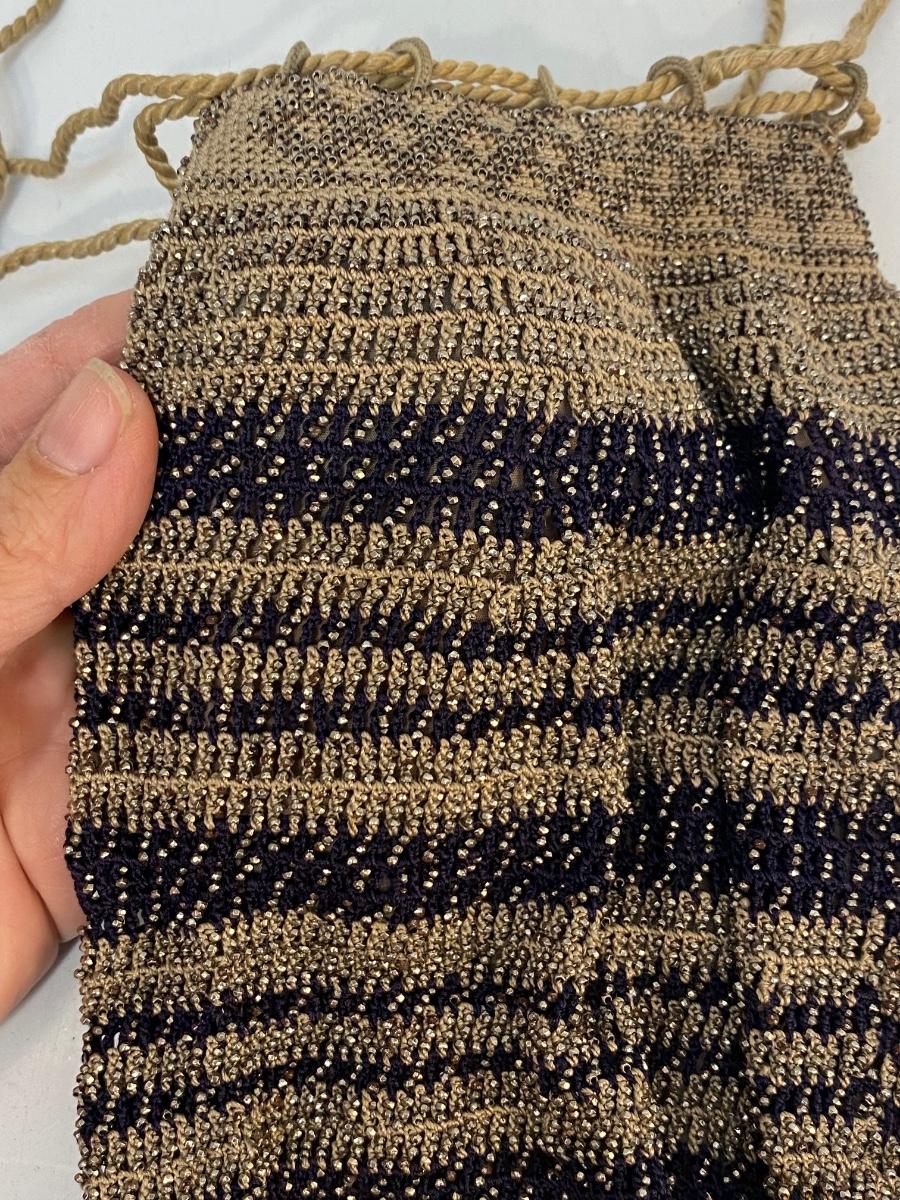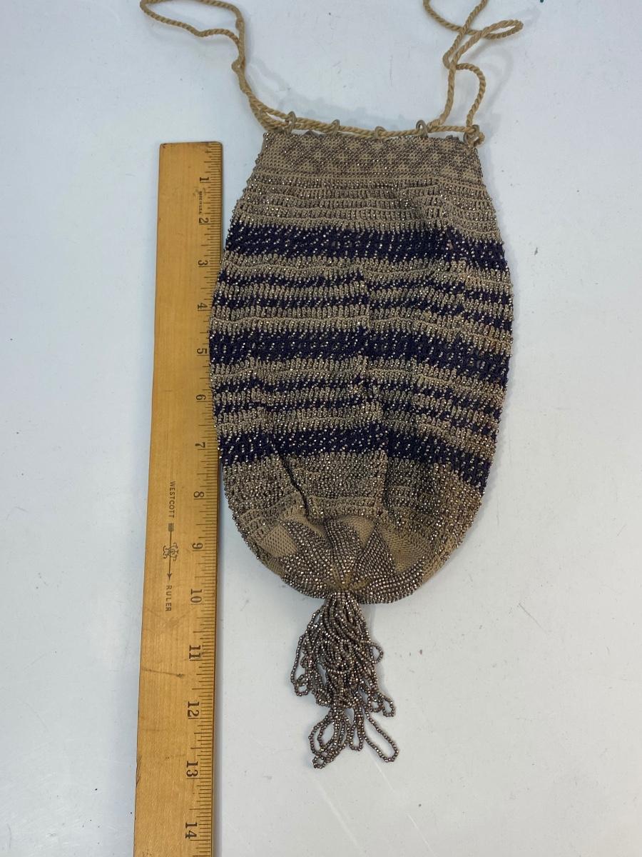 Vintage Antique Microbeaded Knitted Drawstring Bag Purse