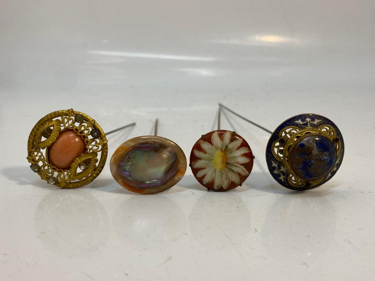 Lot of 4 Vintage Antique Hat Stick Pins