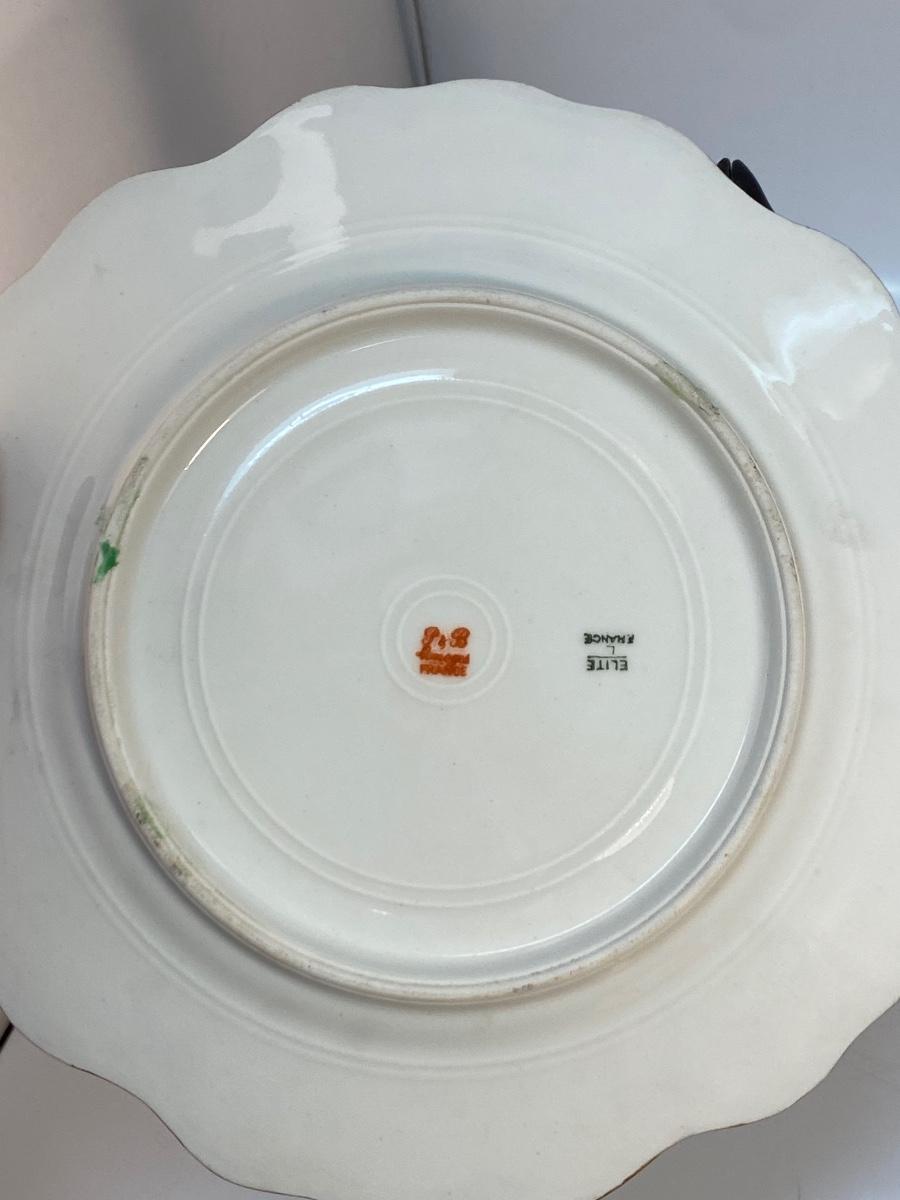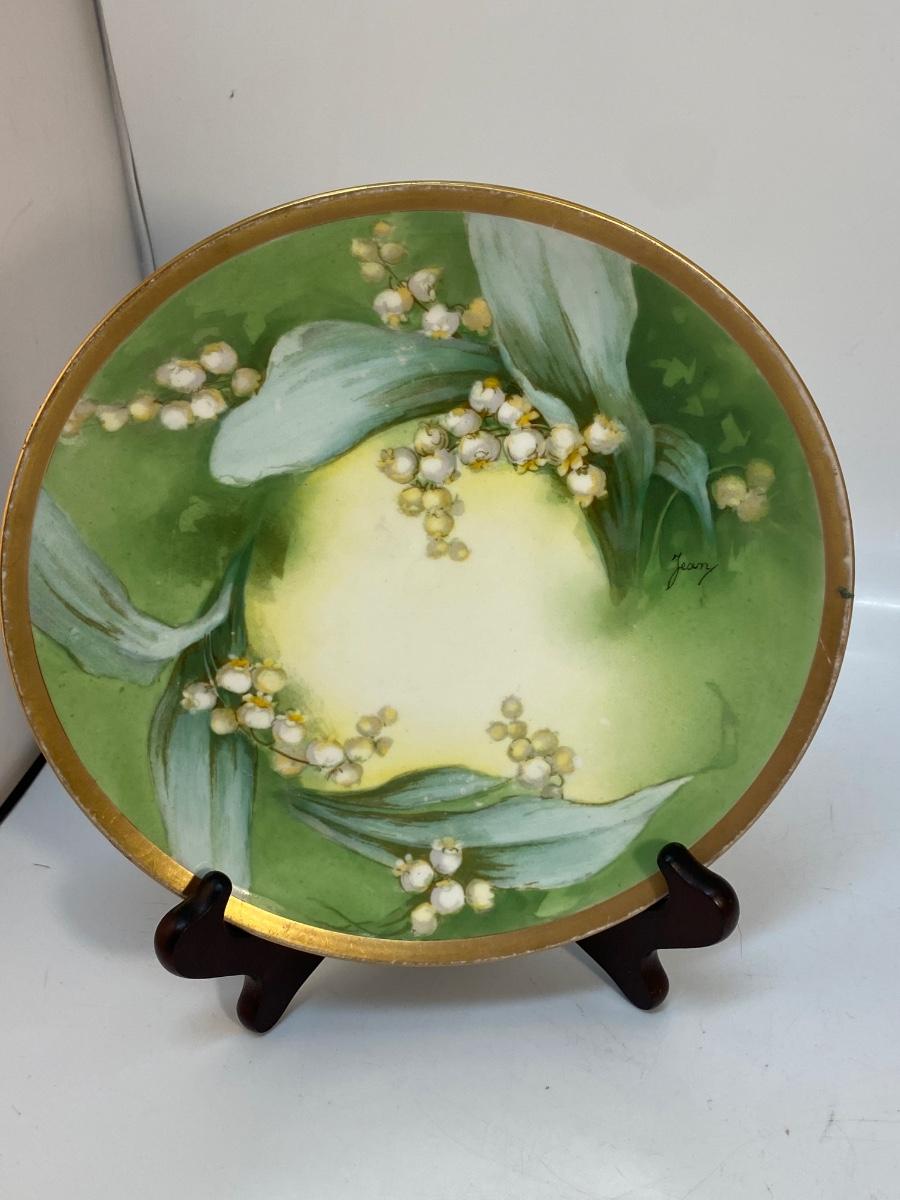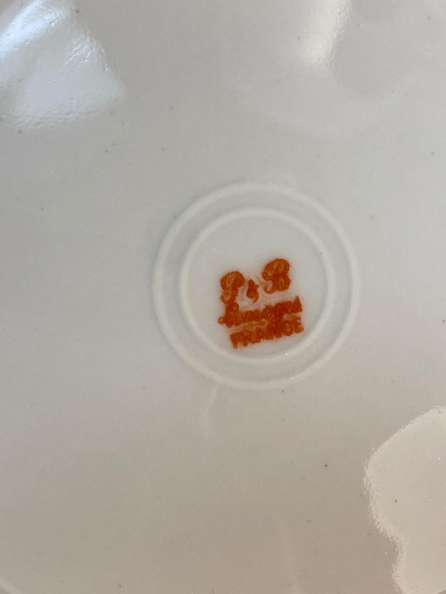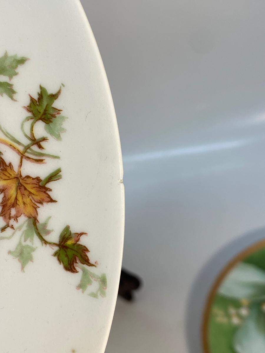 Lot of Three Vintage Limoges France Porcelain China Plates. Each one different, all stamped Limoges. The white plate with leaf like pattern does have a flea bite chip along edge, unnoticeable for the most part unless you run finger across it.