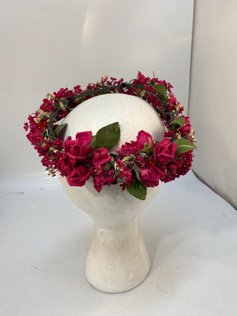 Vintage Dainty Dark Pink Fushcia Flower Vine Crown