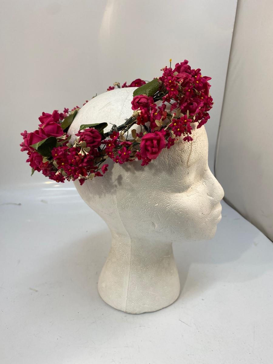 Vintage Dainty Dark Pink Fushcia Flower Vine Crown. in good condition. Great as is or add to it.