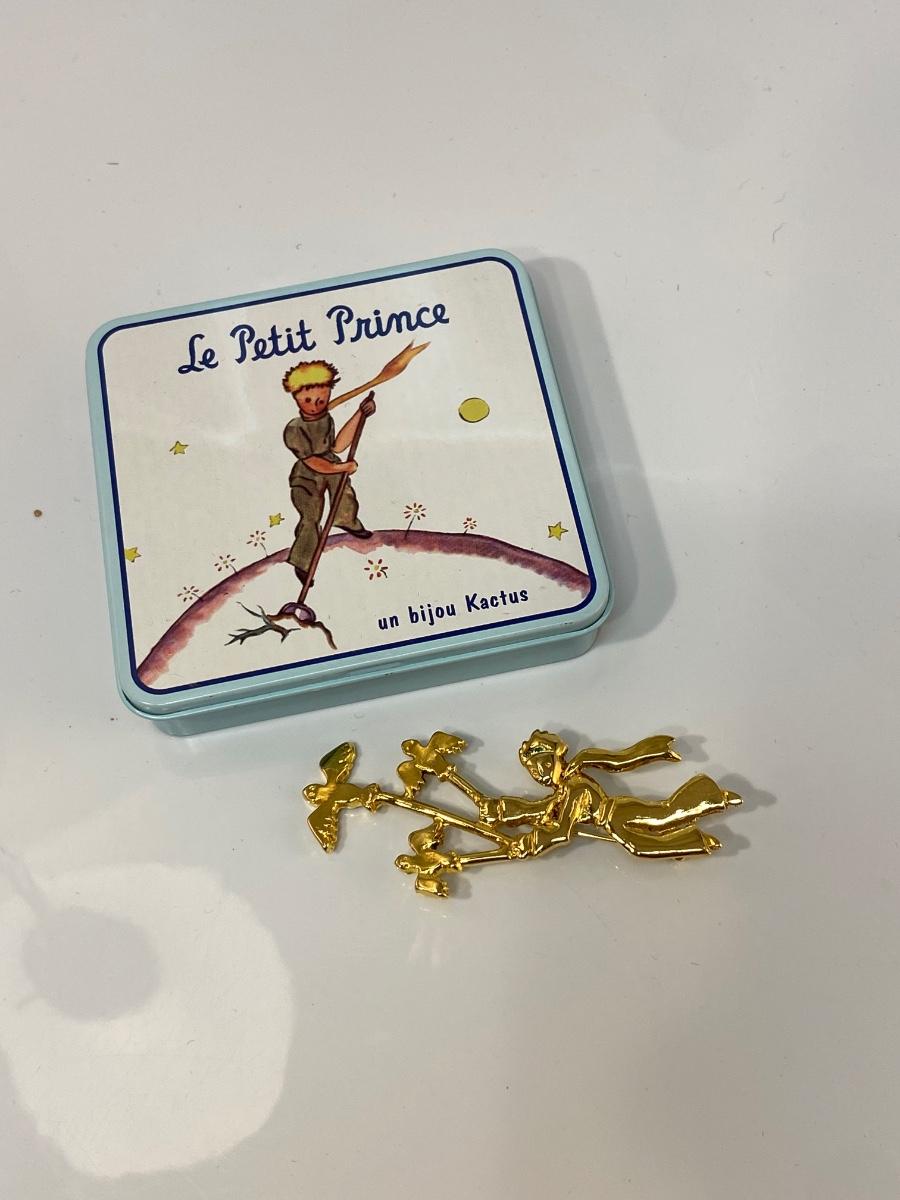 Le Petit Prince Gold Tone Pin Brooch and Collector's Tin Box. In good condition. Pin is signed on the back.