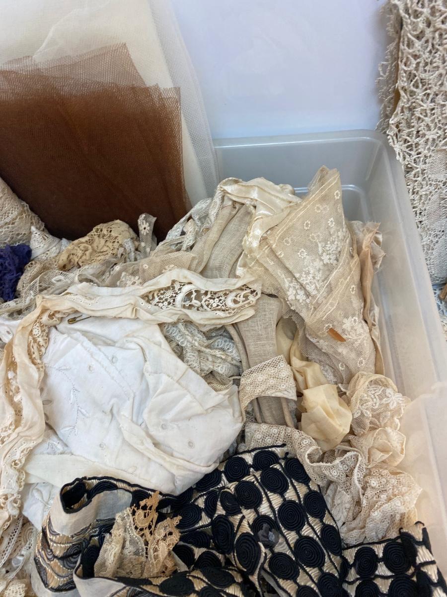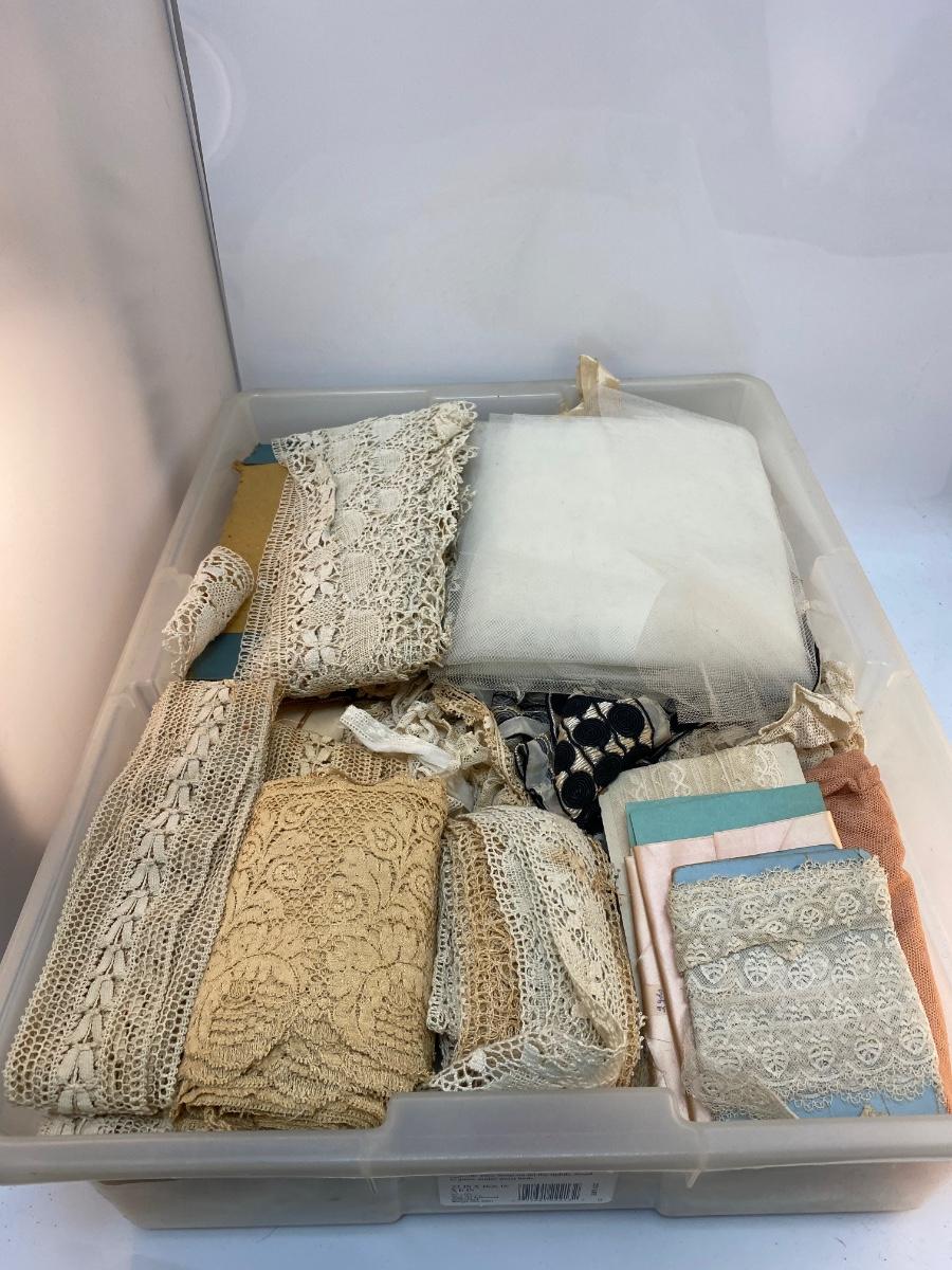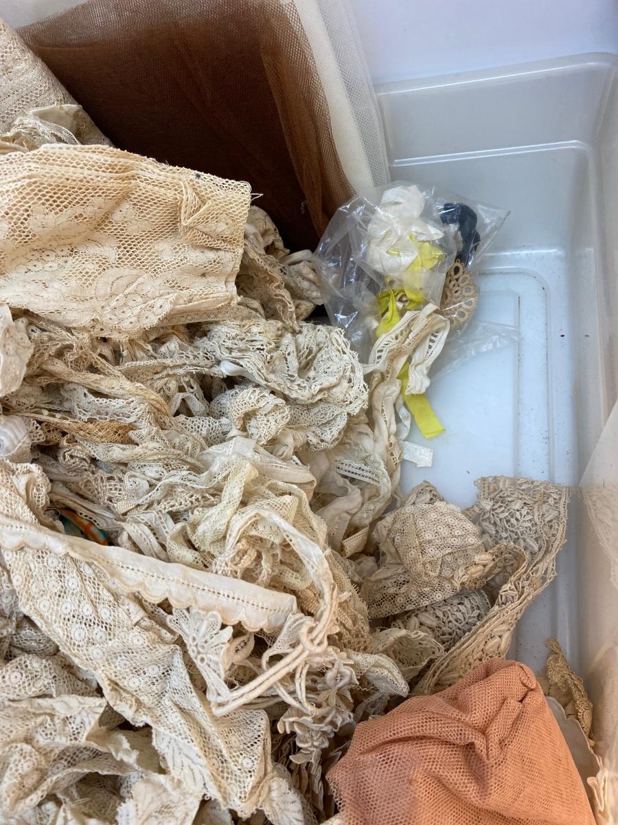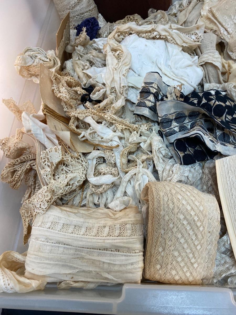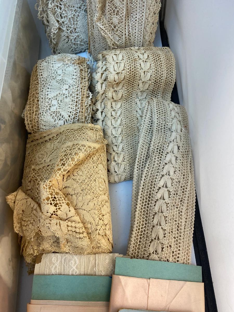 Huge Mixed Lot of Ivory Ecru Lace Mesh Trim. Some lace has been rolled some has not. Good sizes lengths. See photos. Box it is in currently is about 23x17x6 and it is packed full. Will ship without plastic box.