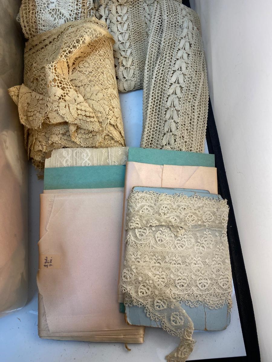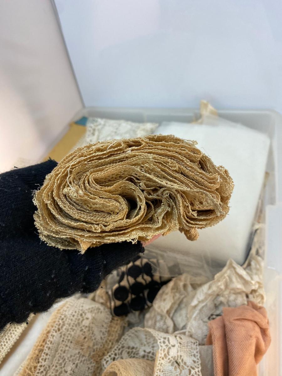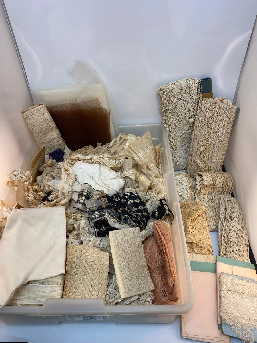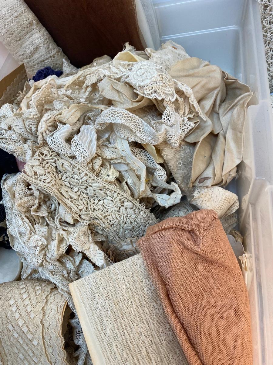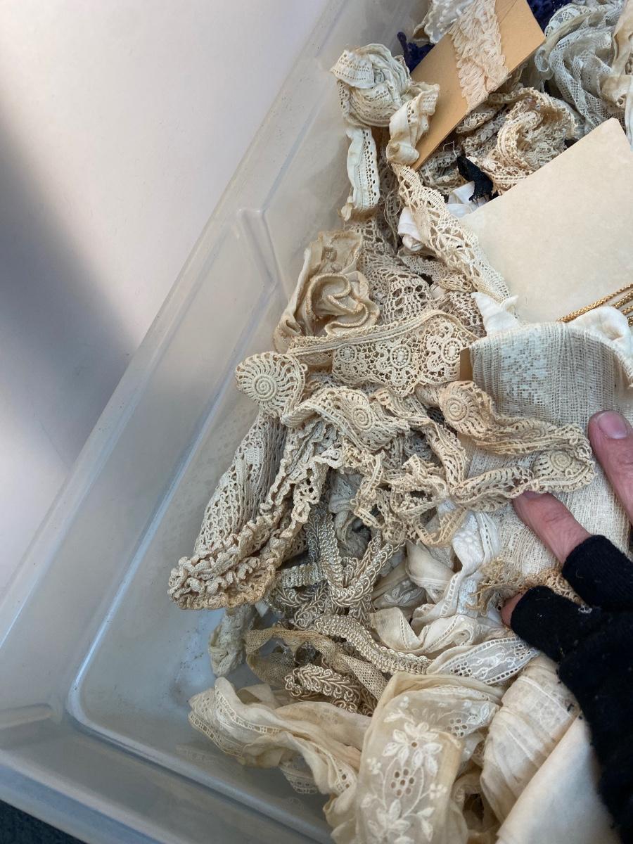 Huge Mixed Lot of Ivory Ecru Lace Mesh Trim. Some lace has been rolled some has not. Good sizes lengths. See photos. Box it is in currently is about 23x17x6 and it is packed full. Will ship without plastic box.