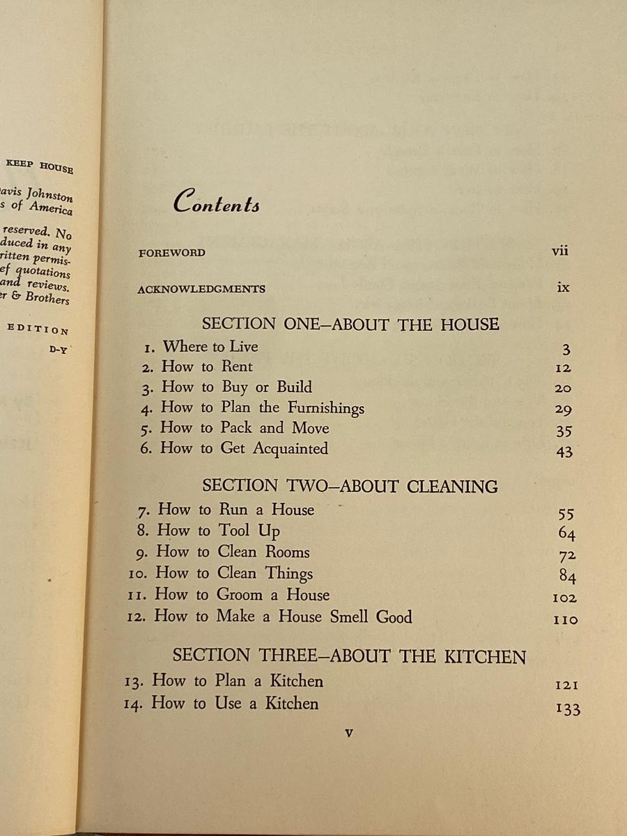 Vintage First Edition 1949 How To Keep House Book for the Homemaker Wife. In good vintage condition. Interesting look into the home maker role. See photos for chapter references.