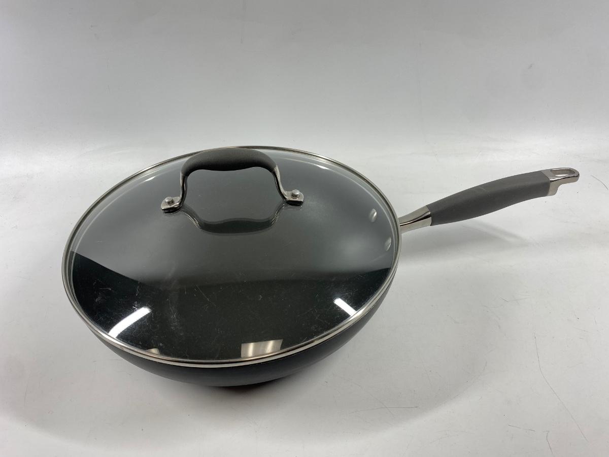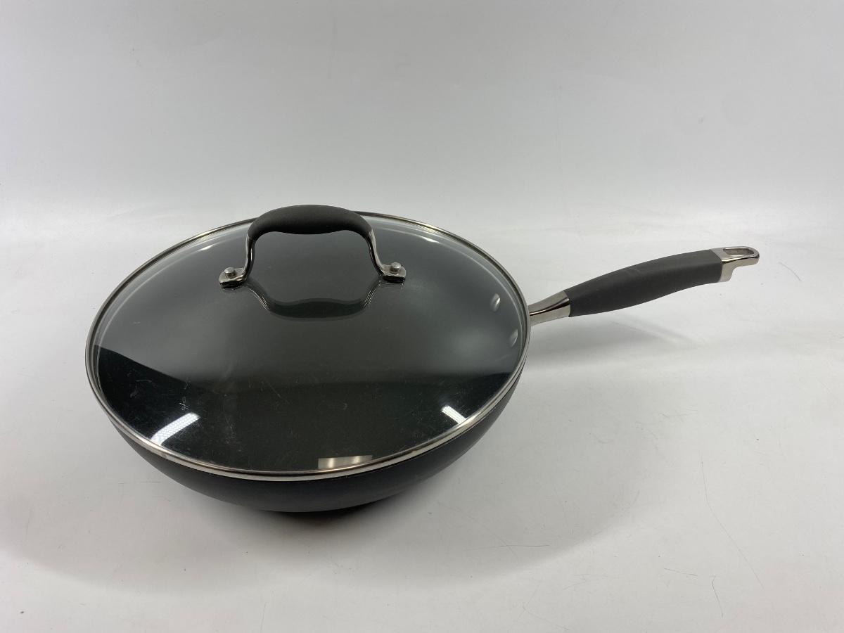 12" Anolon Advanced Nonstick Deep Frying Pan with Lid. in good used condition, light signs of use.