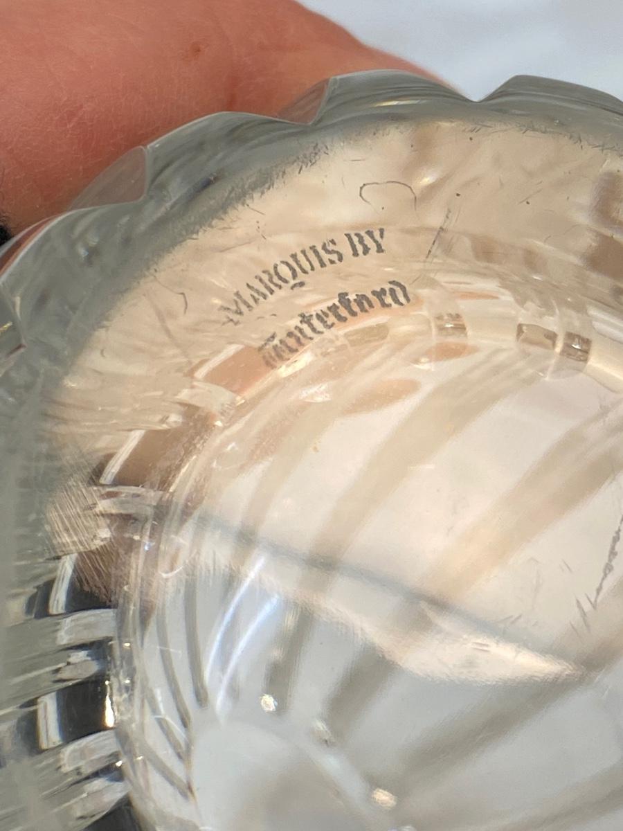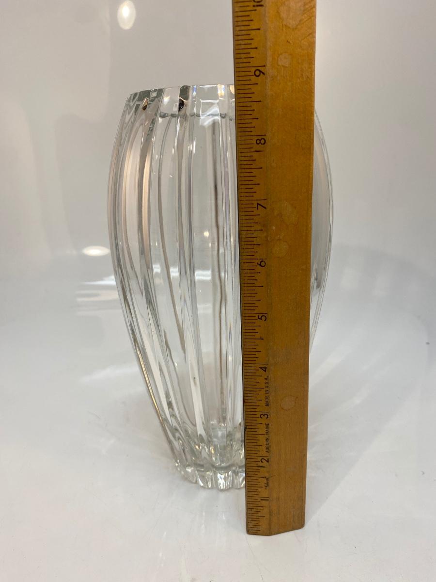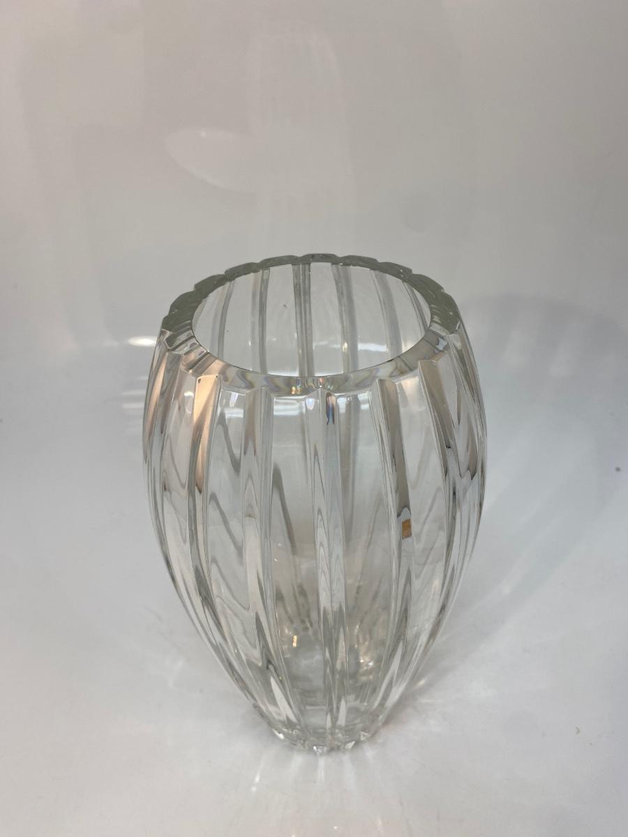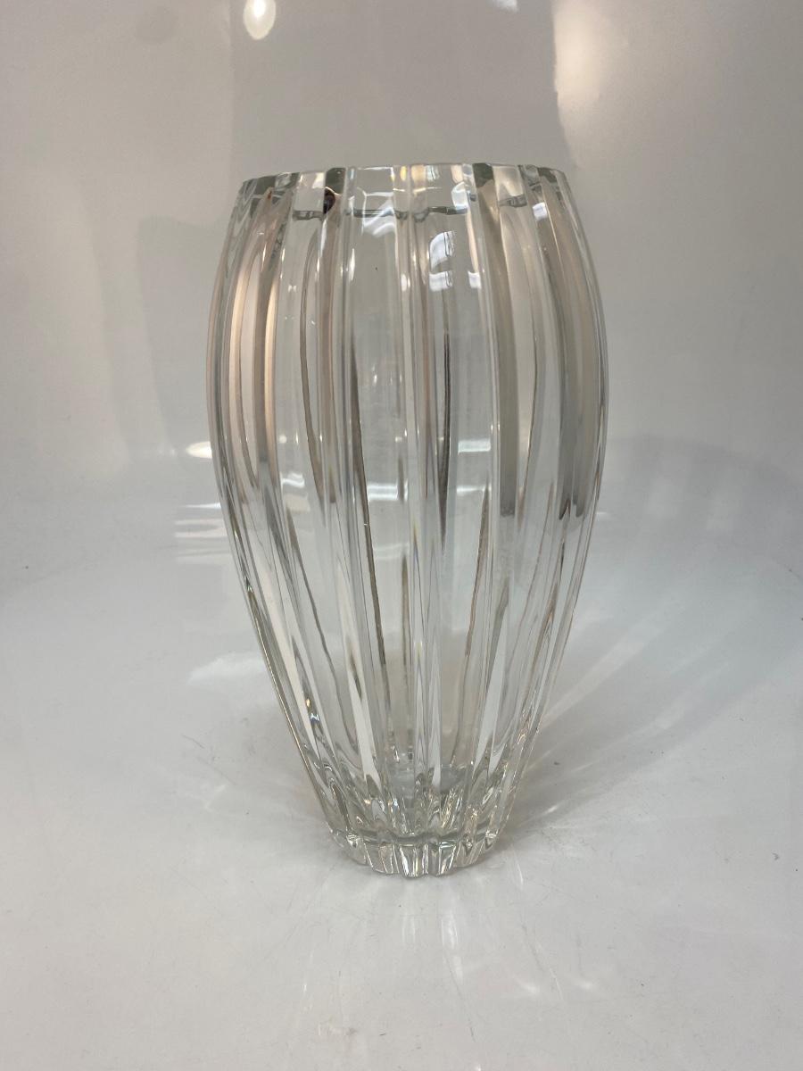Large Marquis by Waterford Crystal Ribbed Flower Vase. Marked on the bottom. Good condition. About 9" size.